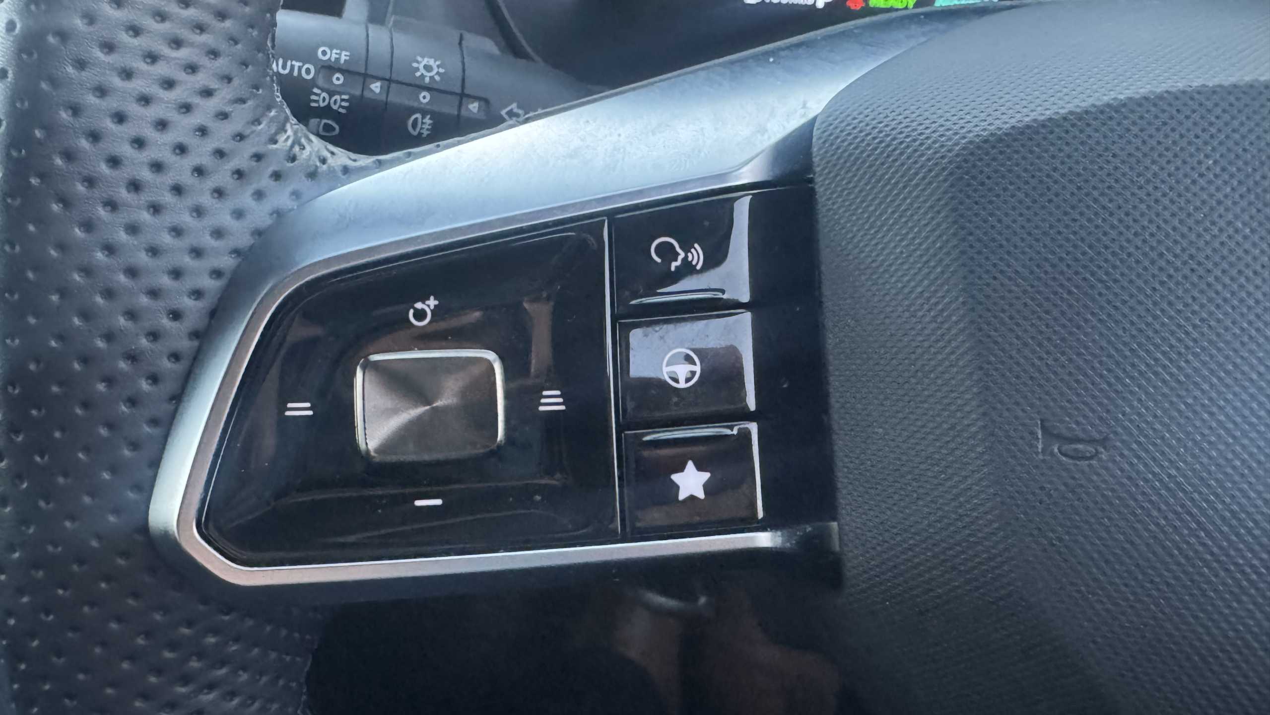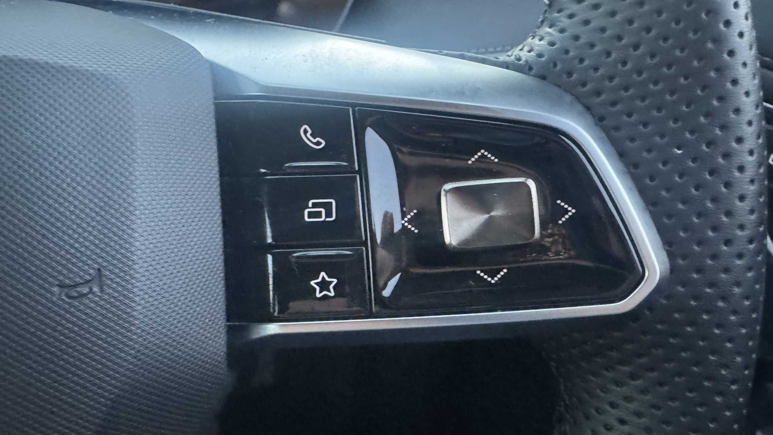 "3 spoke leather multi function steering wheel with silver chrome trim",