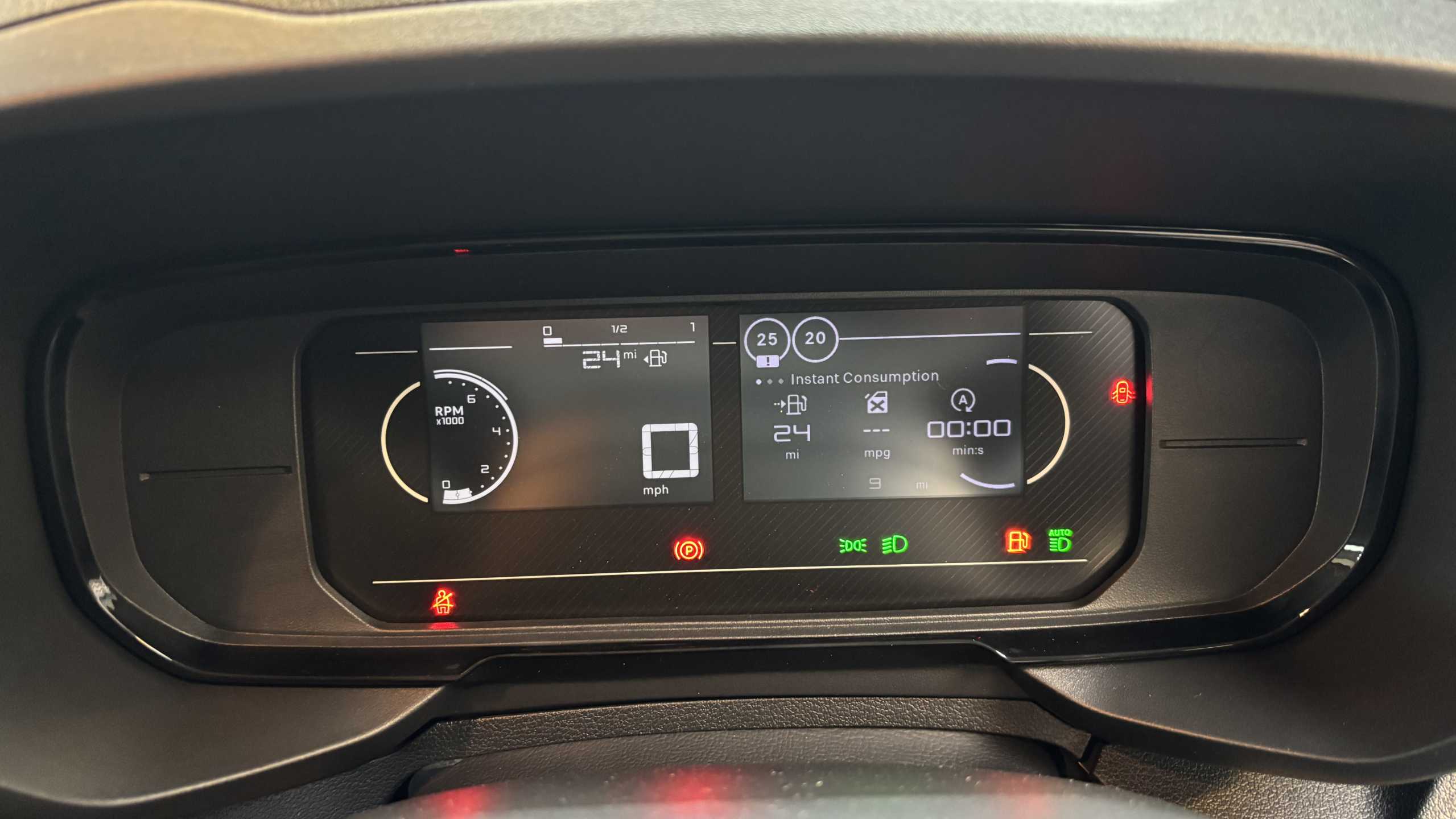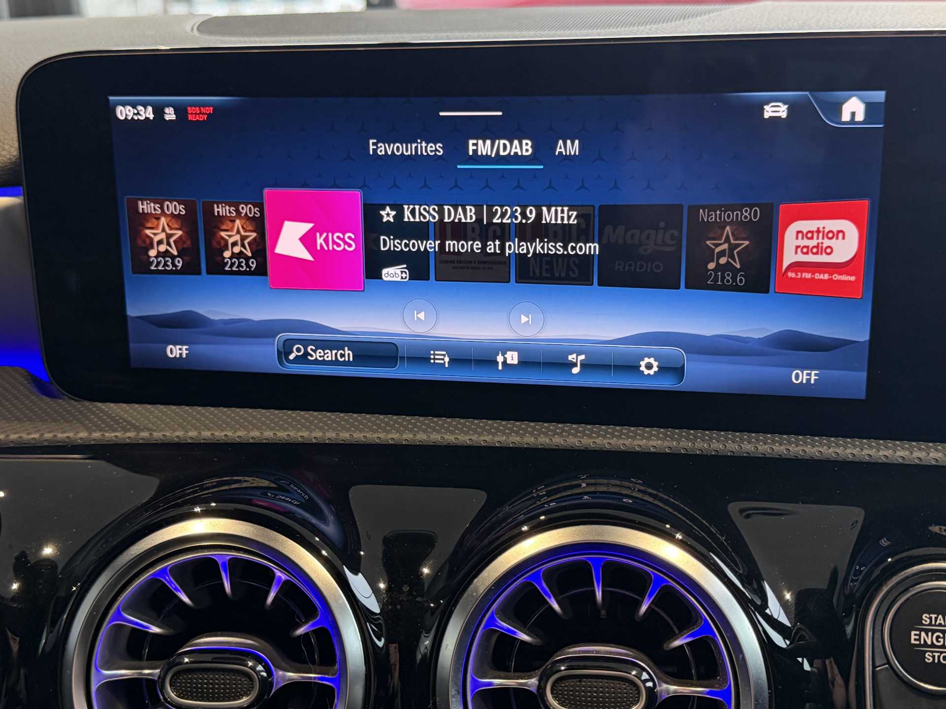 "Central facia display with audio information, clock and outside air temperature",