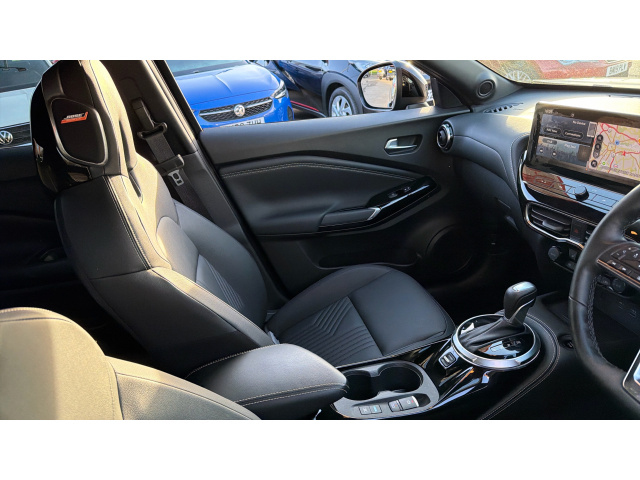 "features": "12.3\" full colour TFT screen combimeter, Drive modes select (Eco, normal and sport), e-Pedal step, Emergency and breakdown call, EV mode switch, Front parking sensor, Intelligent driver alert system, Intelligent lane intervention, Lane departure warning system, Nissan connect 12.3\" touch screen entertainment system, Nissan connect nav with TomTom traffic, Nissan connect services, Outside temperature sensor, Power Steering, Rear parking sensor, Stop/start button, Traffic sign recognition, Trip computer, Voice recognition, WiFi connectivity, Wireless Apple CarPlay and Google Android auto, Wireless Smartphone charger, 10 Bose speakers 6 speakers and 2 headrest speakers for driver/passenger seats, 2 X Rear console USB port, Bluetooth system, USB, Aux-in and 12V socket, Bose personal sound stage control, DAB Digital radio, Auto dimming frameless rear view mirror, Automatic hazard signal with emergency stop signal, Body colour door handles, Electrically adjustable door mirrors with integrated indicators, Follow me home headlights, Front and rear electric window with one touch driver window, Heated and auto folding door mirrors, High beam assist, LED 3rd brake light, LED daytime running lights, LED front fog lights, LED headlamps, LED rear fog lamp, LED rear lamps, One touch passenger window, Rain sensor windscreen wipers, Rear privacy glass, Rear side wing doors, Rear wiper, Roof spoiler, Shark fin roof antenna in solid Black, Three blink turn signal, 3 height adjustable rear headrests, 3 seat bench in 2nd row, 60/40 split folding rear seat, Automatic climate control, Card holder on driver sunvisor, Door ambient lighting, Driver seat back pocket, Driver side rear coat hanger, Driver/passenger sunvisors and vanity mirrors, Front and rear cabin lights, Front armrest, Front door pockets with bottle holders, Front head restraints, Front/rear passenger grab handles, Gear console ambient circle lighting, Height adjustable driver's seat, Internal chrome door handles, Leather gearshift knob, Luggage board, Luggage space lighting, Monoform sporty seats, Multifunction steering wheel, Passenger seat back pocket, Rear door bottle holders, Single front passenger seat, Smooth synthetic leather steering wheel, Synthetic leather kneepad, Synthetic leather upholstery, Telescopic steering wheel adjustment, Two cupholders in front centre console, Two rear isofix child seat anchorage points with top tether, Welcome light and console tray ambient lighting, Heat pack with height adjustable passenger seats - Juke, ProPilot pack - Juke Auto, ABS with EBD and brake assist, Active ride control, Active Trace Control, Driver and passenger airbags, Driver and passenger side airbags, Electric handbrake with auto hold function, Electronic Stability Programme (ESP), Front and rear curtain airbags, Height adjustable seatbelts, Hill start assist, Intelligent emergency braking with pedestrian and cyclist recognition, Rear door child safety locks, Seatbelt reminder for driver/front passenger and rear seats, Three 3 point rear seatbelts, Traction control, Tyre pressure monitoring system, VDC Dynamic Vehicle Control, Alarm, Immobiliser, Intelligent key and start push button with walk away lock and approach unlock functions, Remote central locking, 19\" Alloy wheels, Tyre puncture repair kit, ",