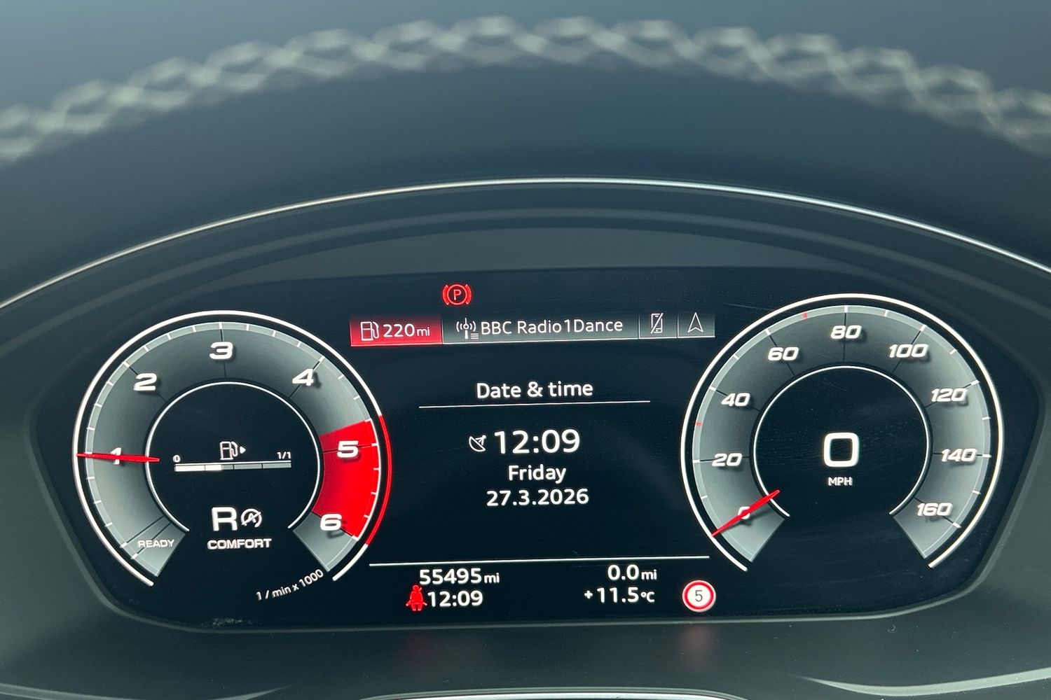 "Speedo, rev counter, electronic odometer, trip, service interval display, exterior temperature and fuel gauge",