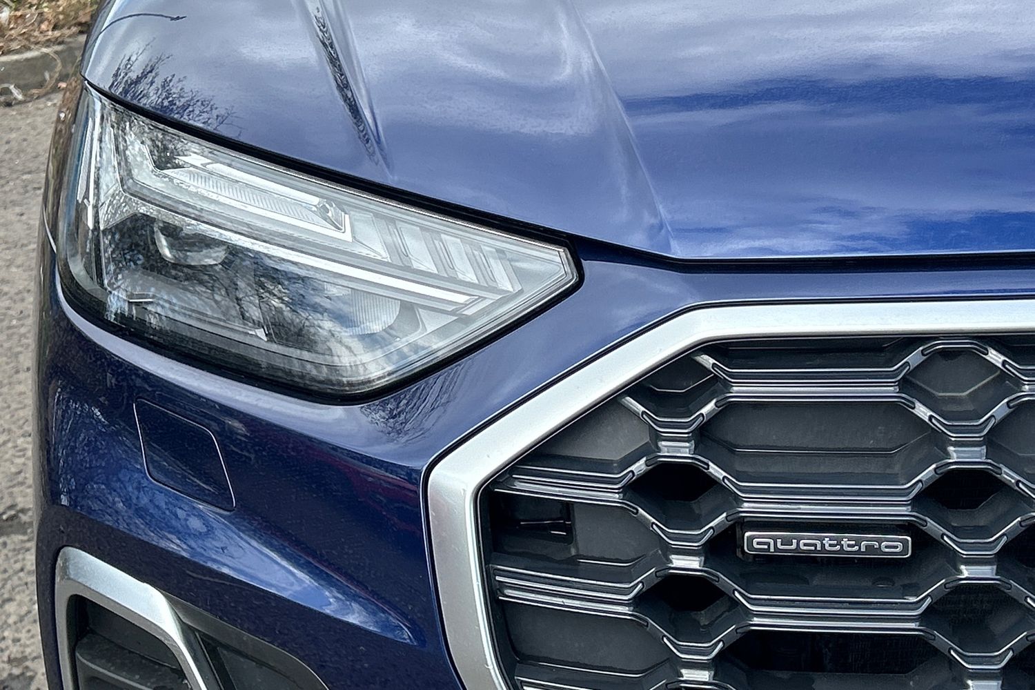 "Black front air intake and radiator grille with chrome insert",