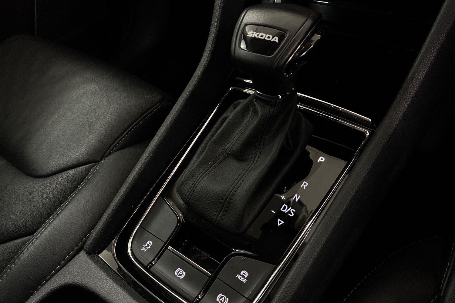 "Leather gear knob with aluminium trim",