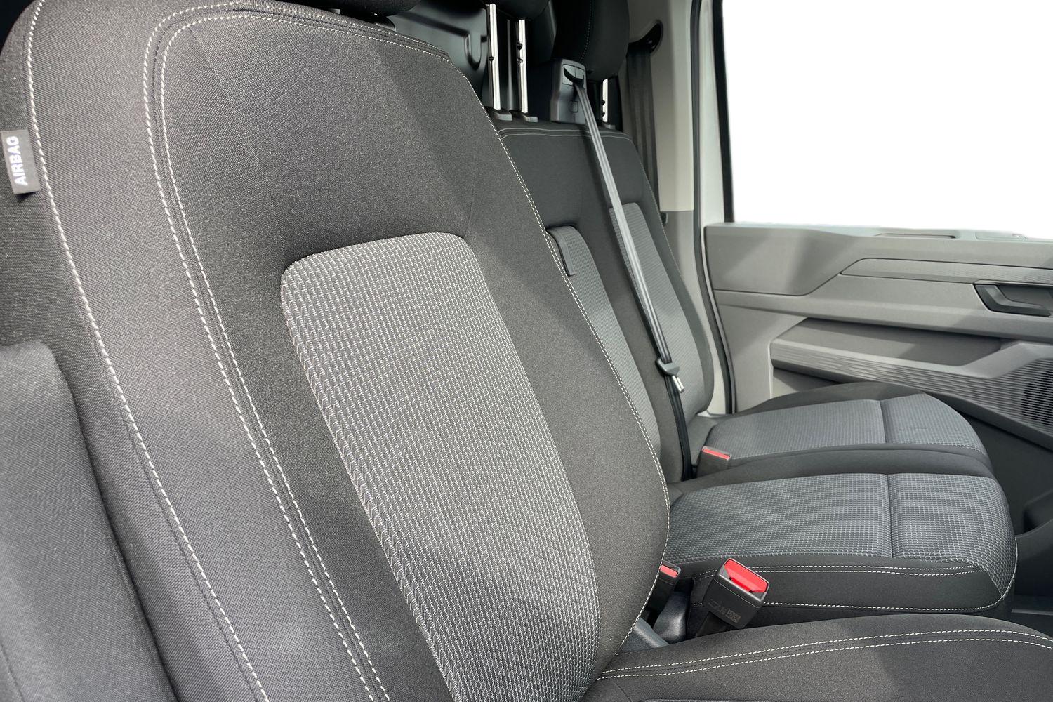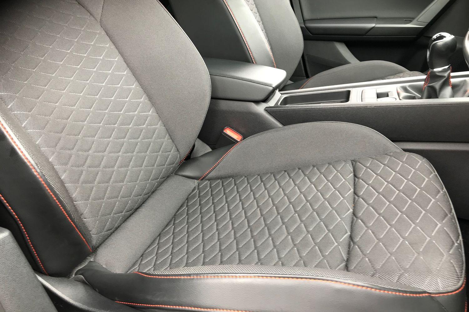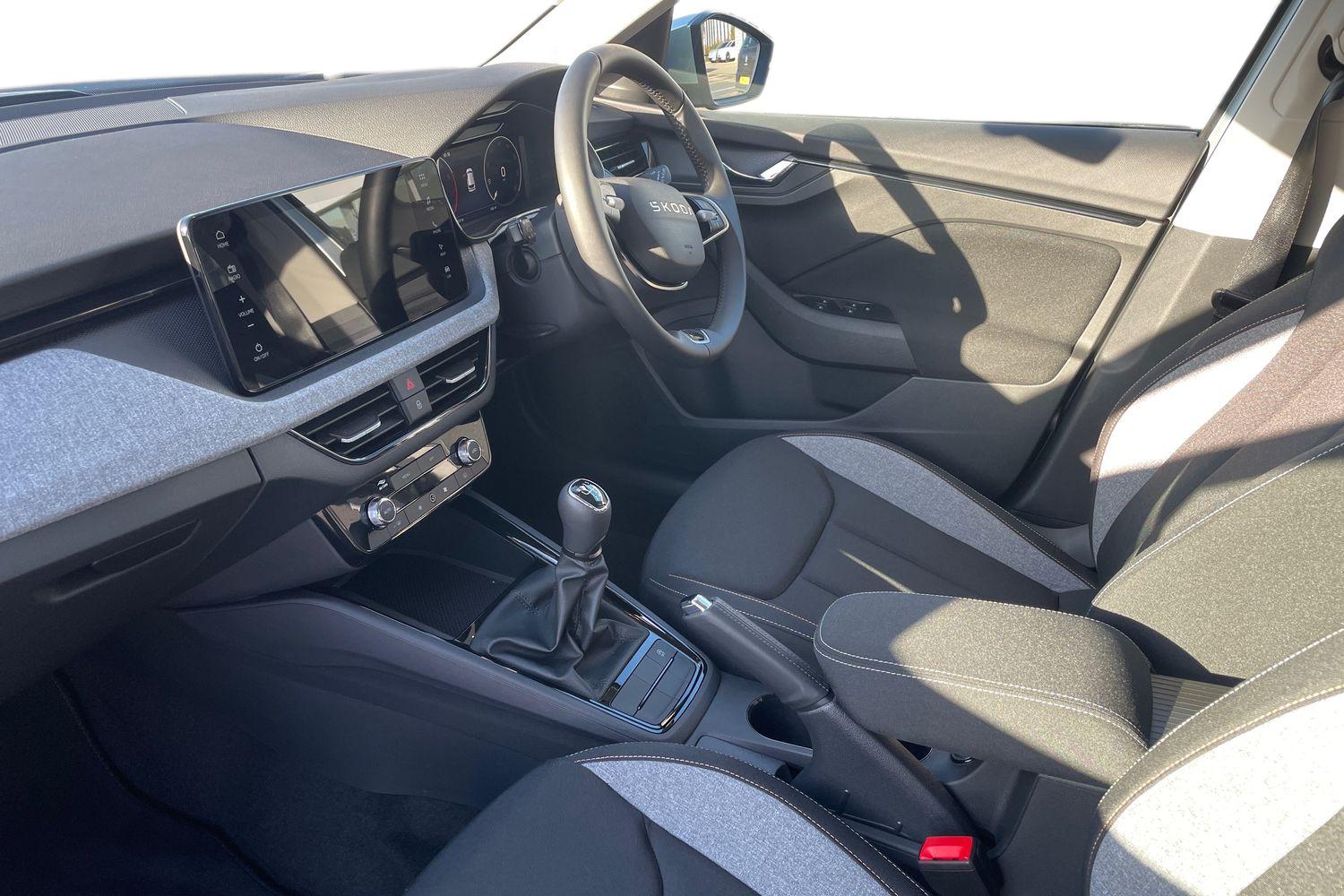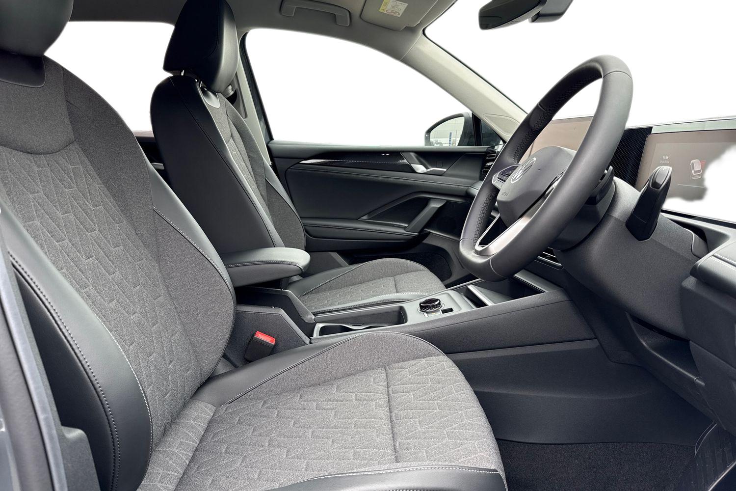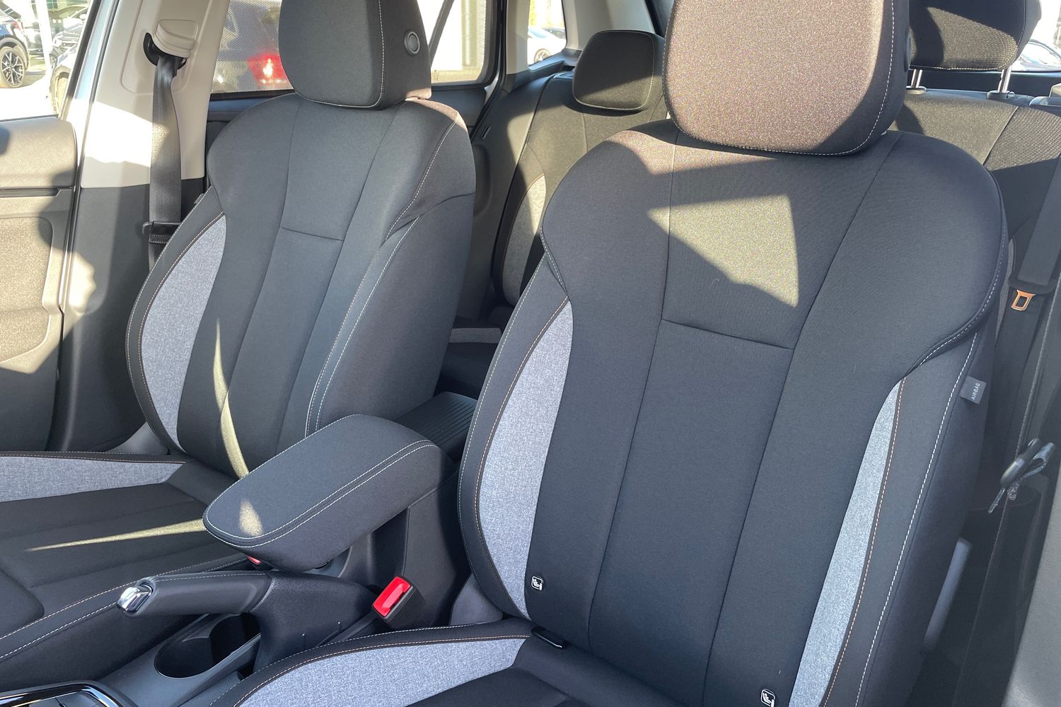 "Front and rear black floor mats with contrast stitching in rock grey",