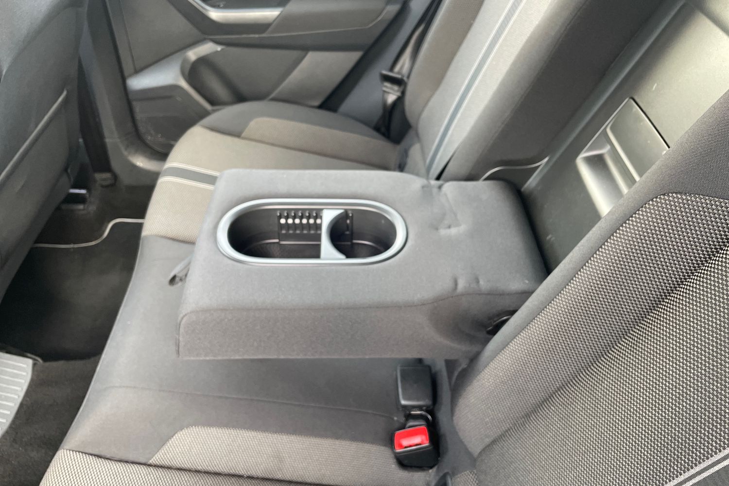 "Adjustable rear seat bench/backrest with centre armrest and cupholder",