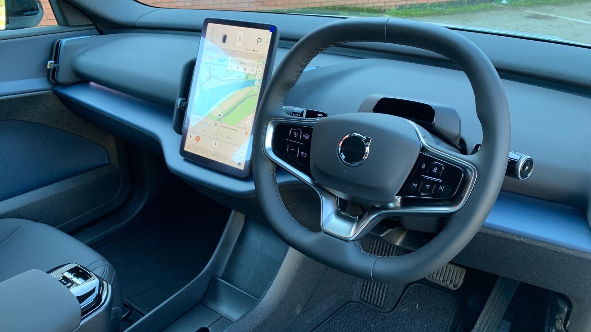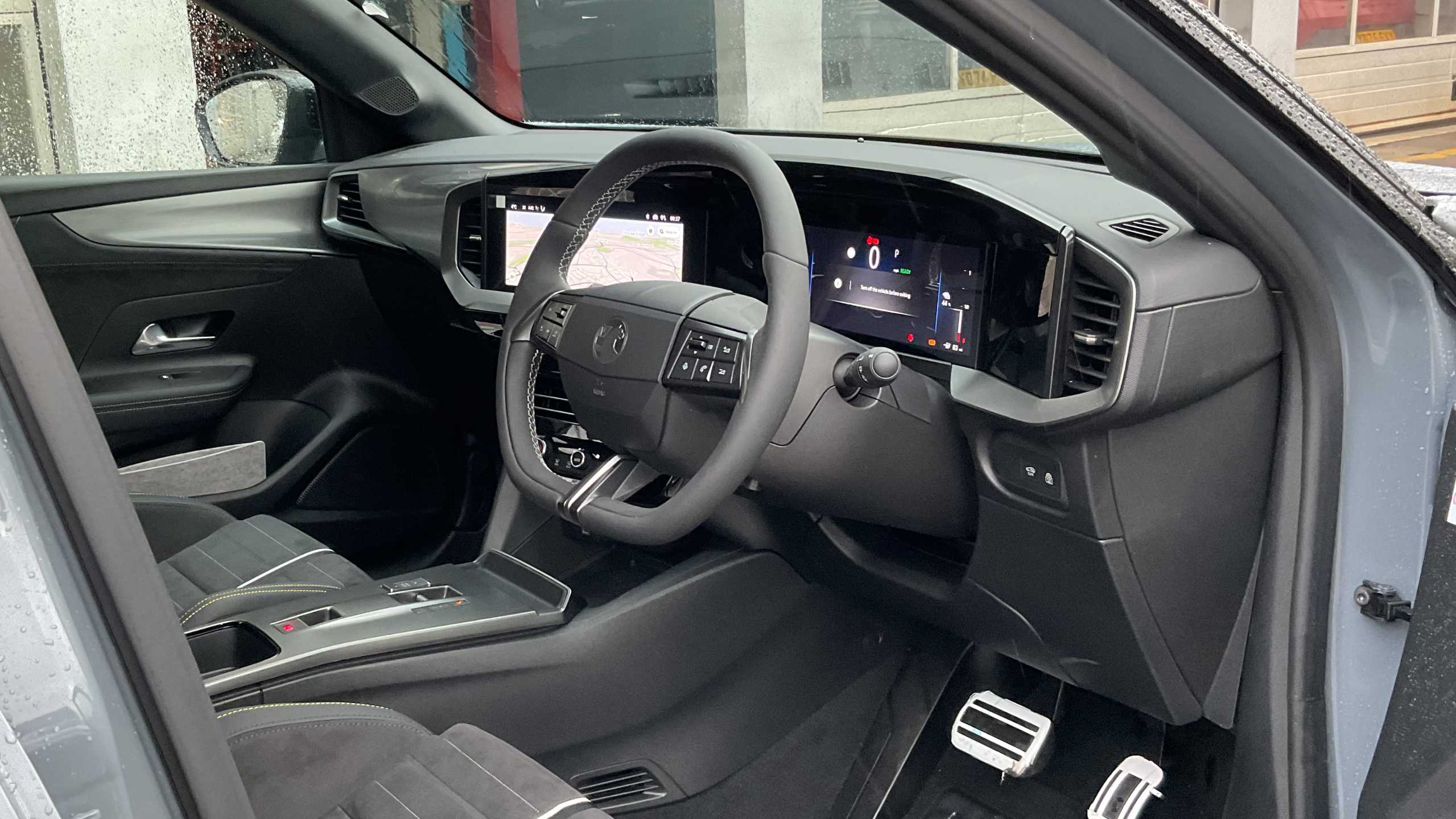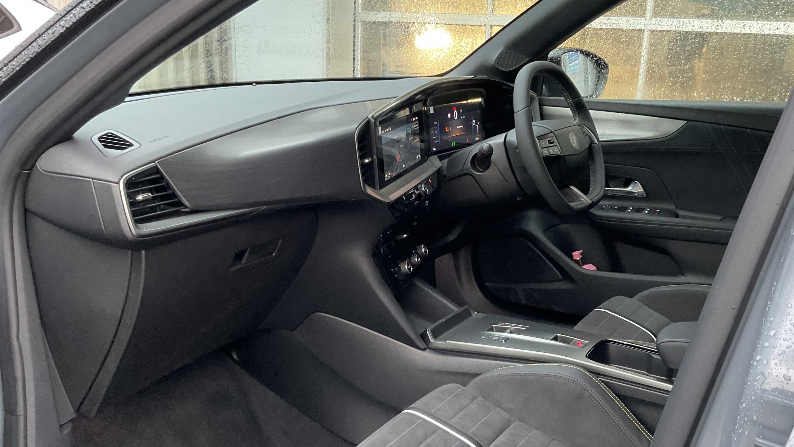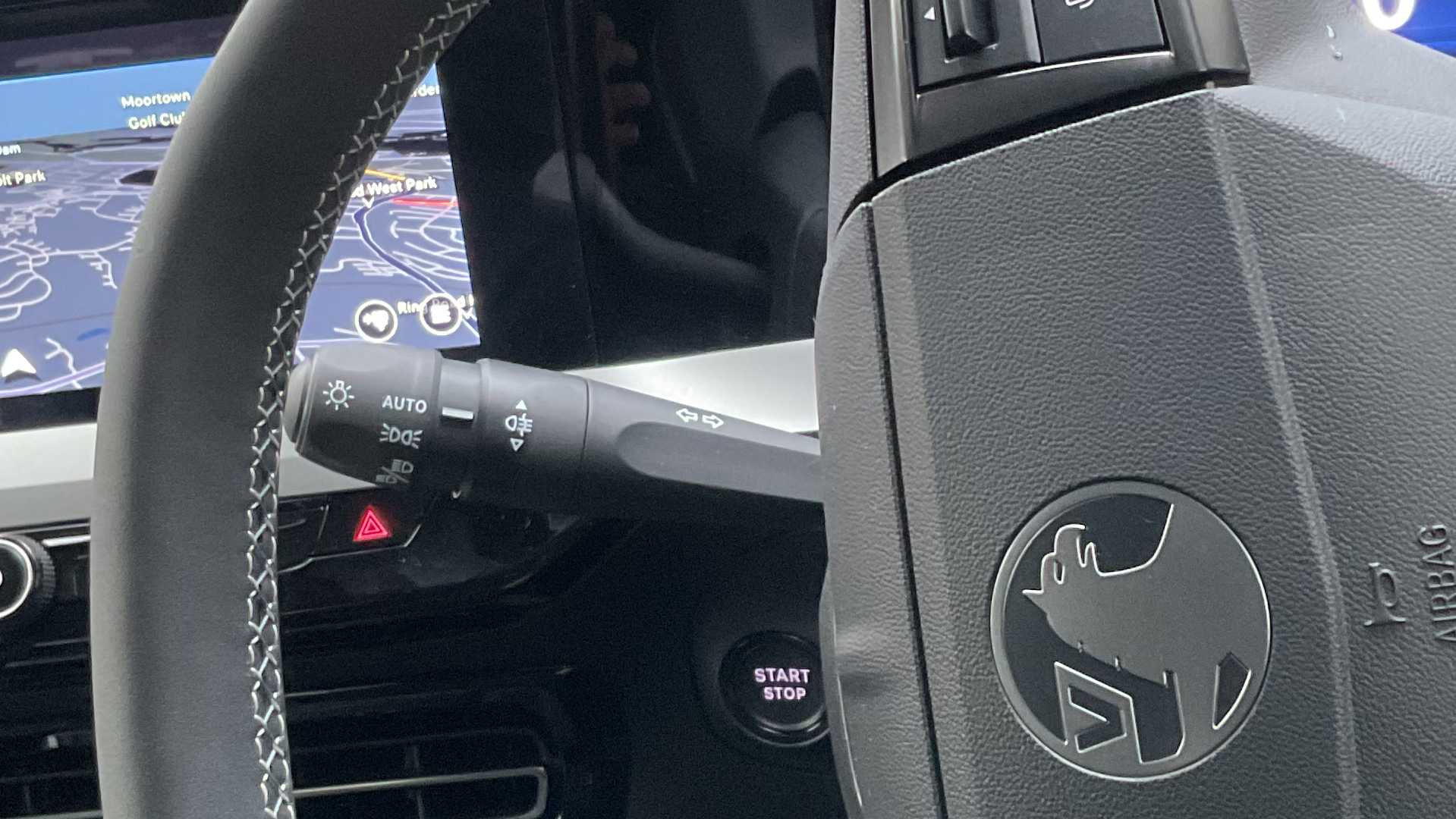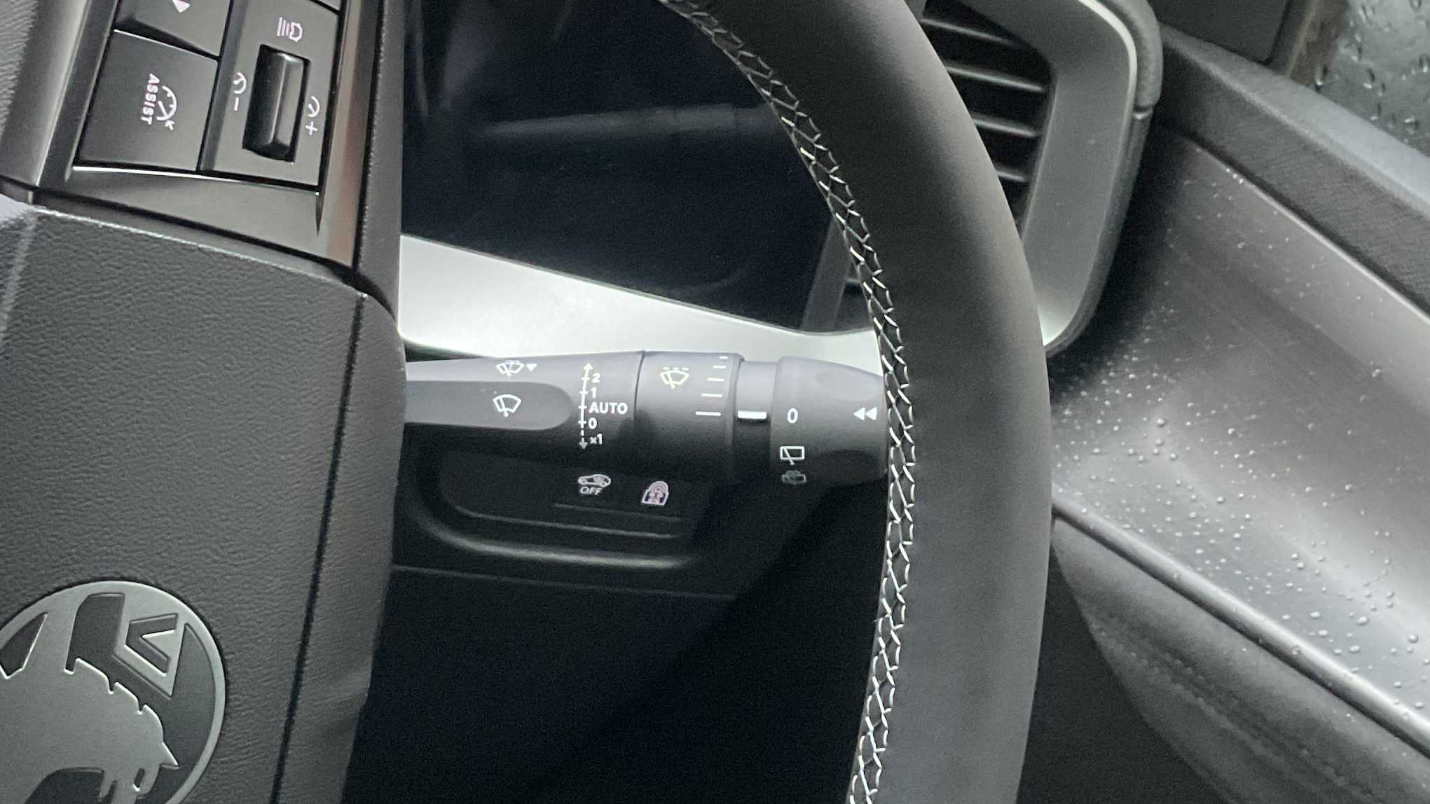 "Stitched leather-style steering wheel",