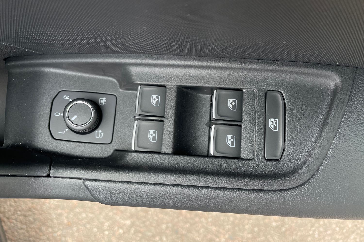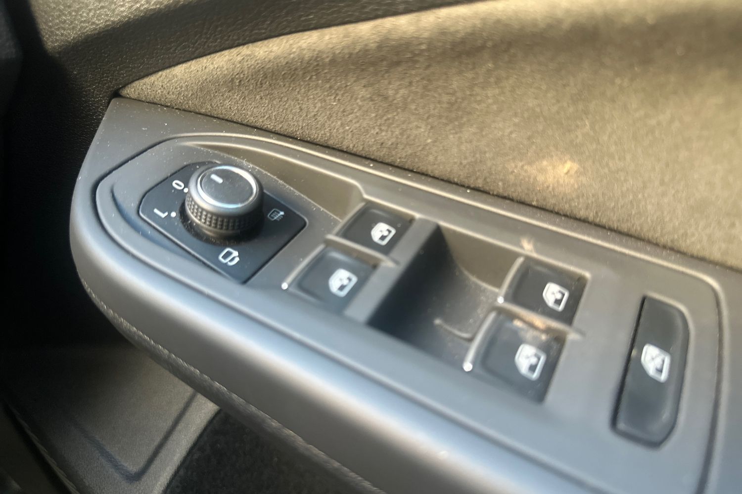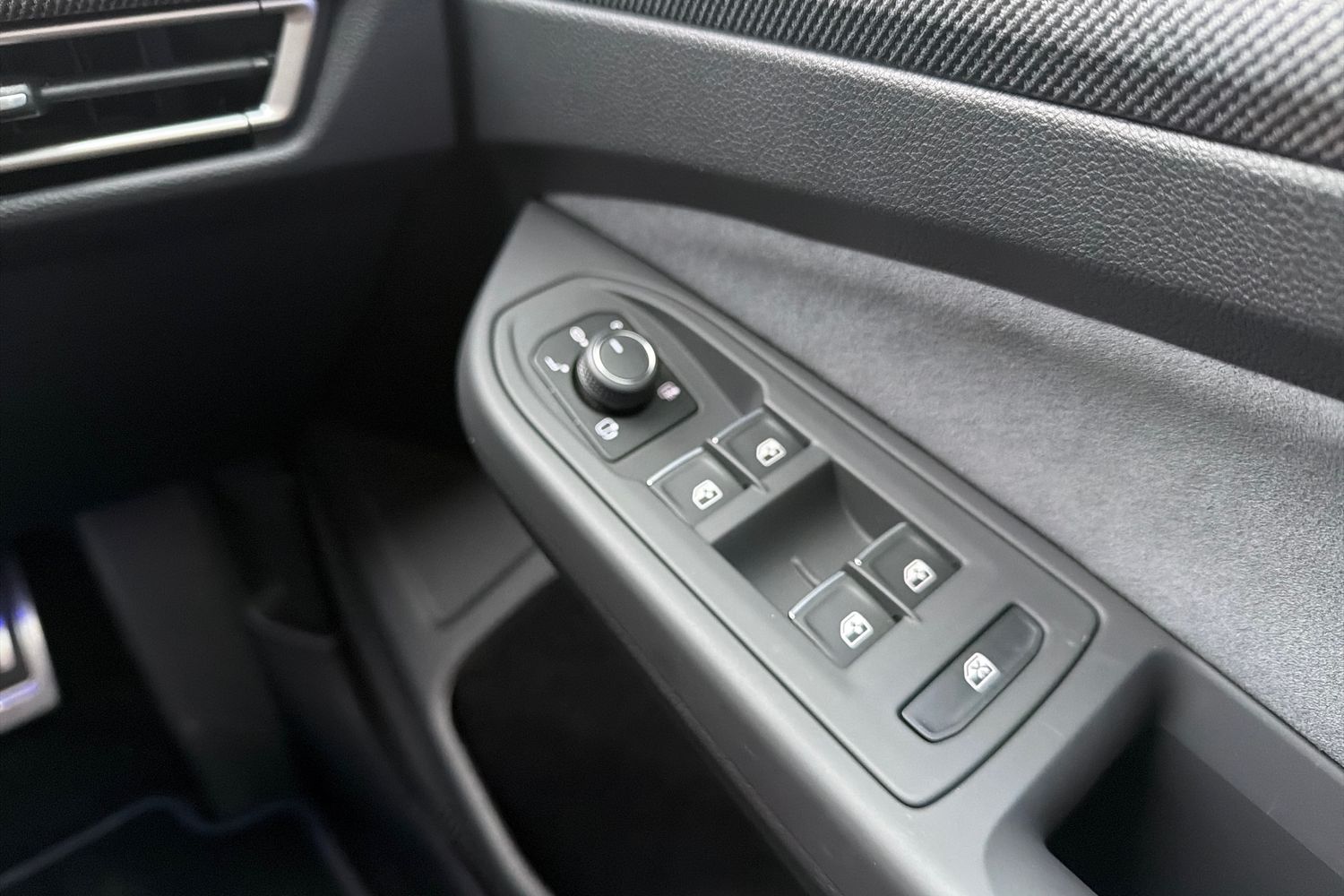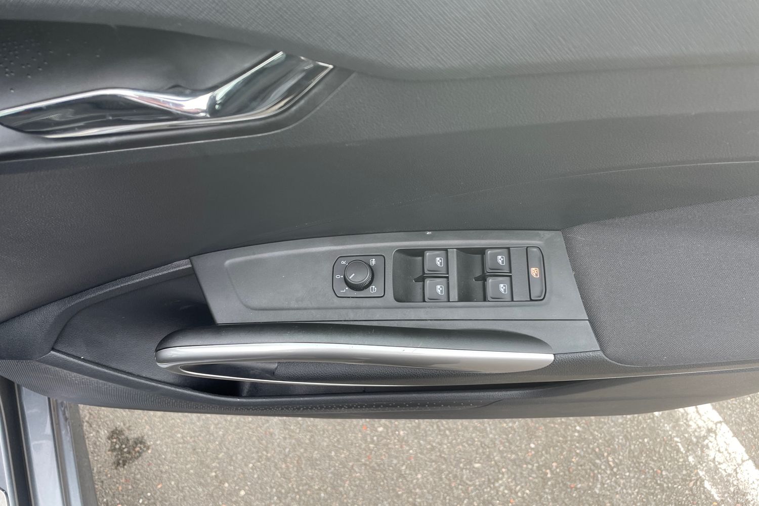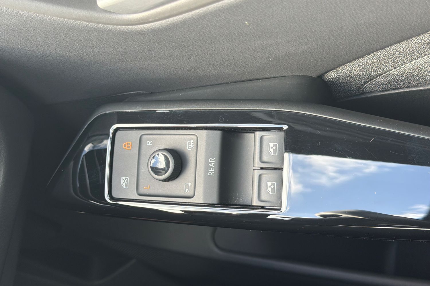 "Chrome applications on rotary light, mirror adjustment, window regulator switches, outlet with frame in black",