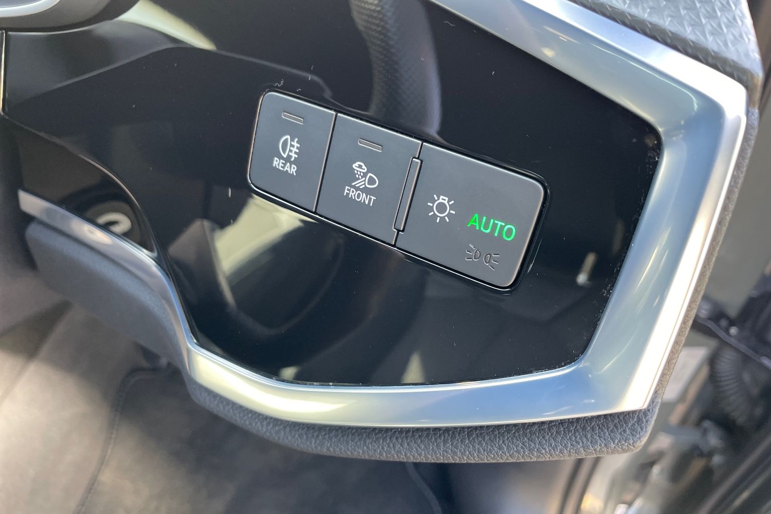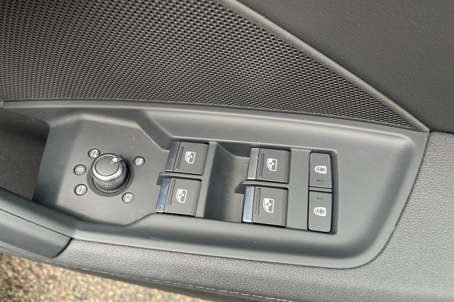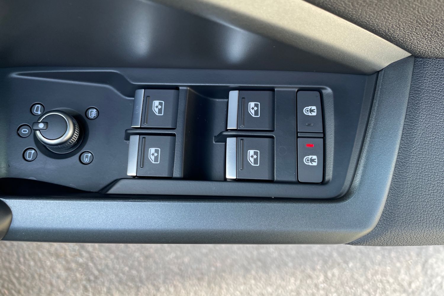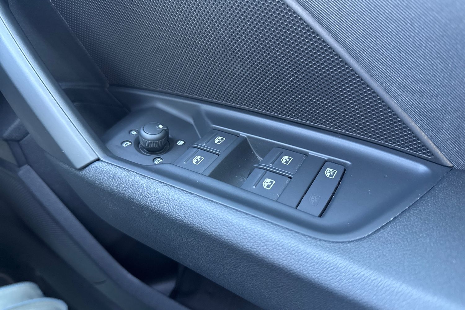 "Chrome applications on rotary light, mirror adjustment, window regulator switches, outlet with frame in black",