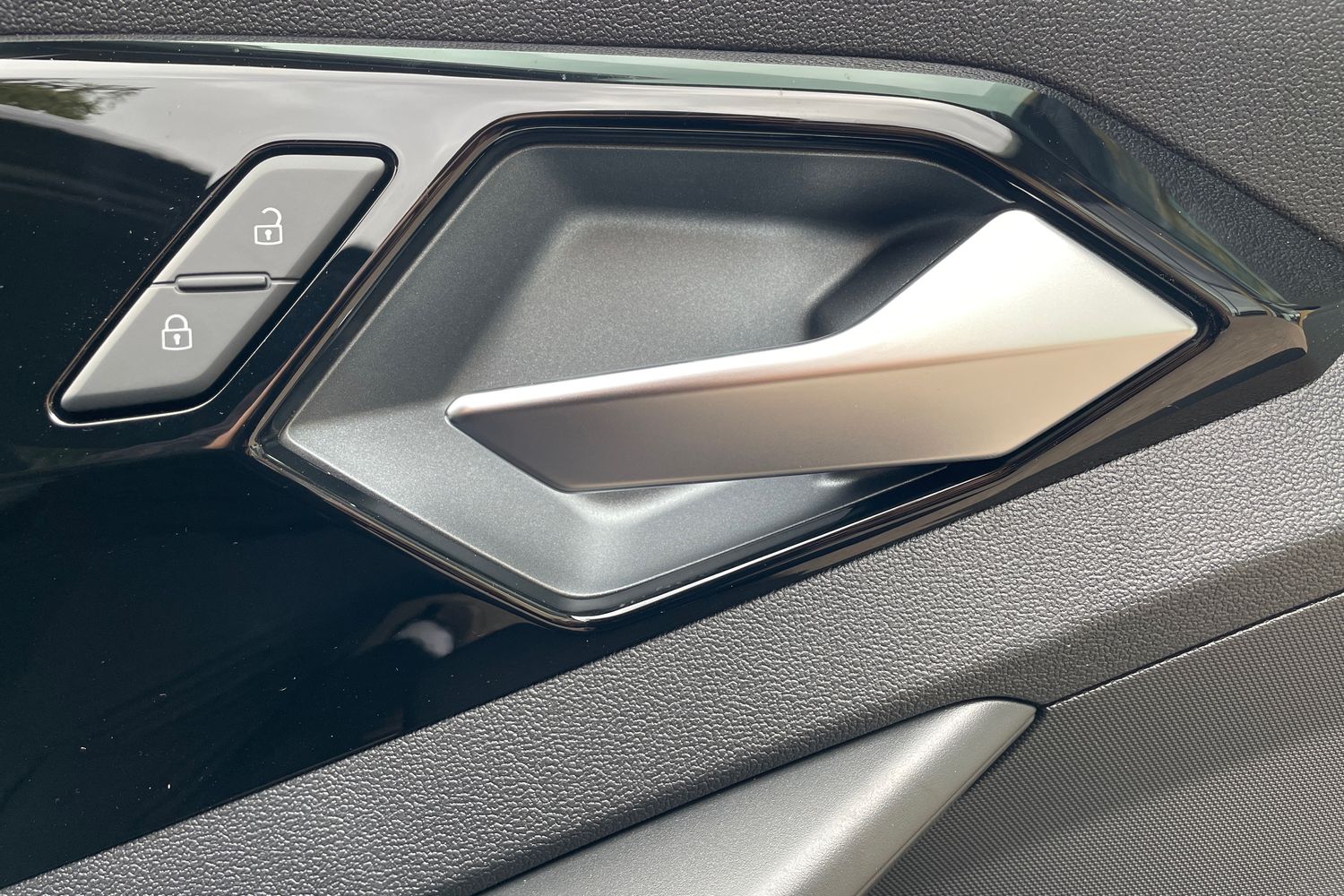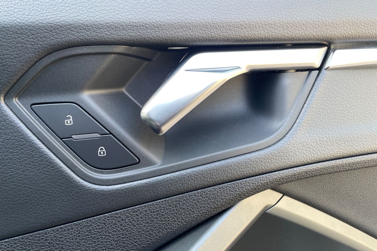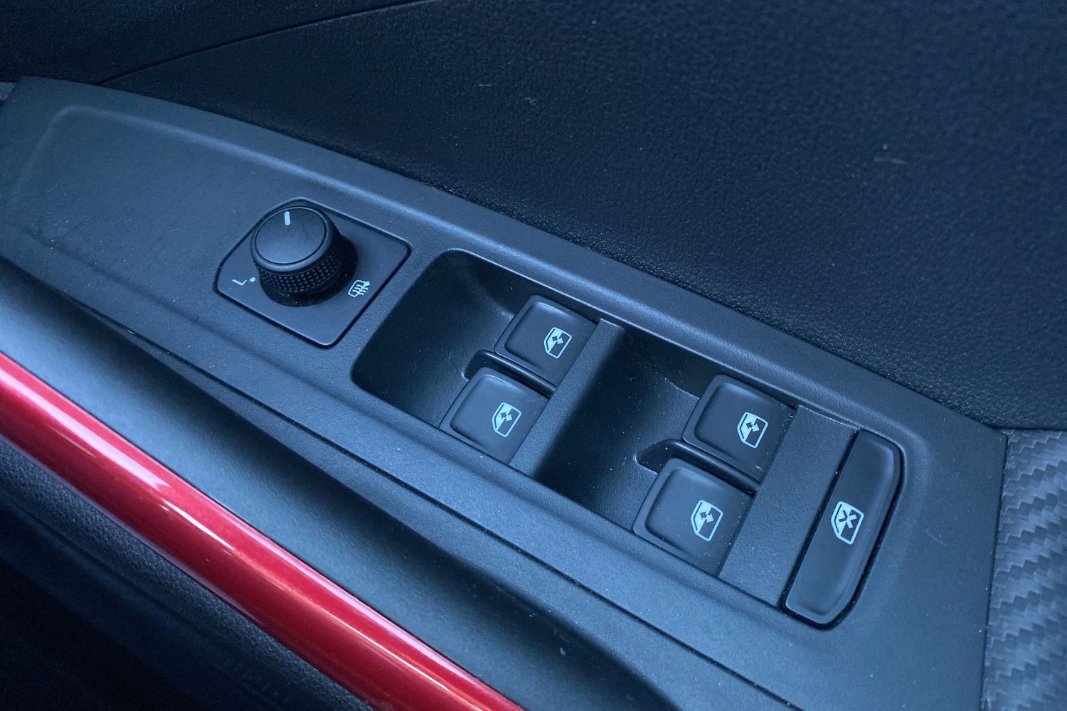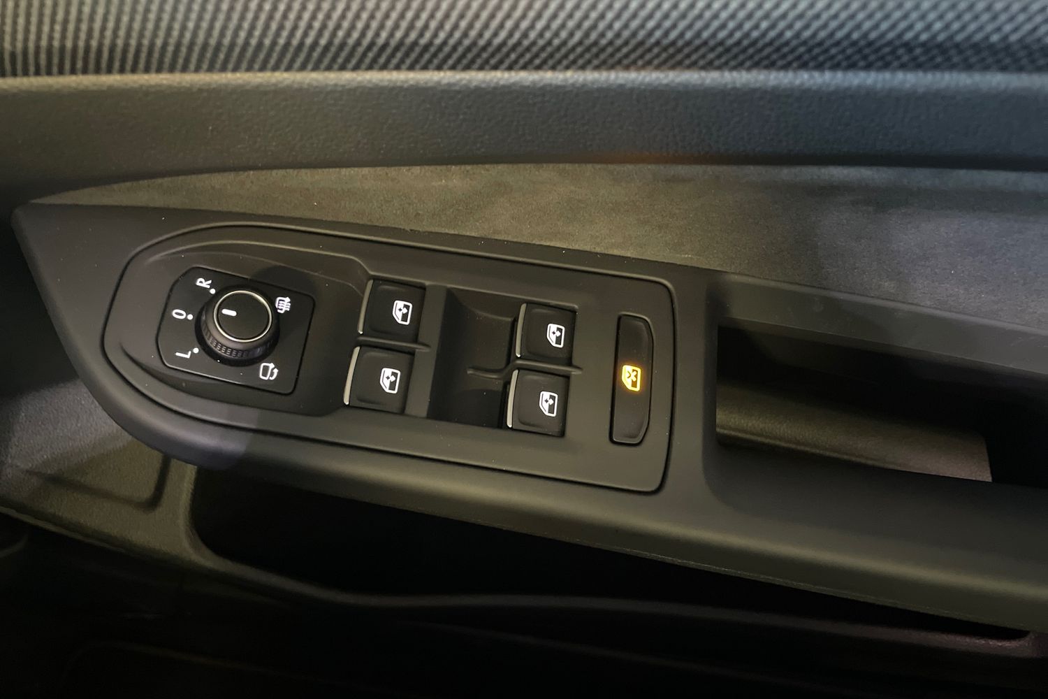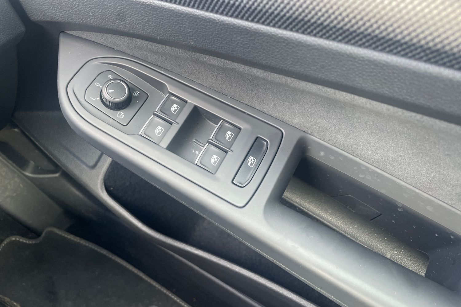 "Chrome applications on rotary light, mirror adjustment, window regulator switches, outlet with frame in black",
