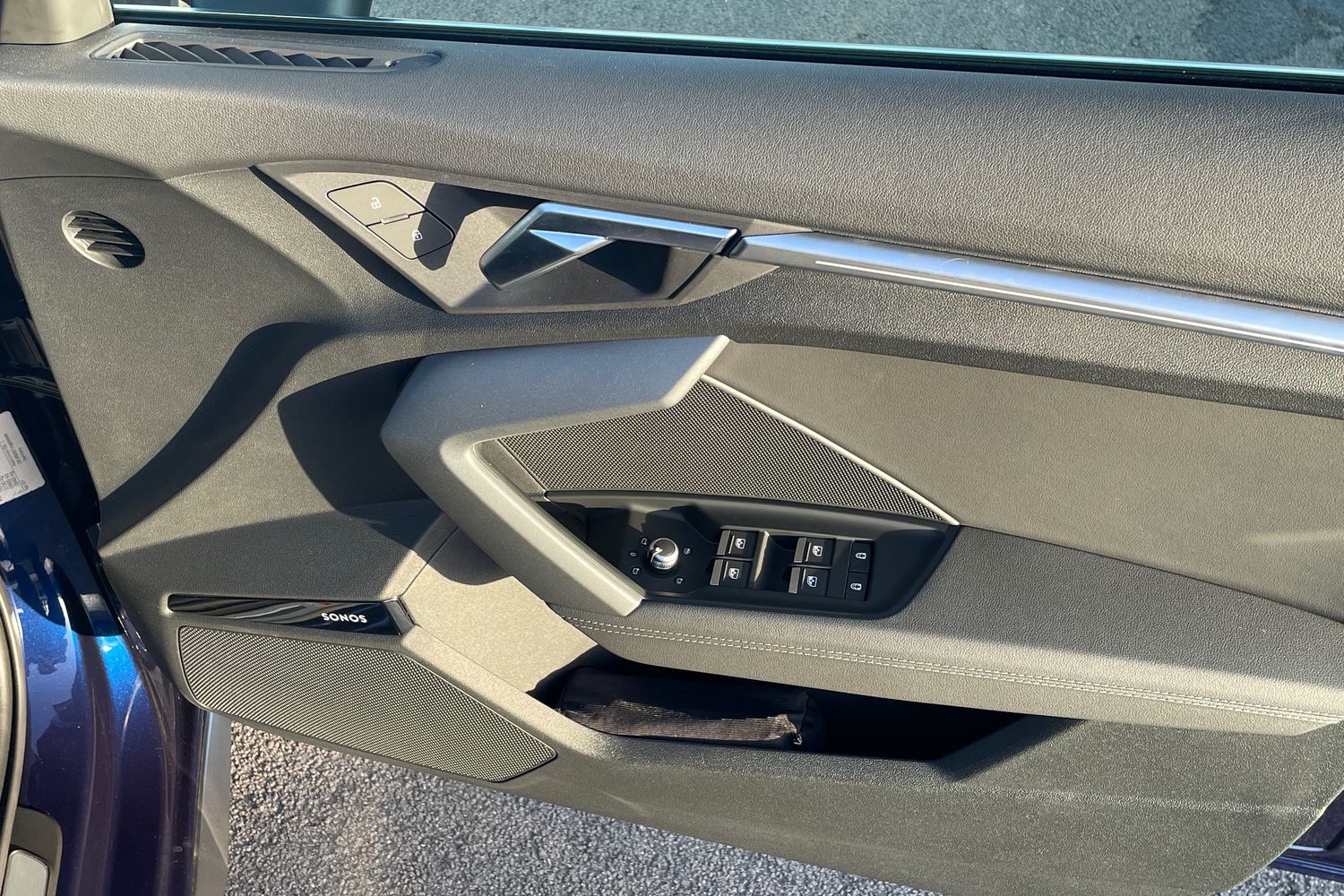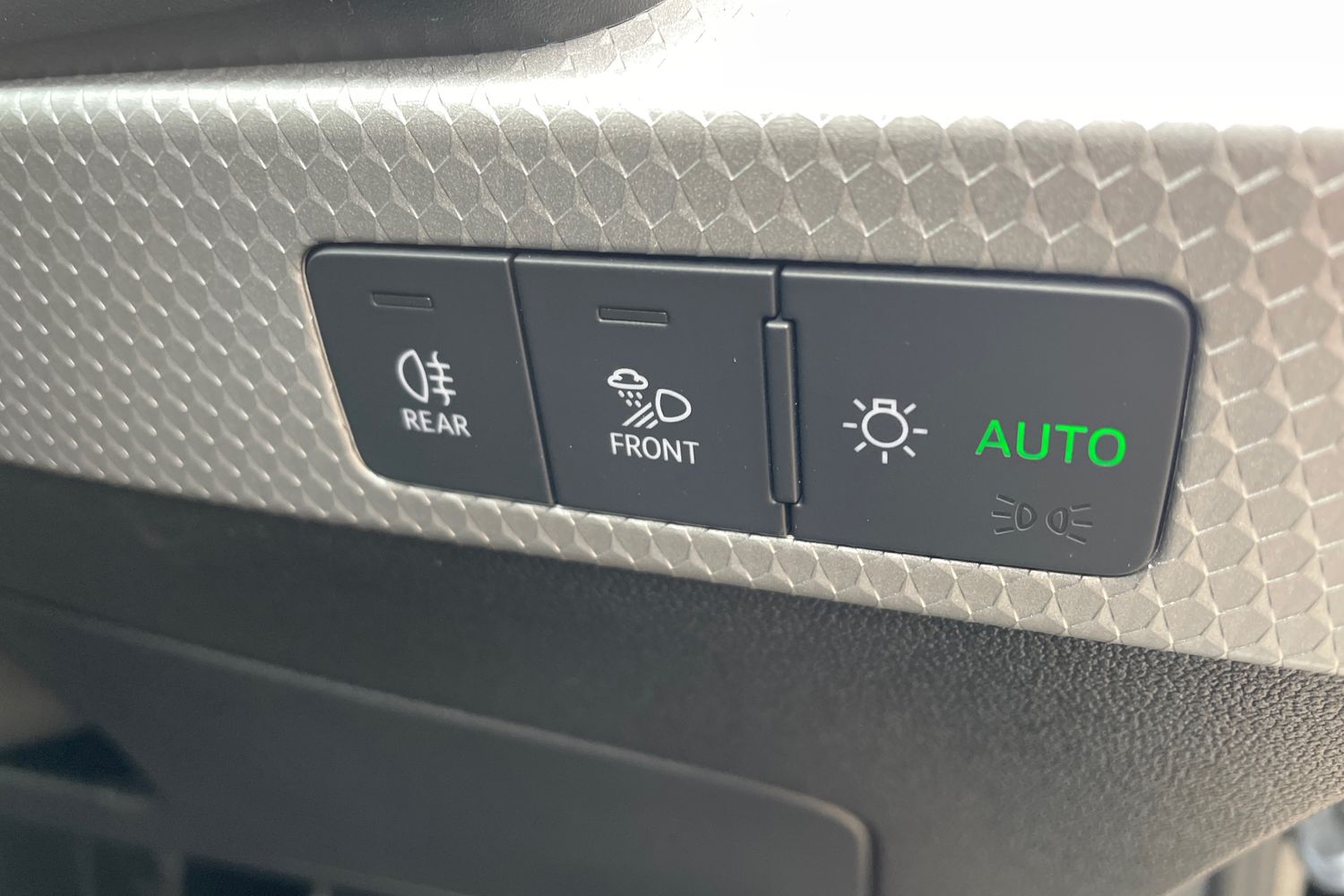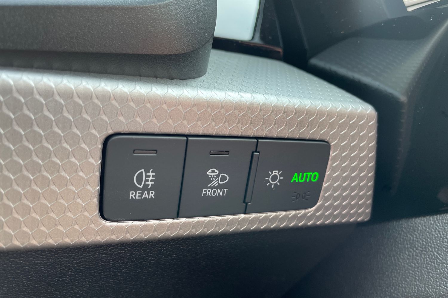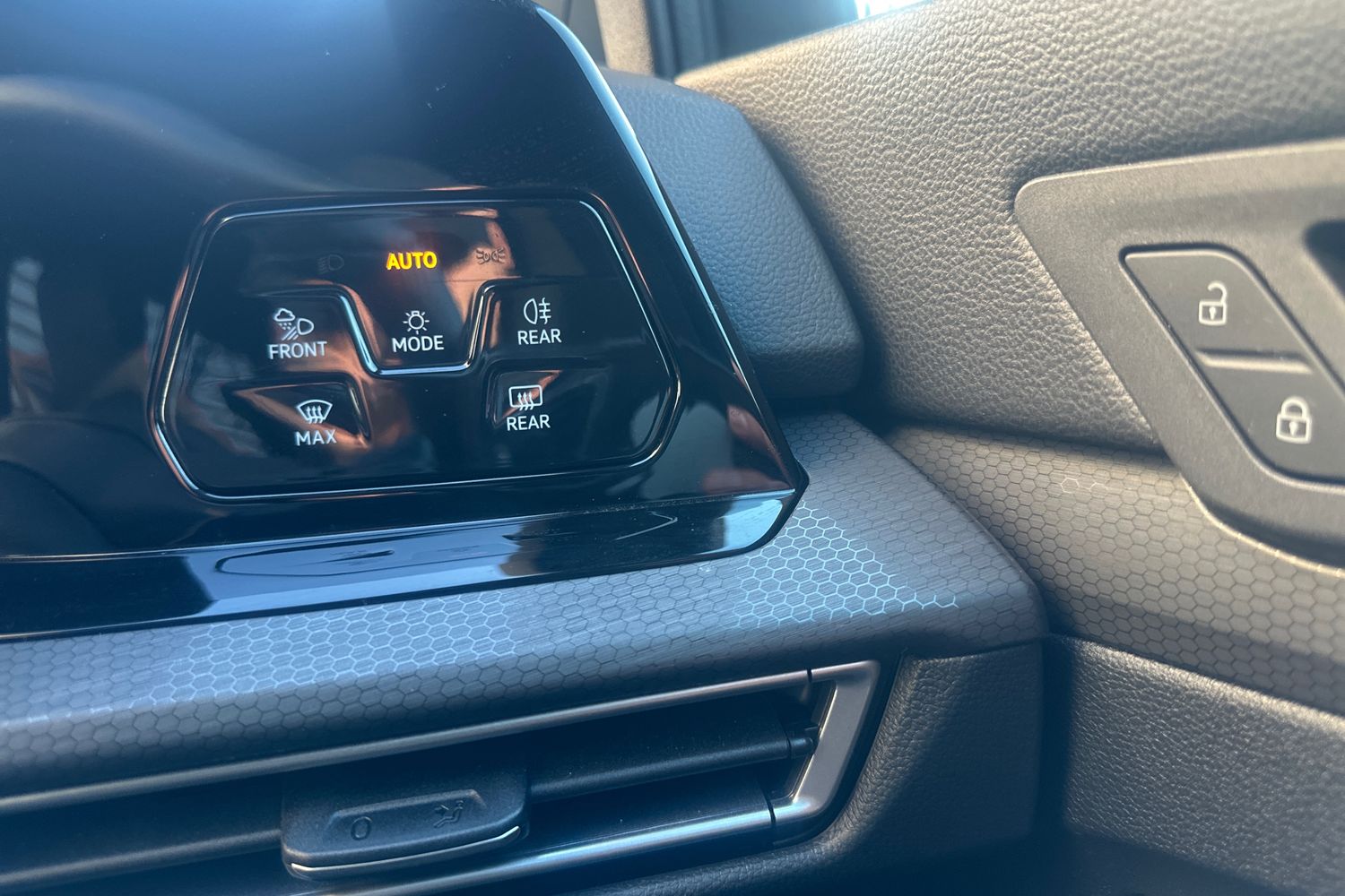 "Chrome applications on rotary light, mirror adjustment, window regulator switches, outlet with frame in black",