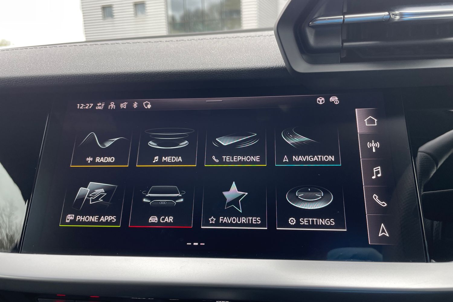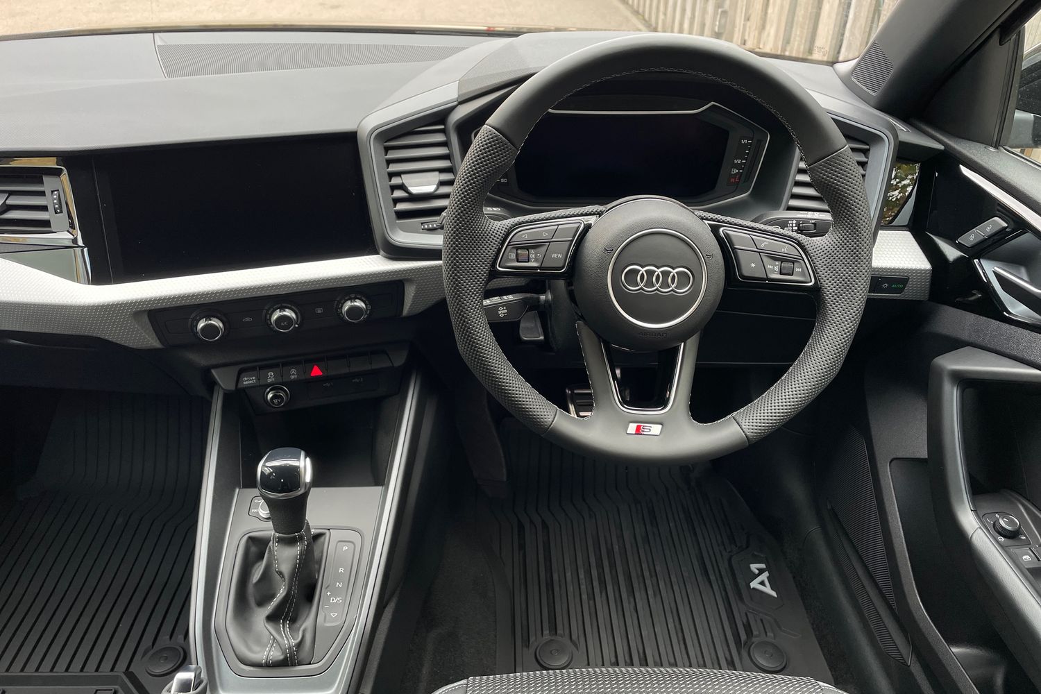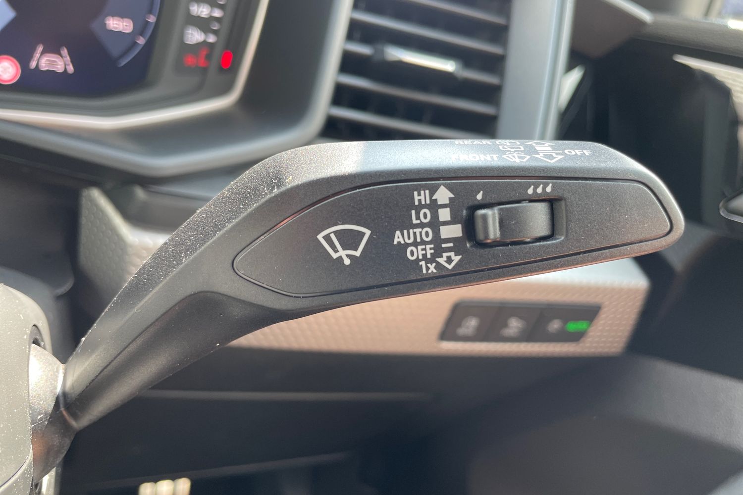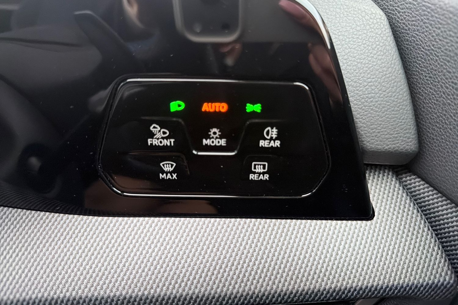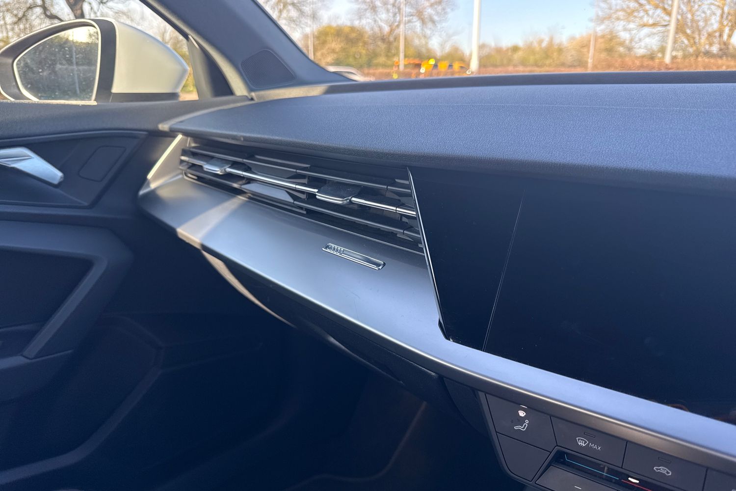 "Chrome applications on rotary light, mirror adjustment, window regulator switches, outlet with frame in black",