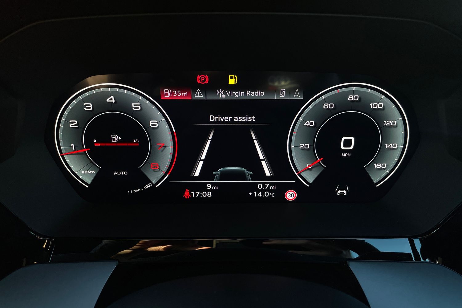 "Speedo and rev counter, electronic odometer, trip, service interval display and fuel gauge",