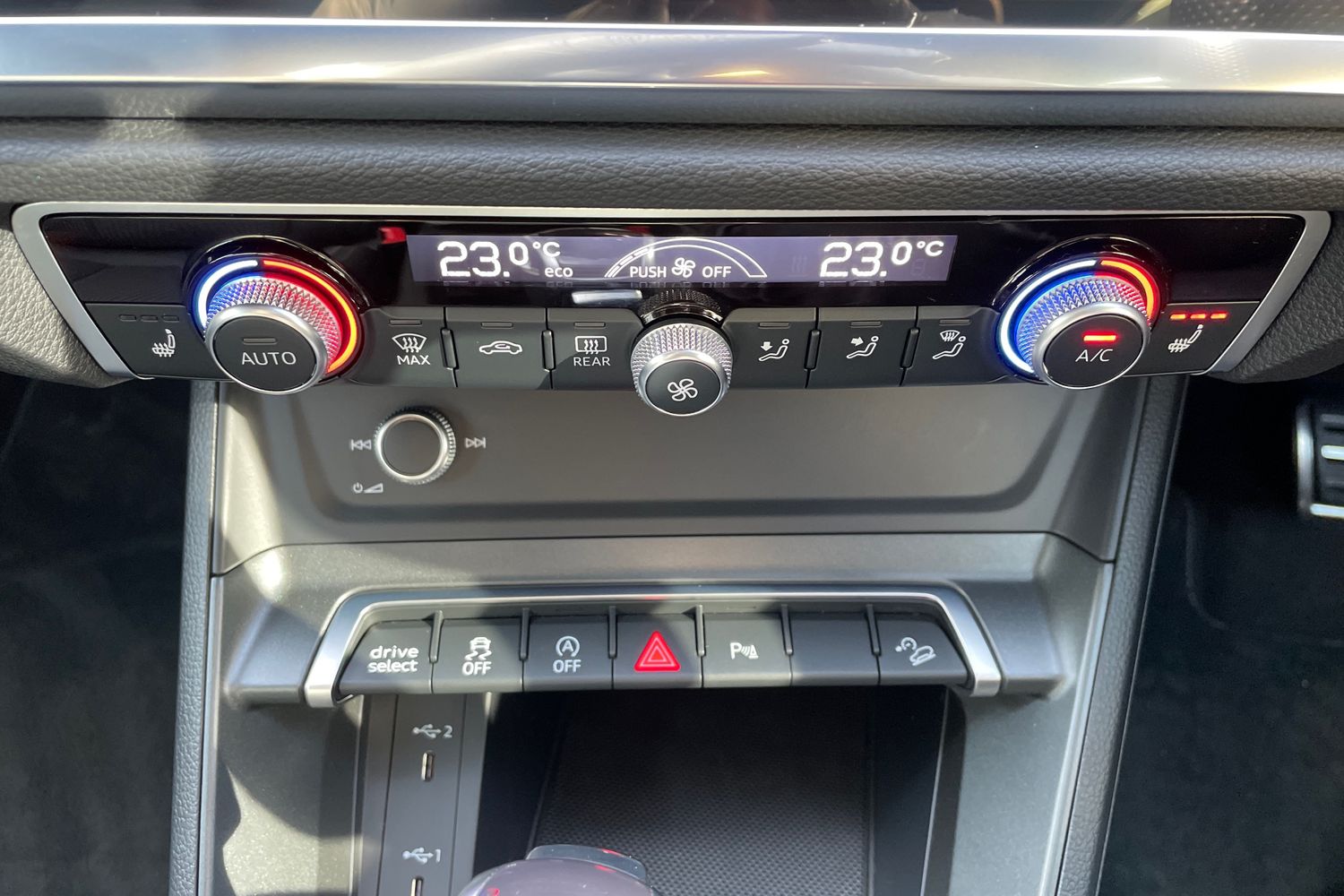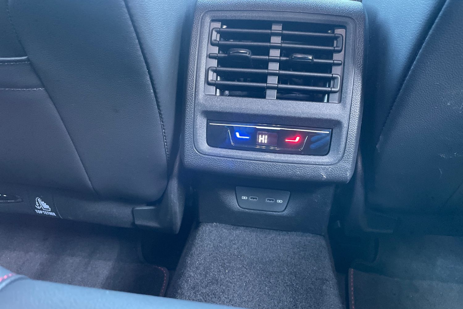 "2 USB-C ports in the front, 2 USB-C charging sockets on the center console in the rear",