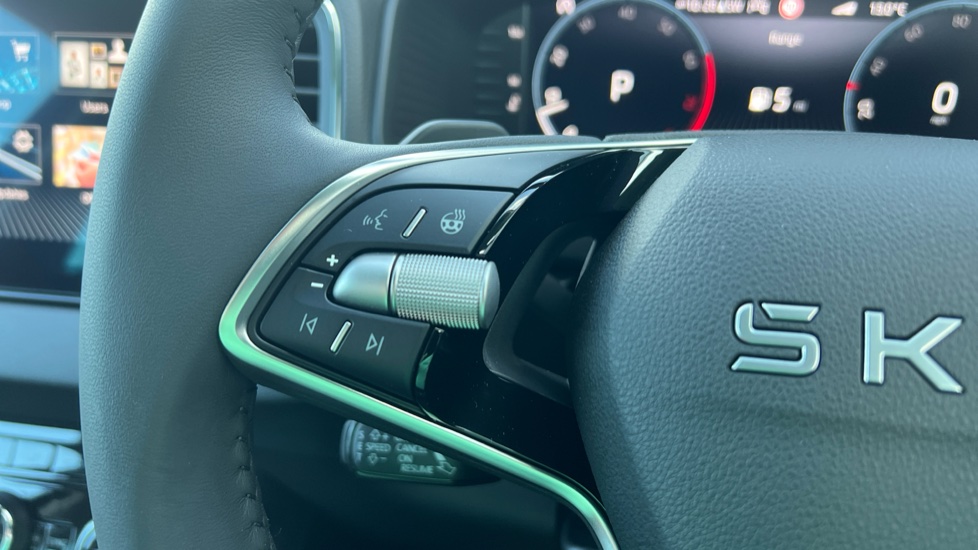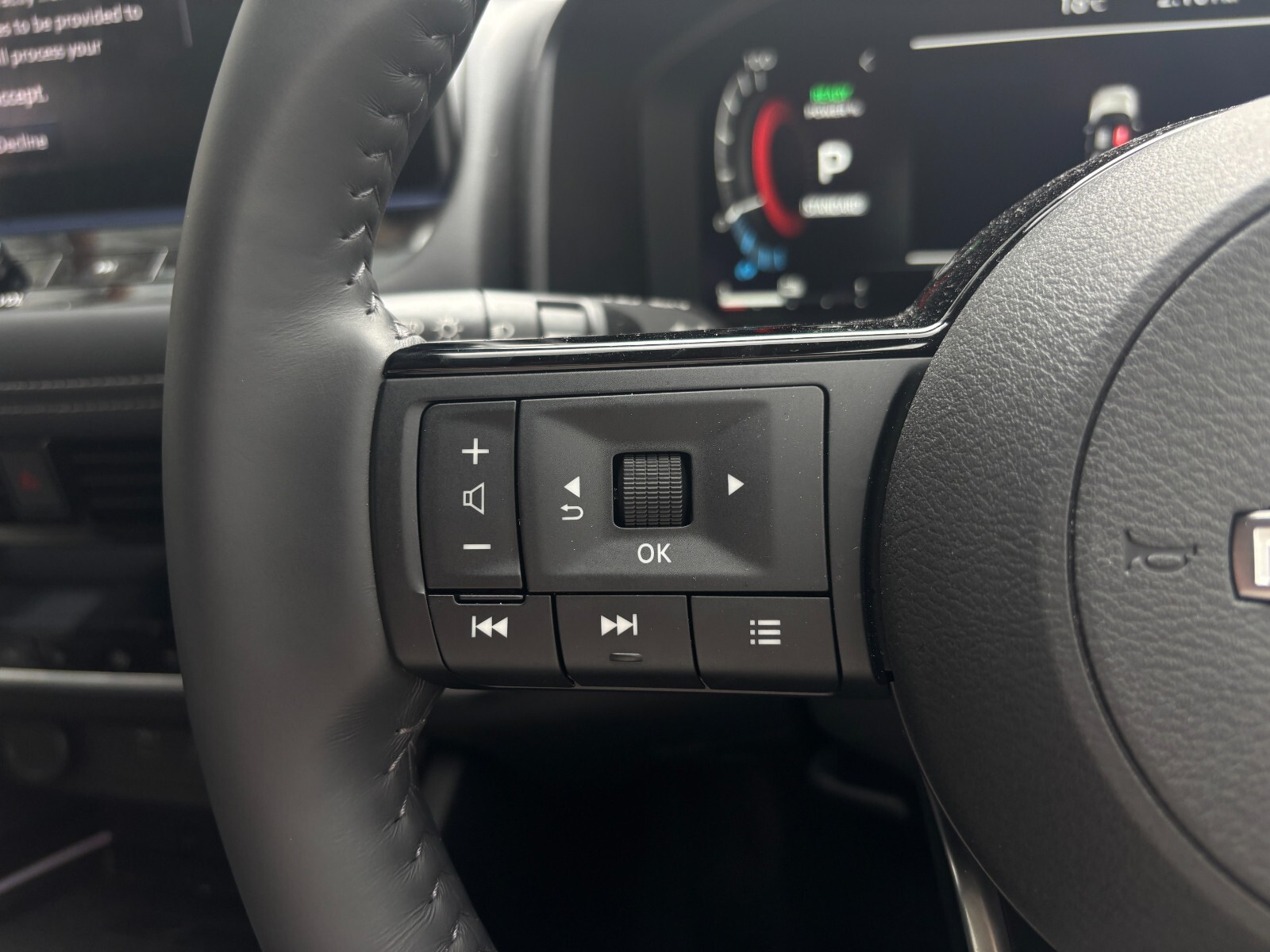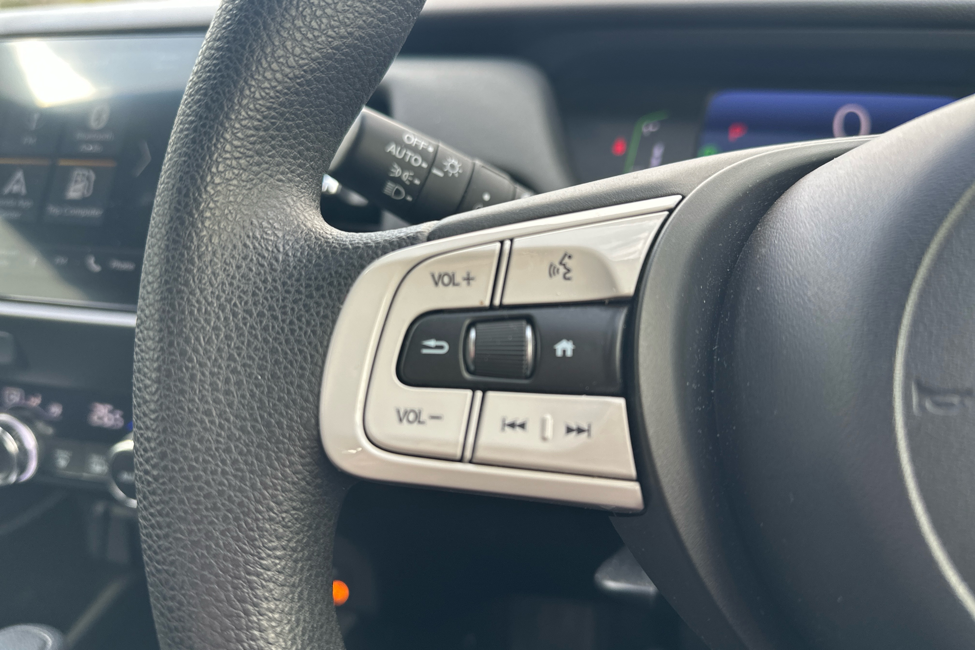 "Leather wrapped multifunction steering wheel",