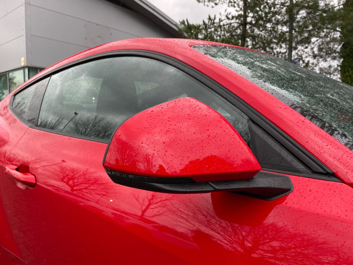 "Exterior mirrors convex on the left and aspherical on the right",