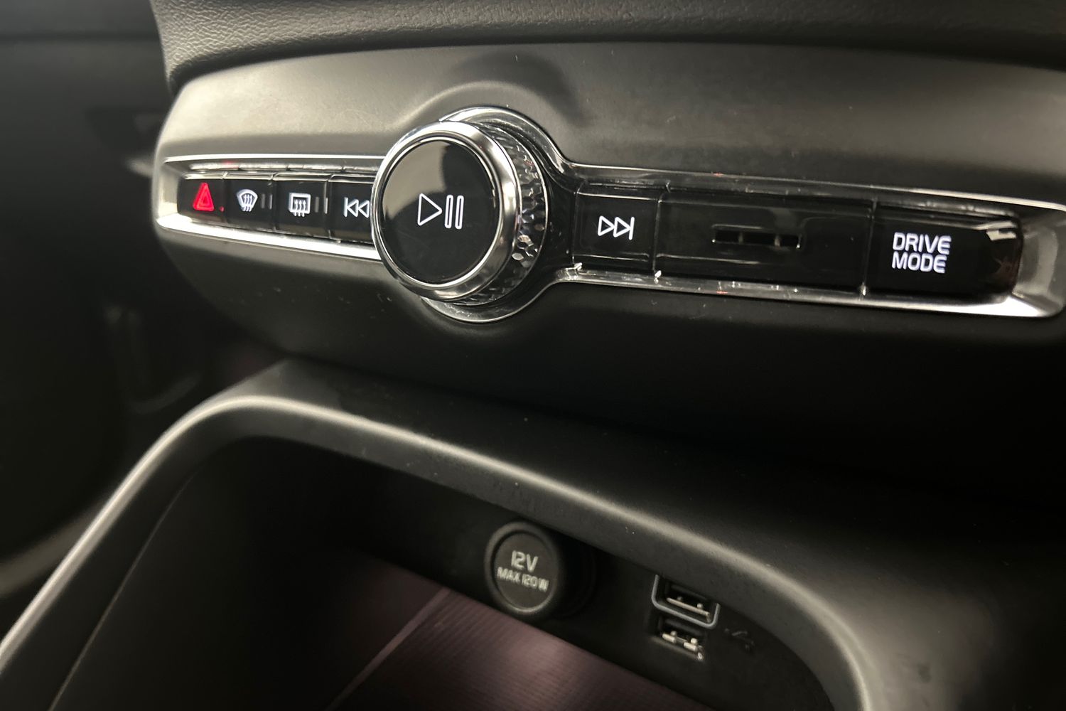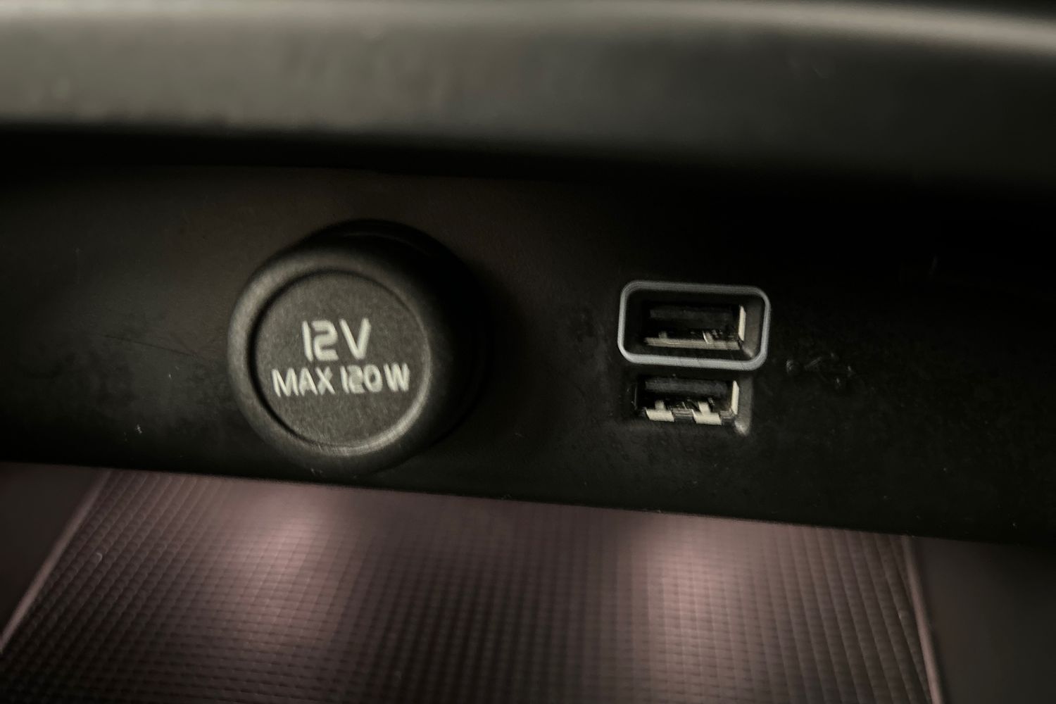 "12V outlet in front and tray",