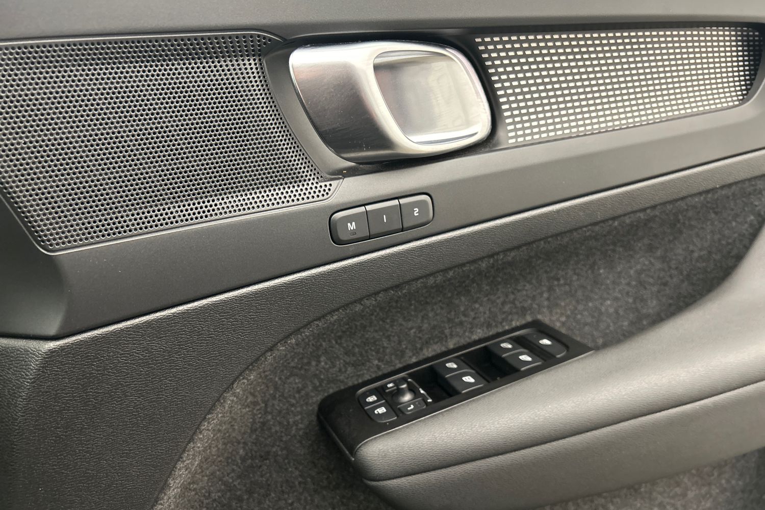 "Interior door handle in matte chrome"