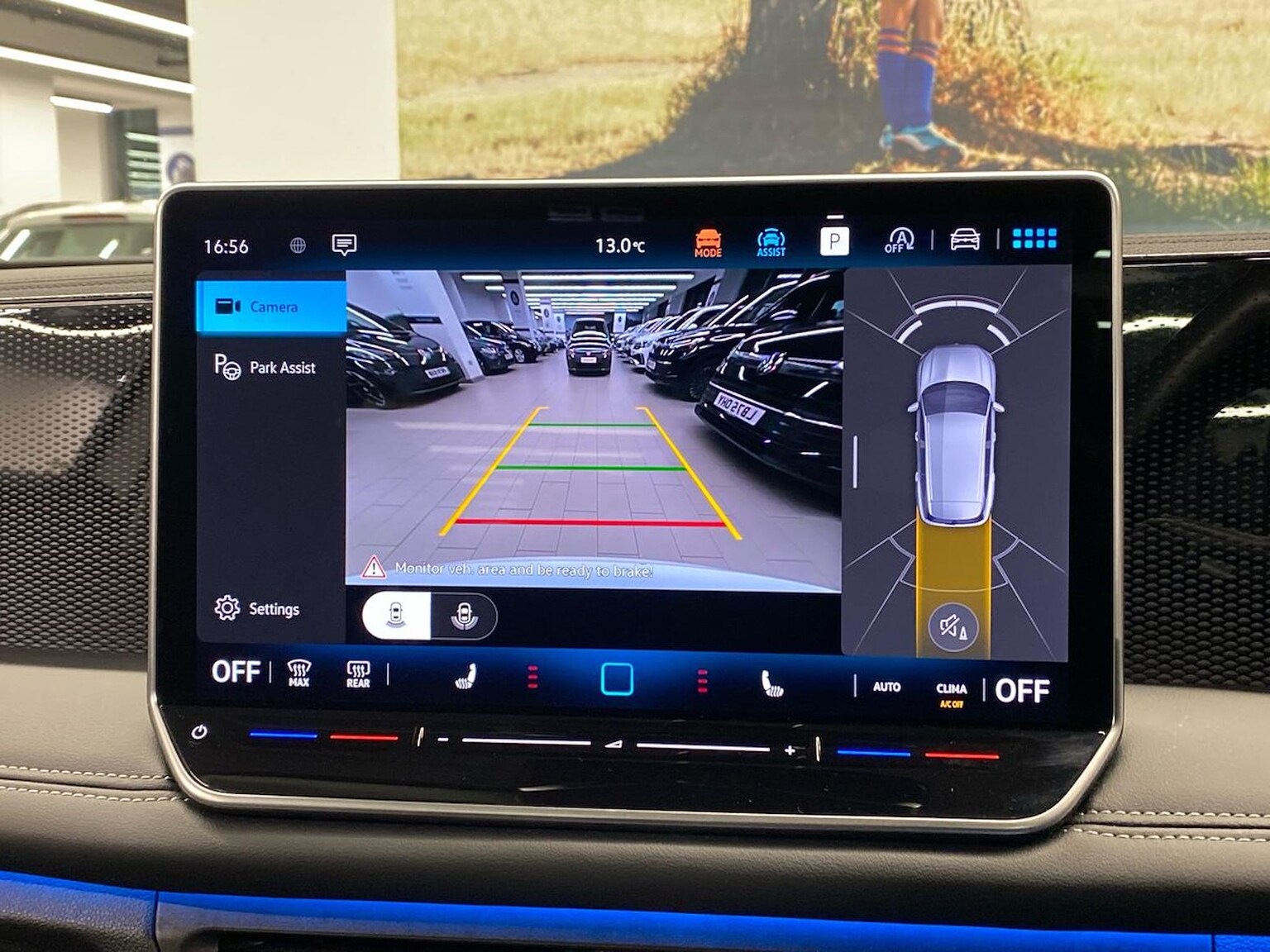 "Reversing camera system integrated into centre fascia screen",