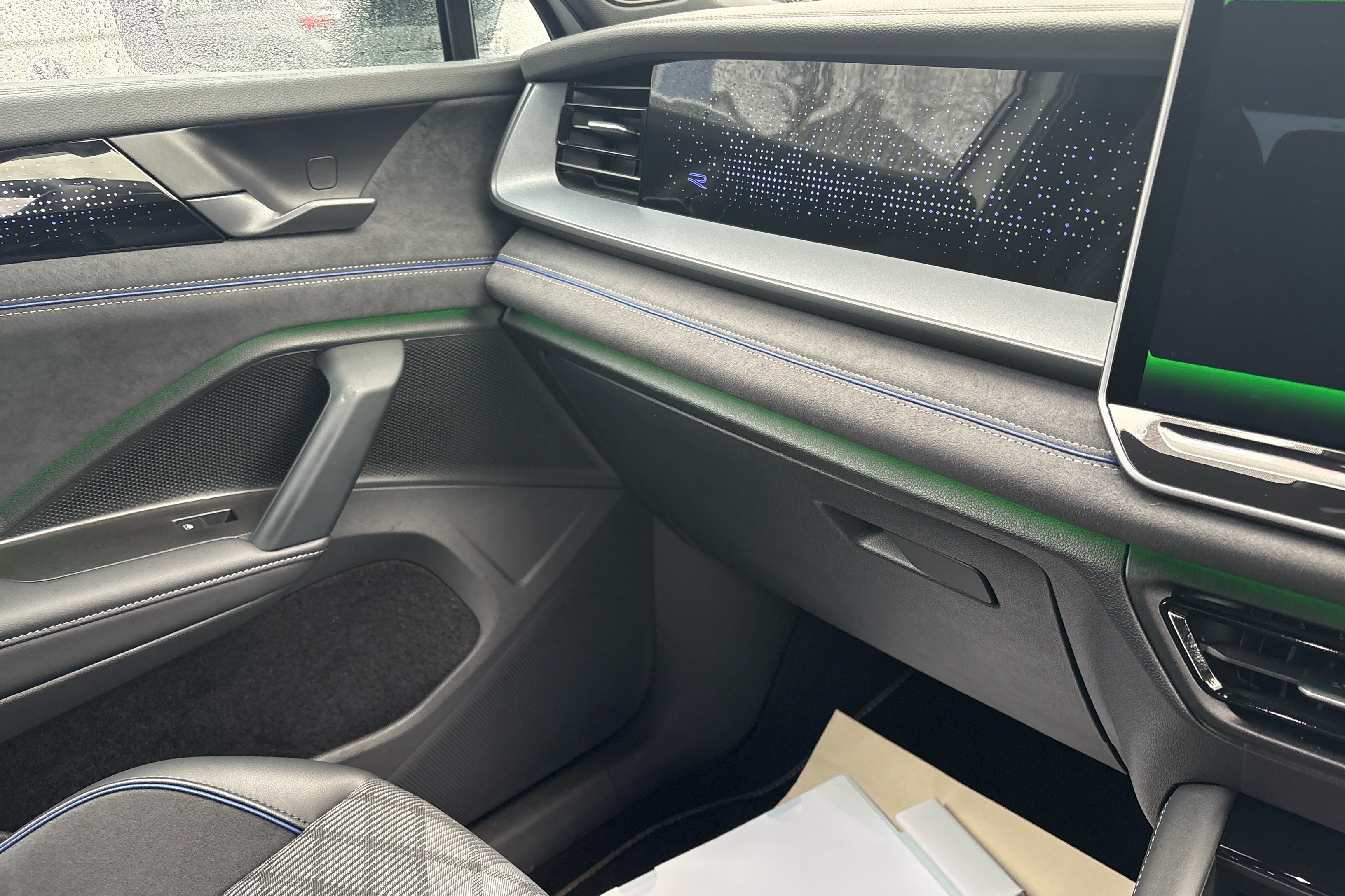 "Dashboard, door cards and front centre armrest in black cloth",