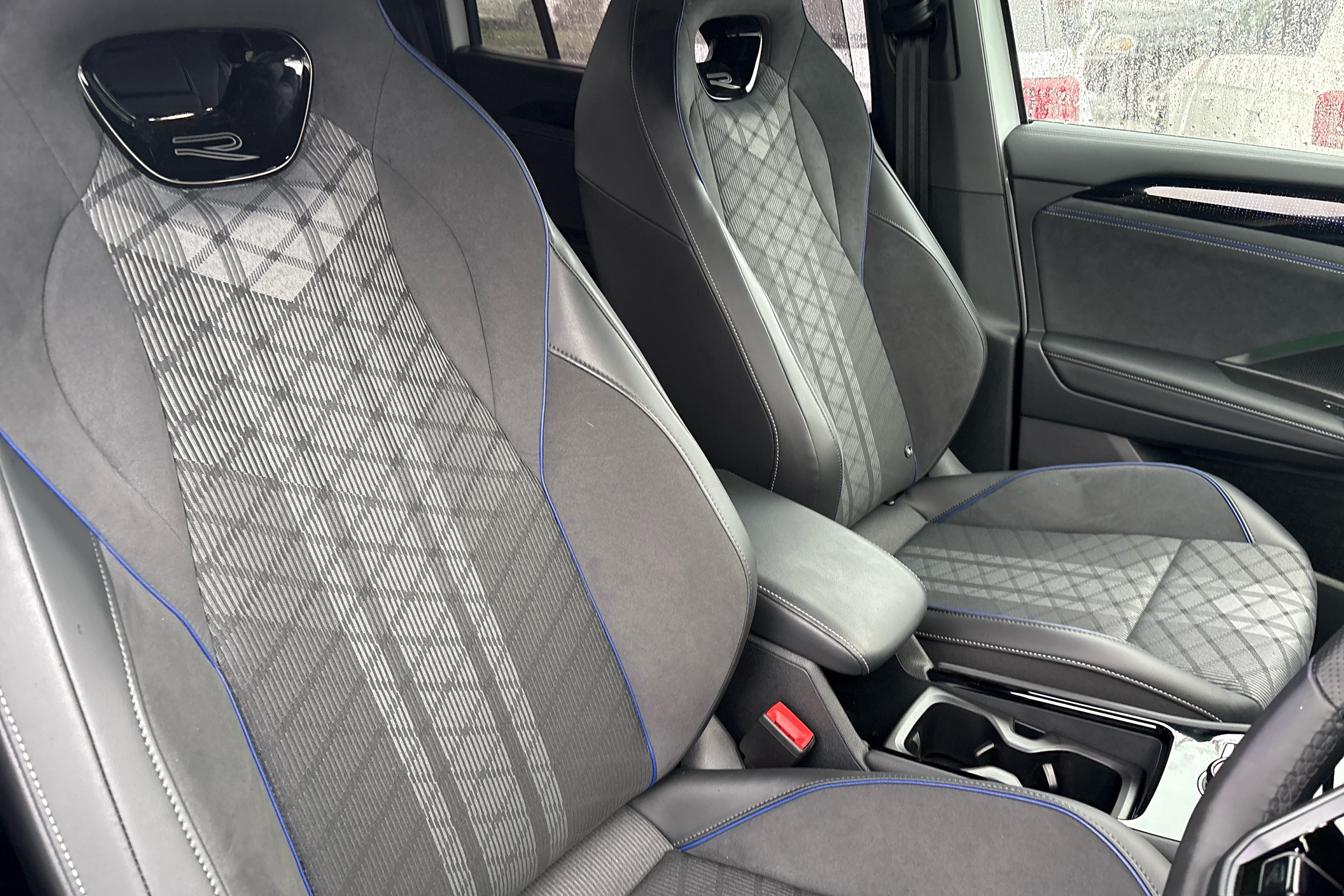 "Front and rear (x3) head restraints",