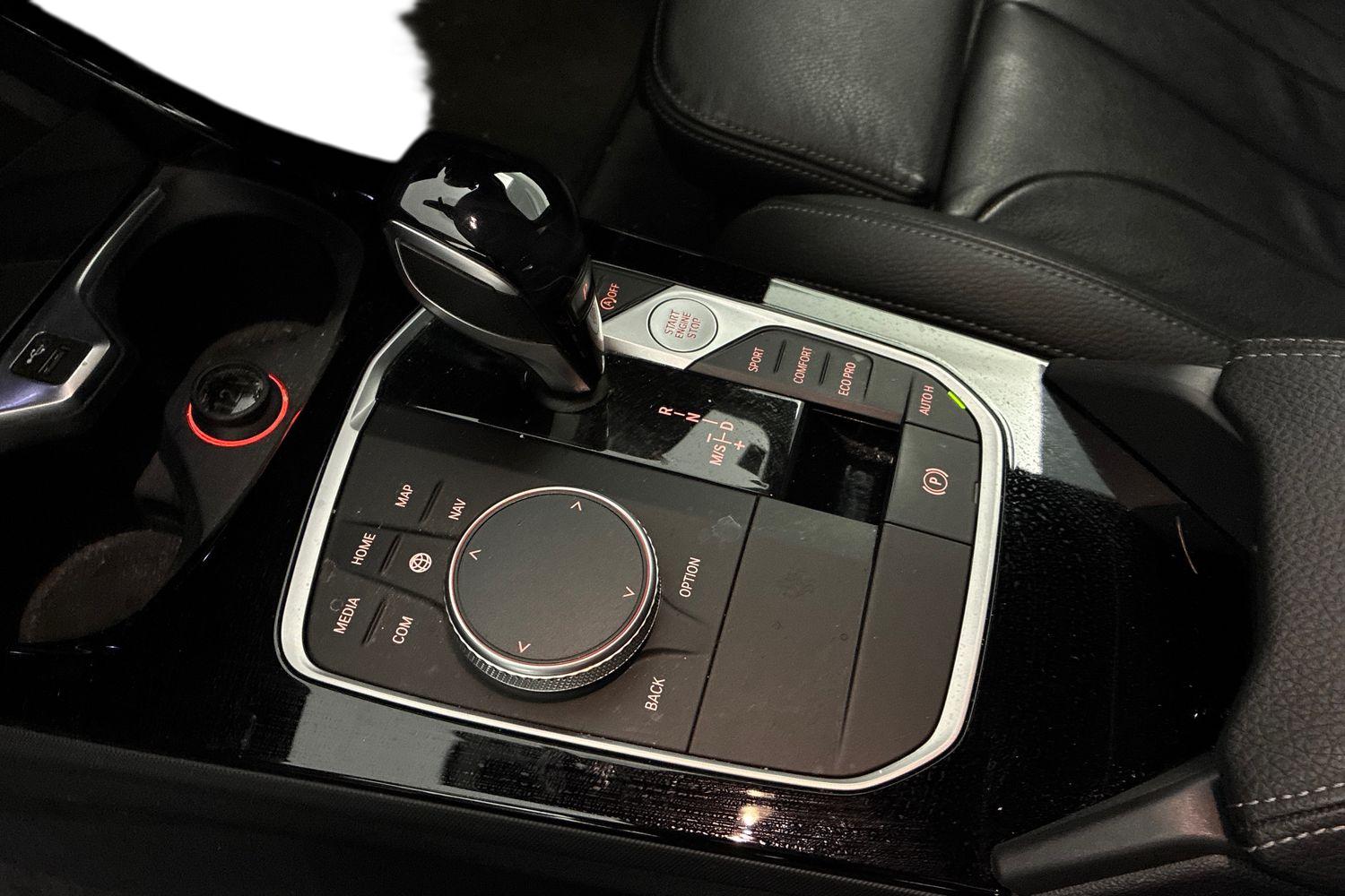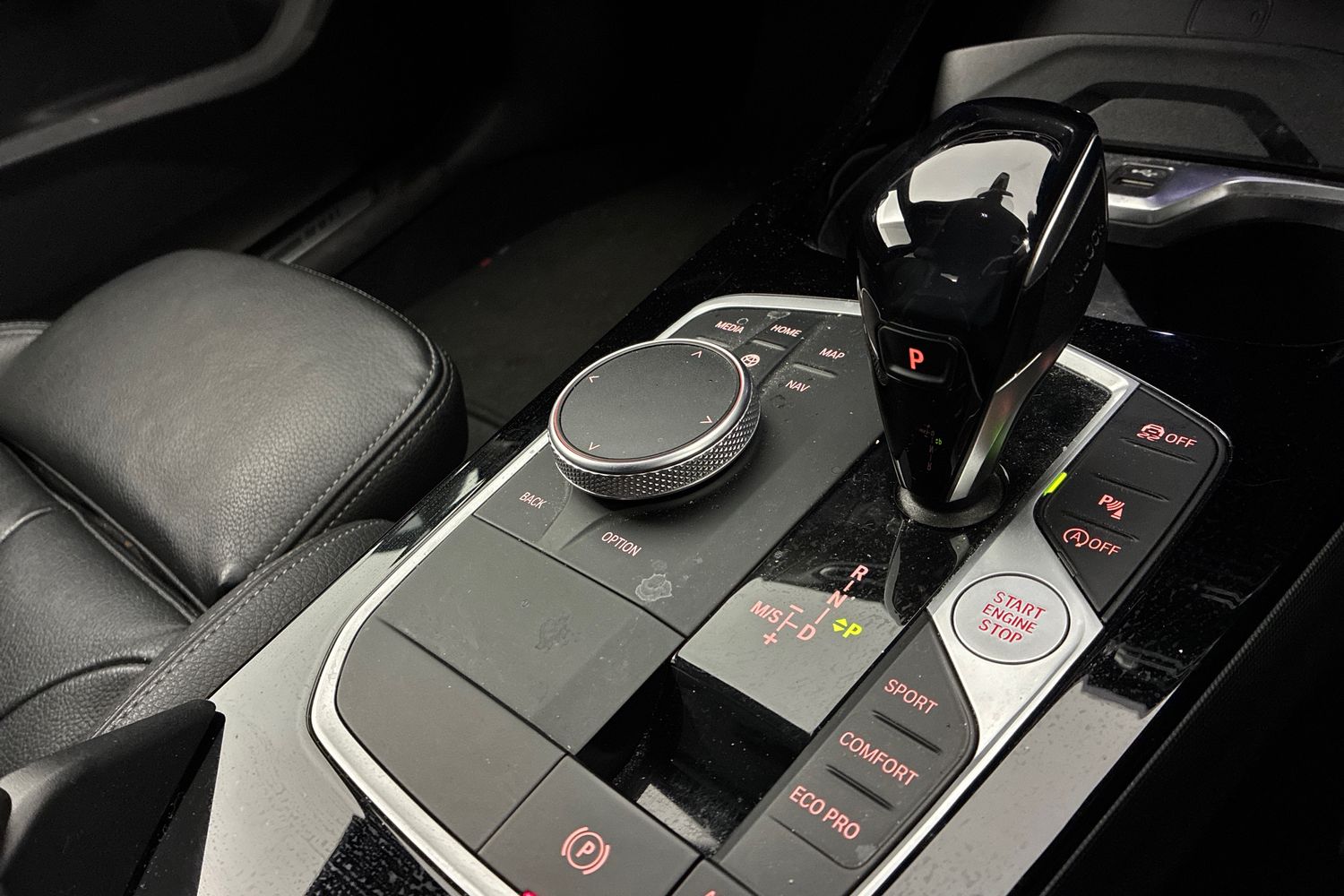 "Leather wrapped gear shift knob",