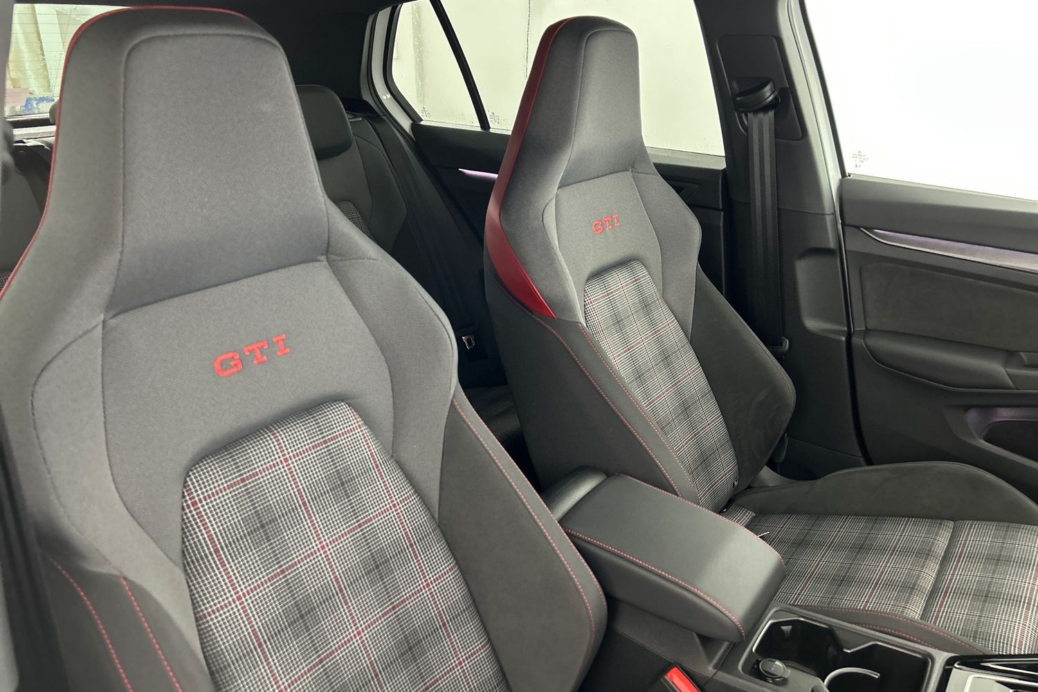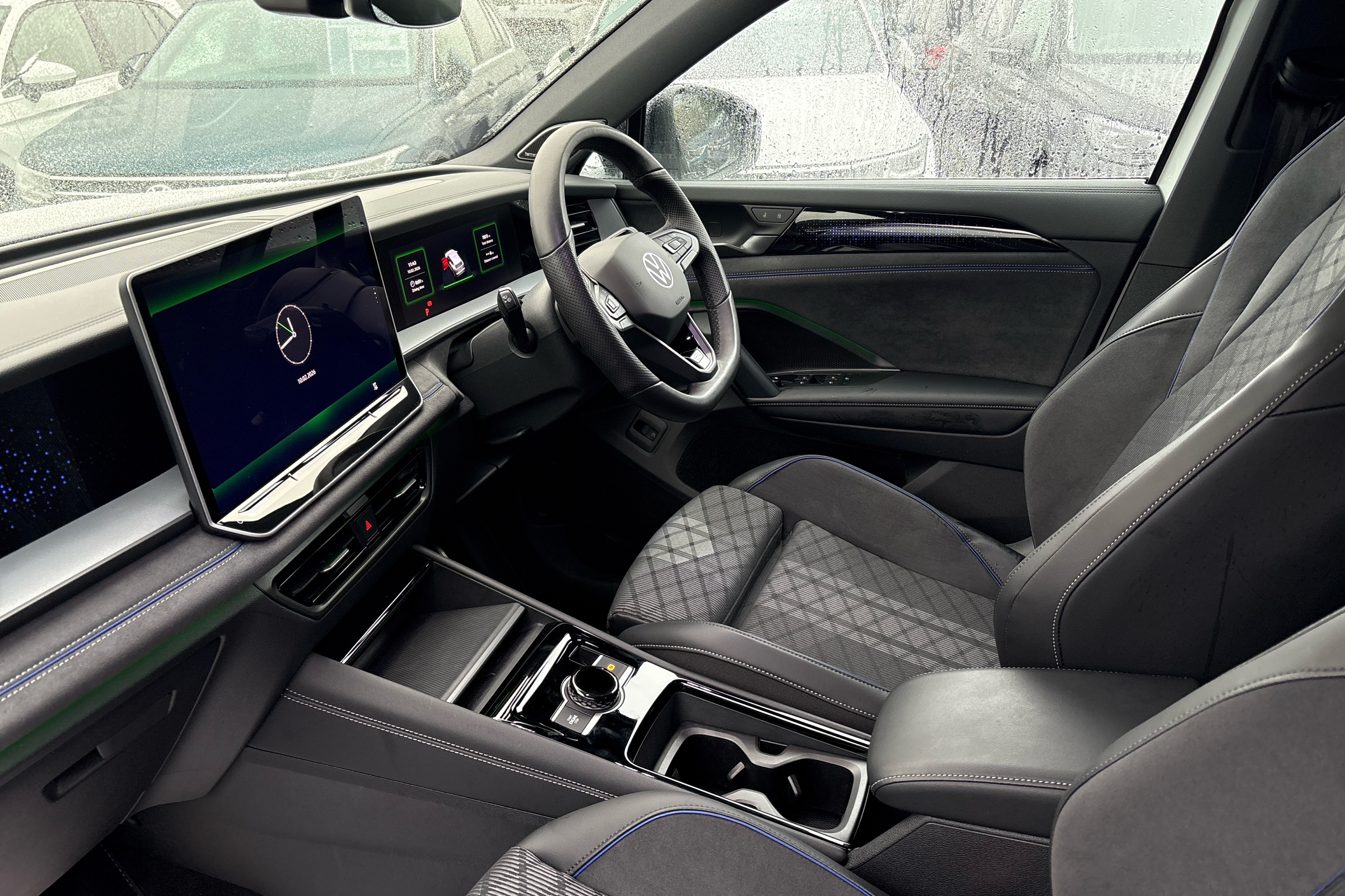 "Cloth upholstery with interior accents",