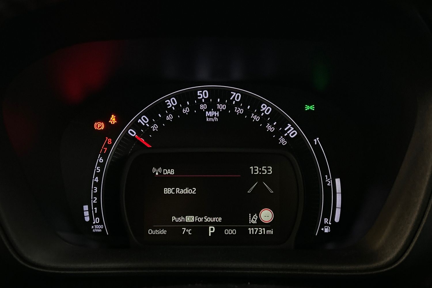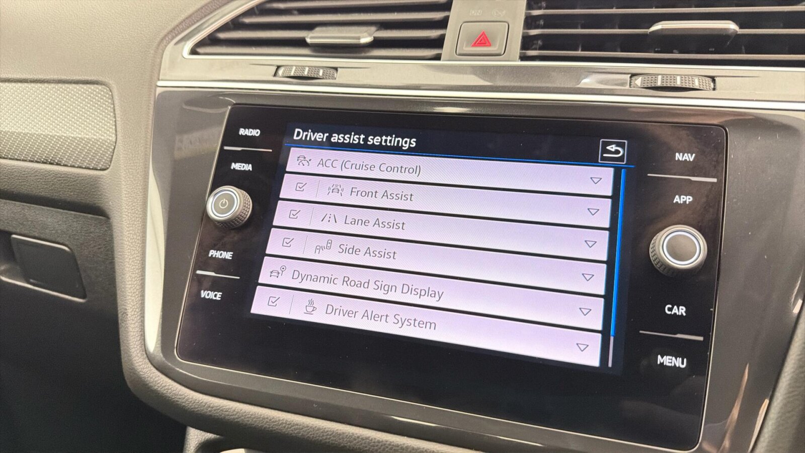 "Lane assist with warning text instrument cluster",