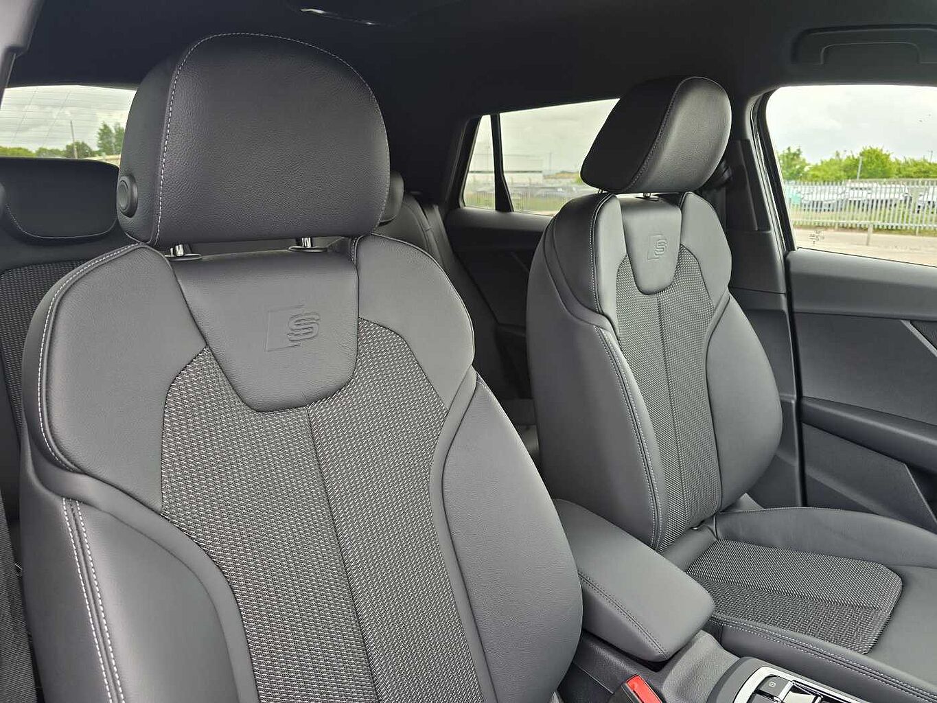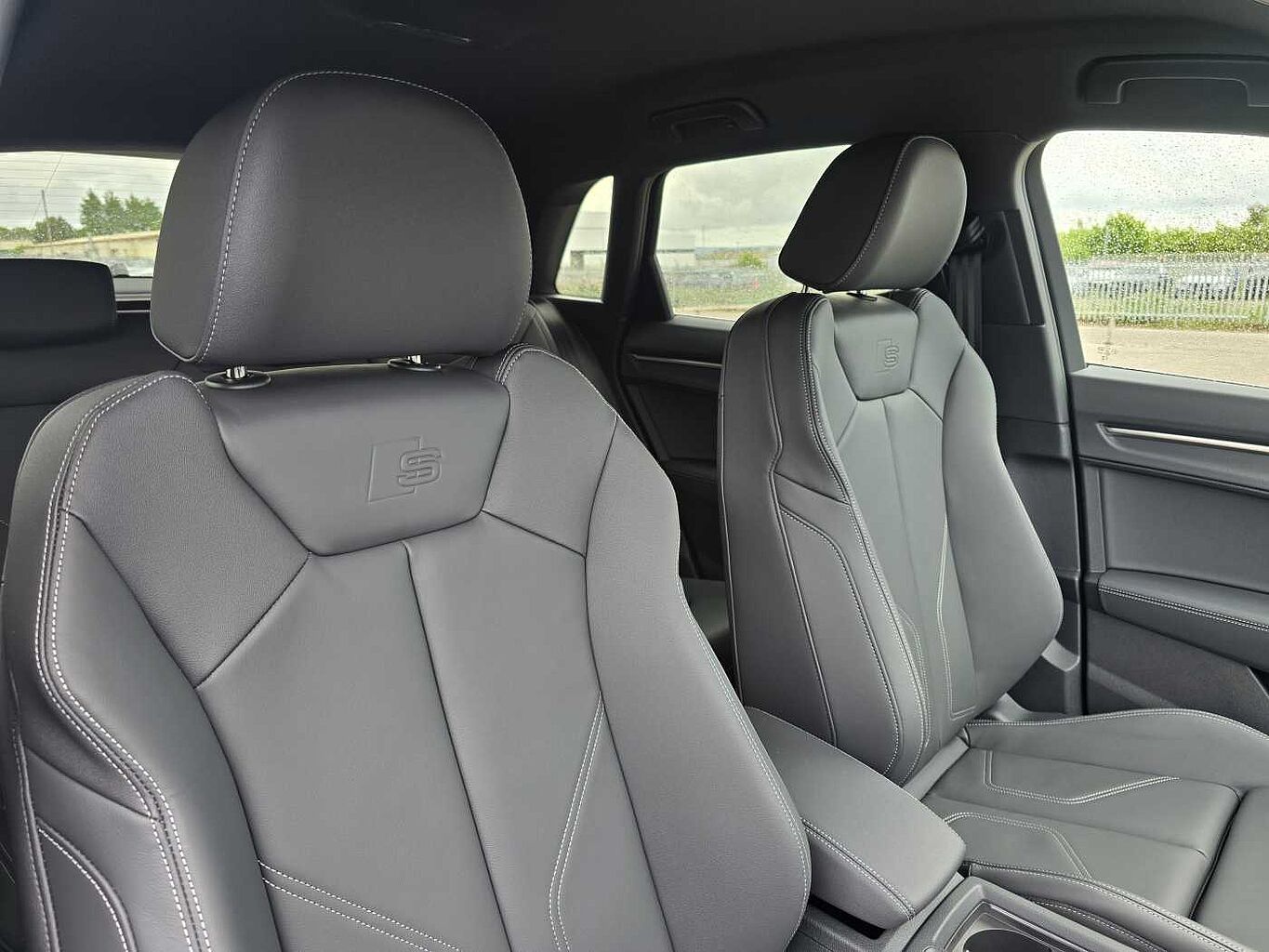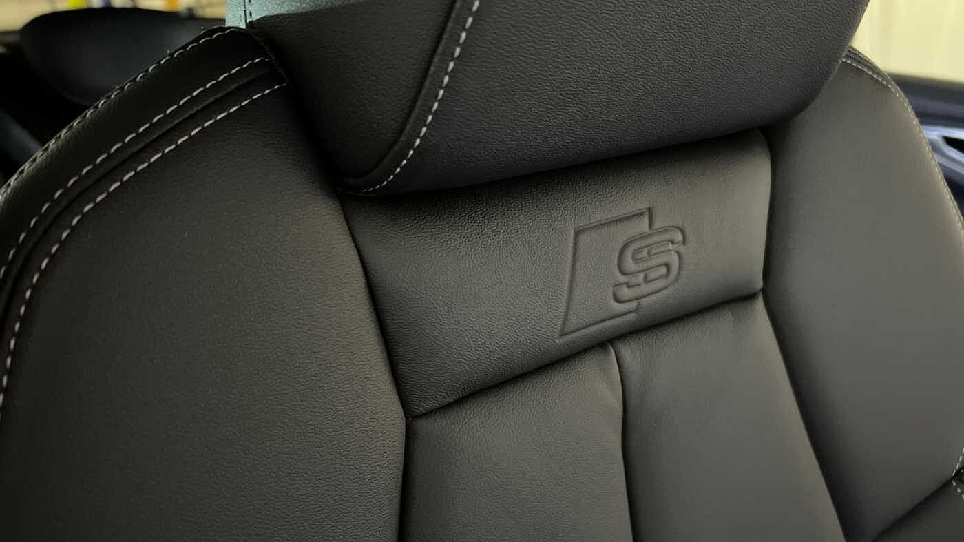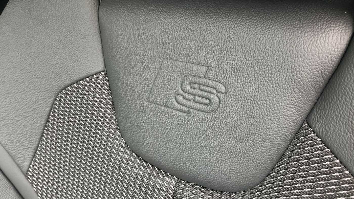 "Twin leather upholstery with front sports seats S embossed logo"