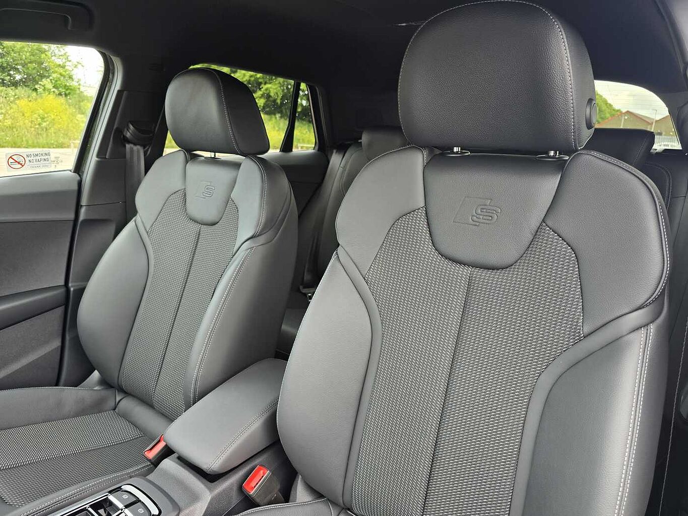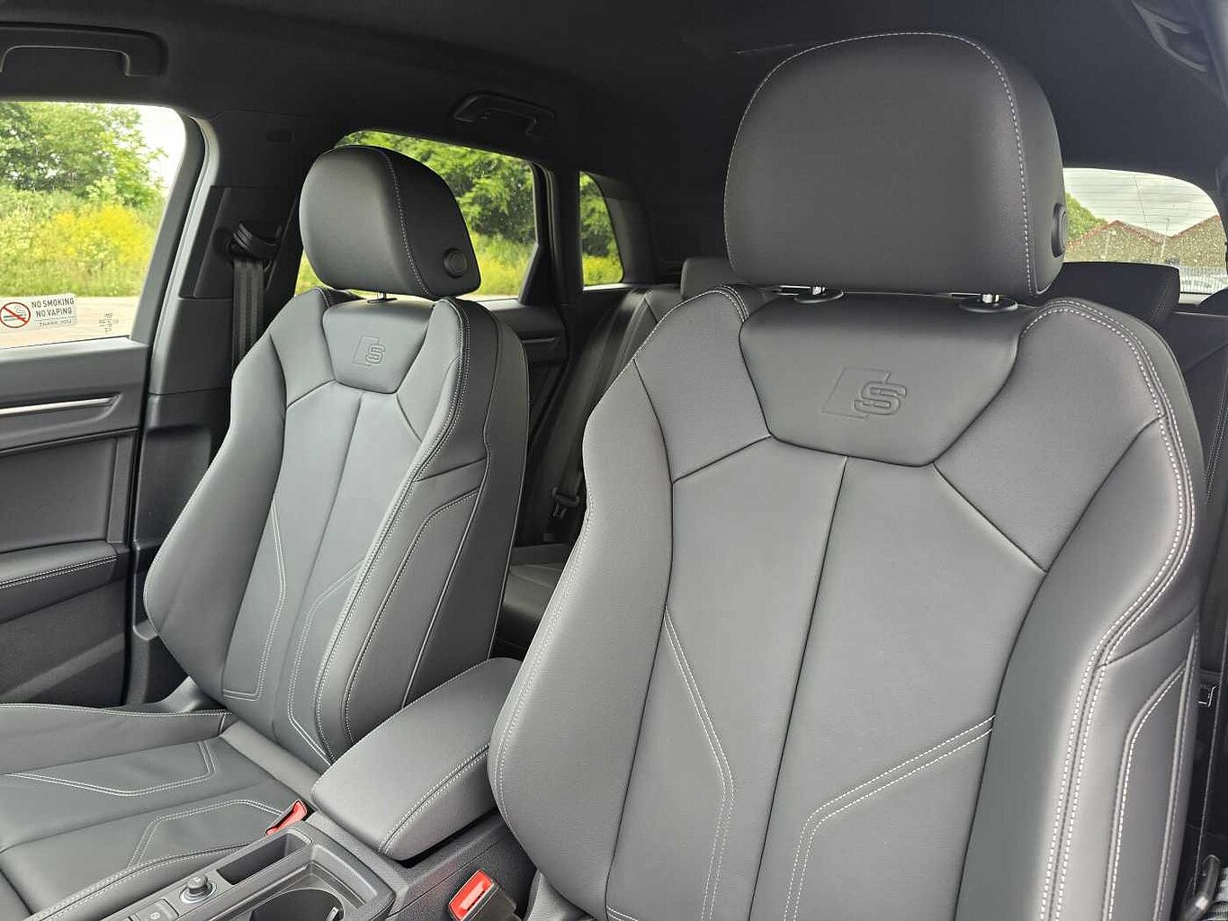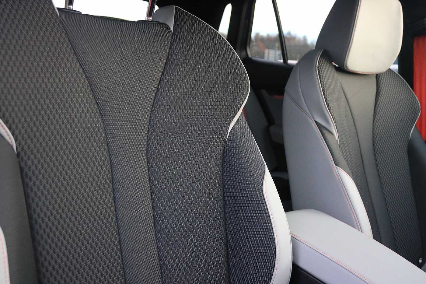 "Twin leather upholstery with front sports seats S embossed logo"