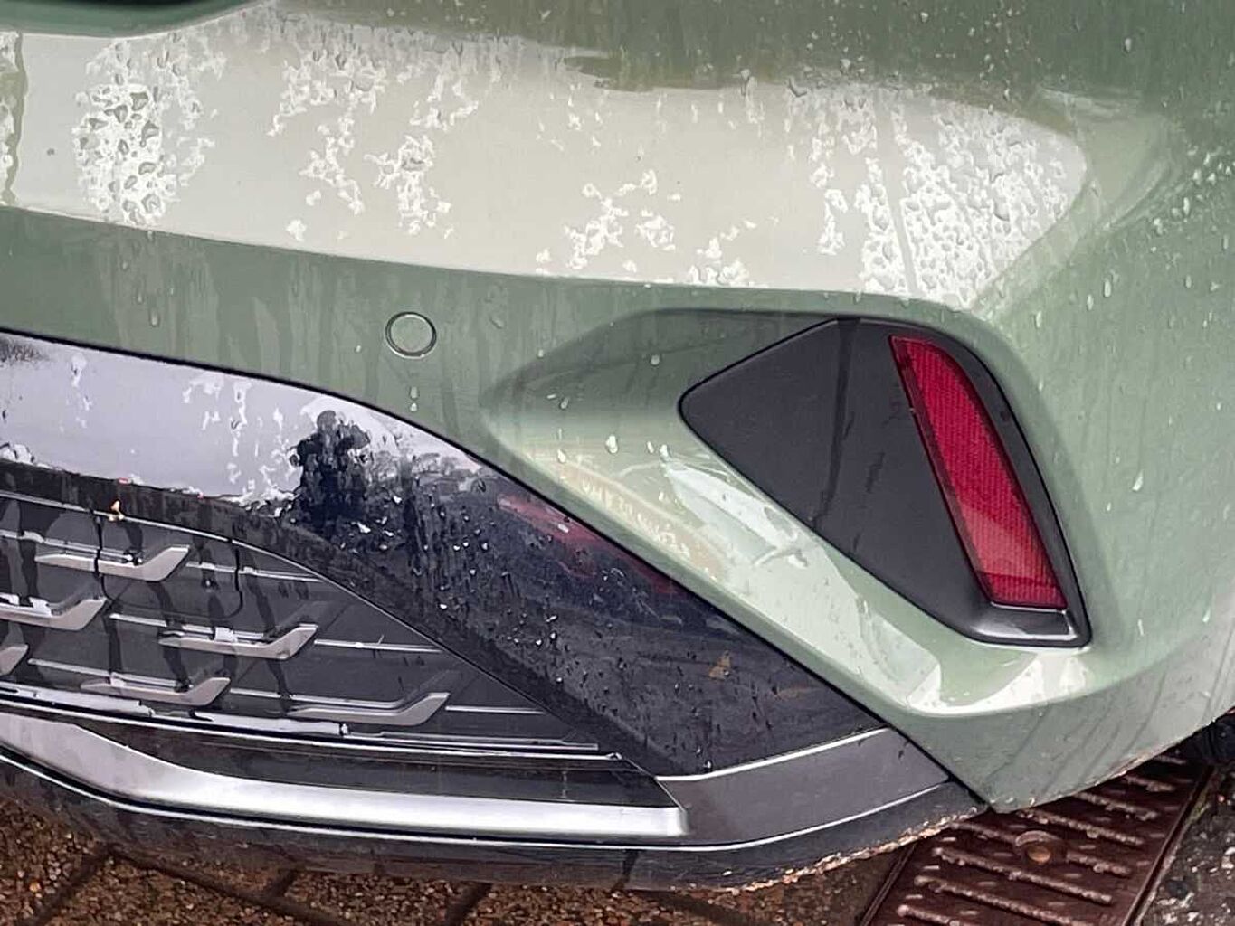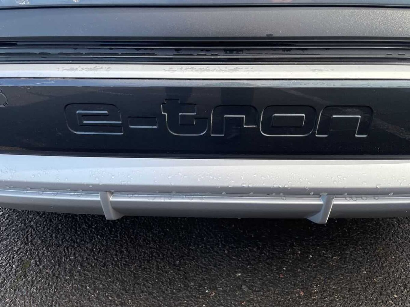 "Rear diffuser and grill in grained matt black with inlay in dark liquid chrome",