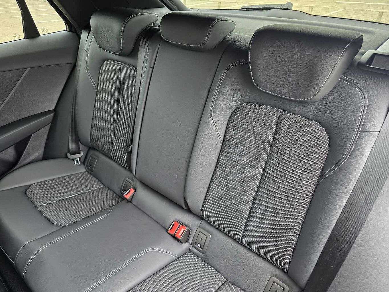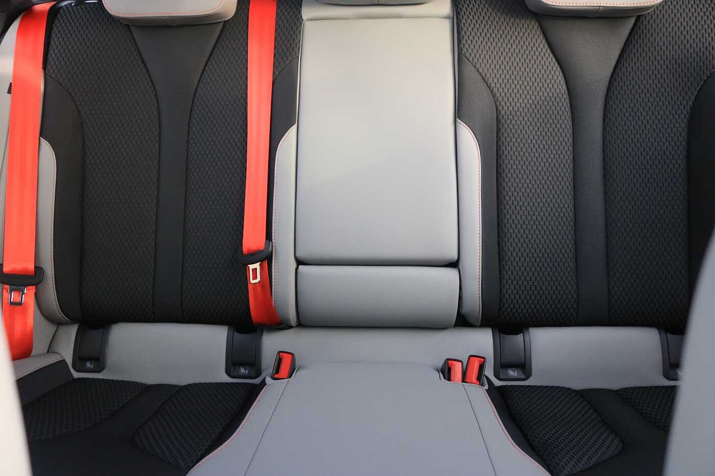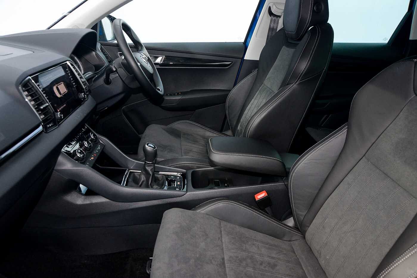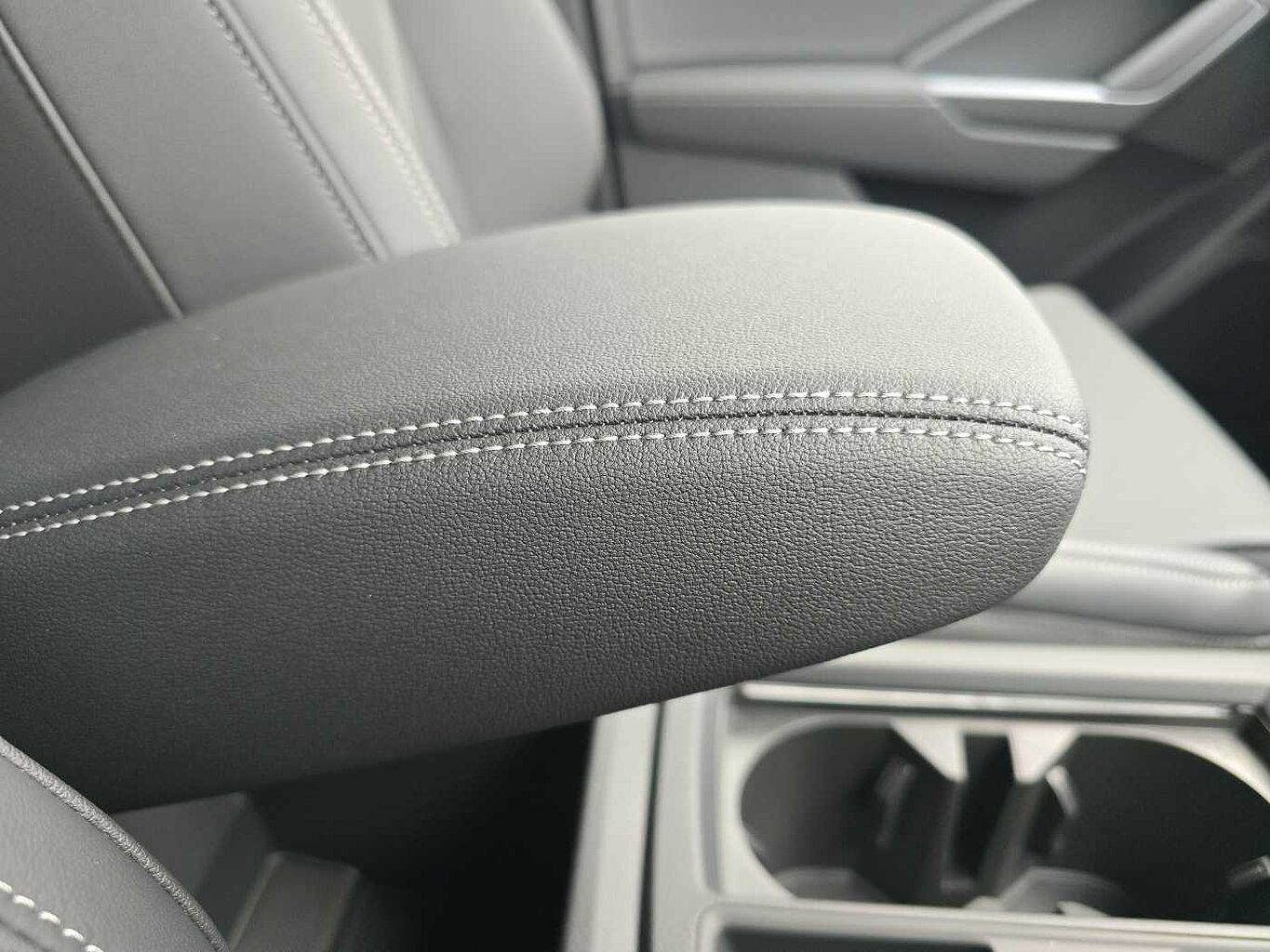 "Front and rear centre armrest in artificial leather with contrasting stitching on armrests and instrument panel",