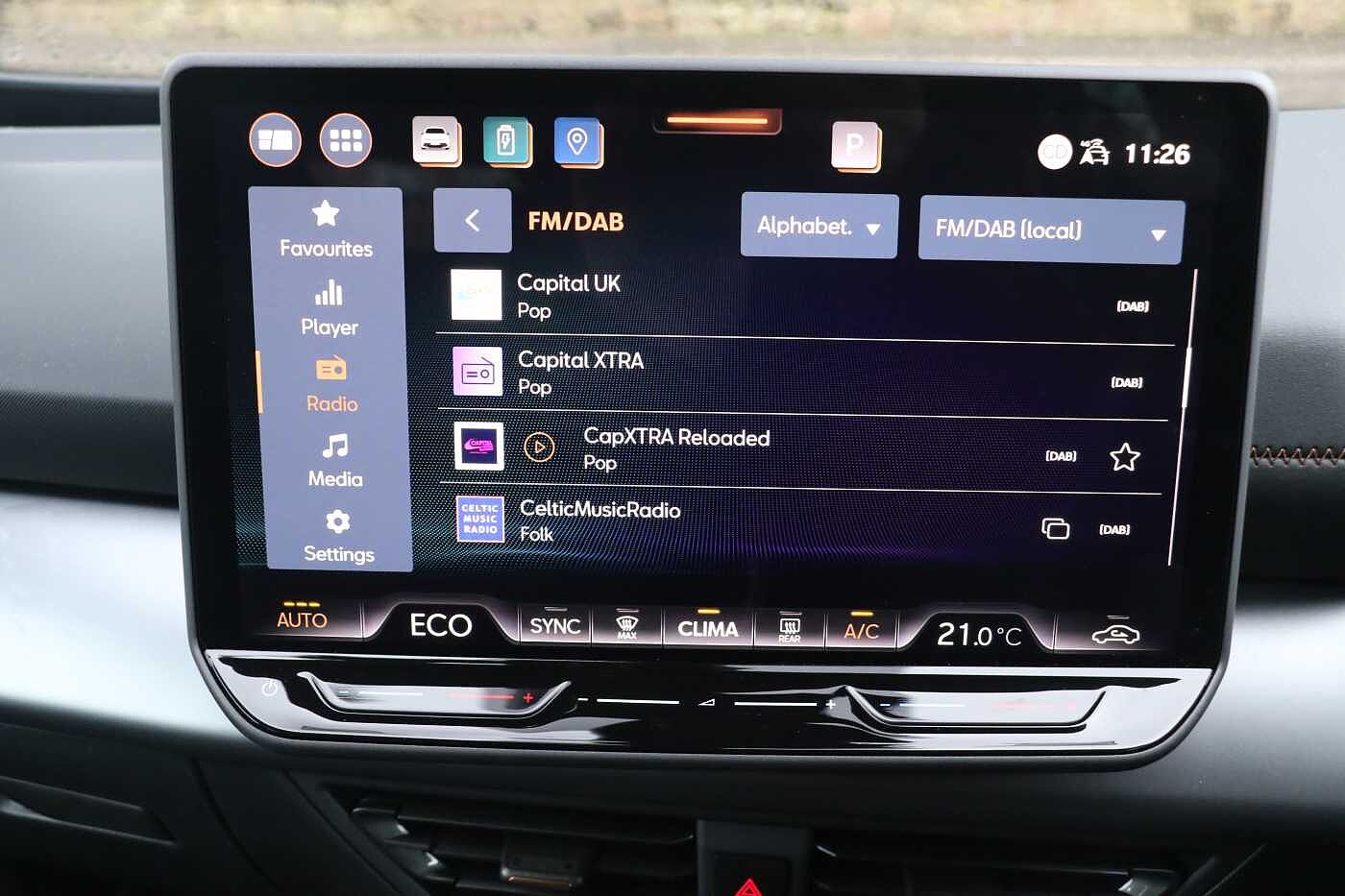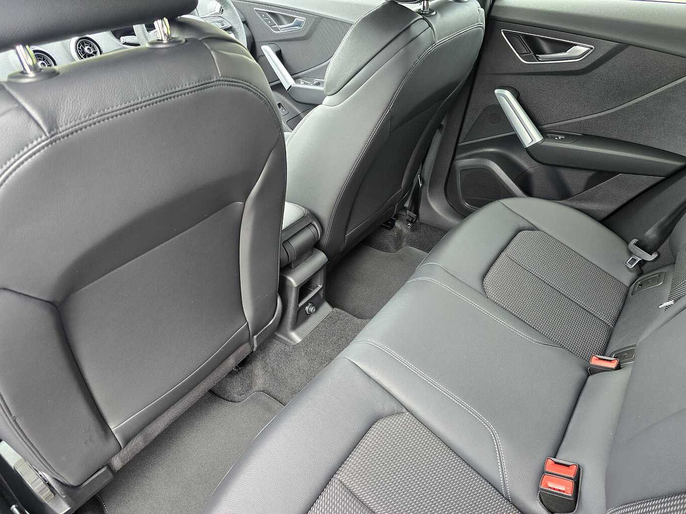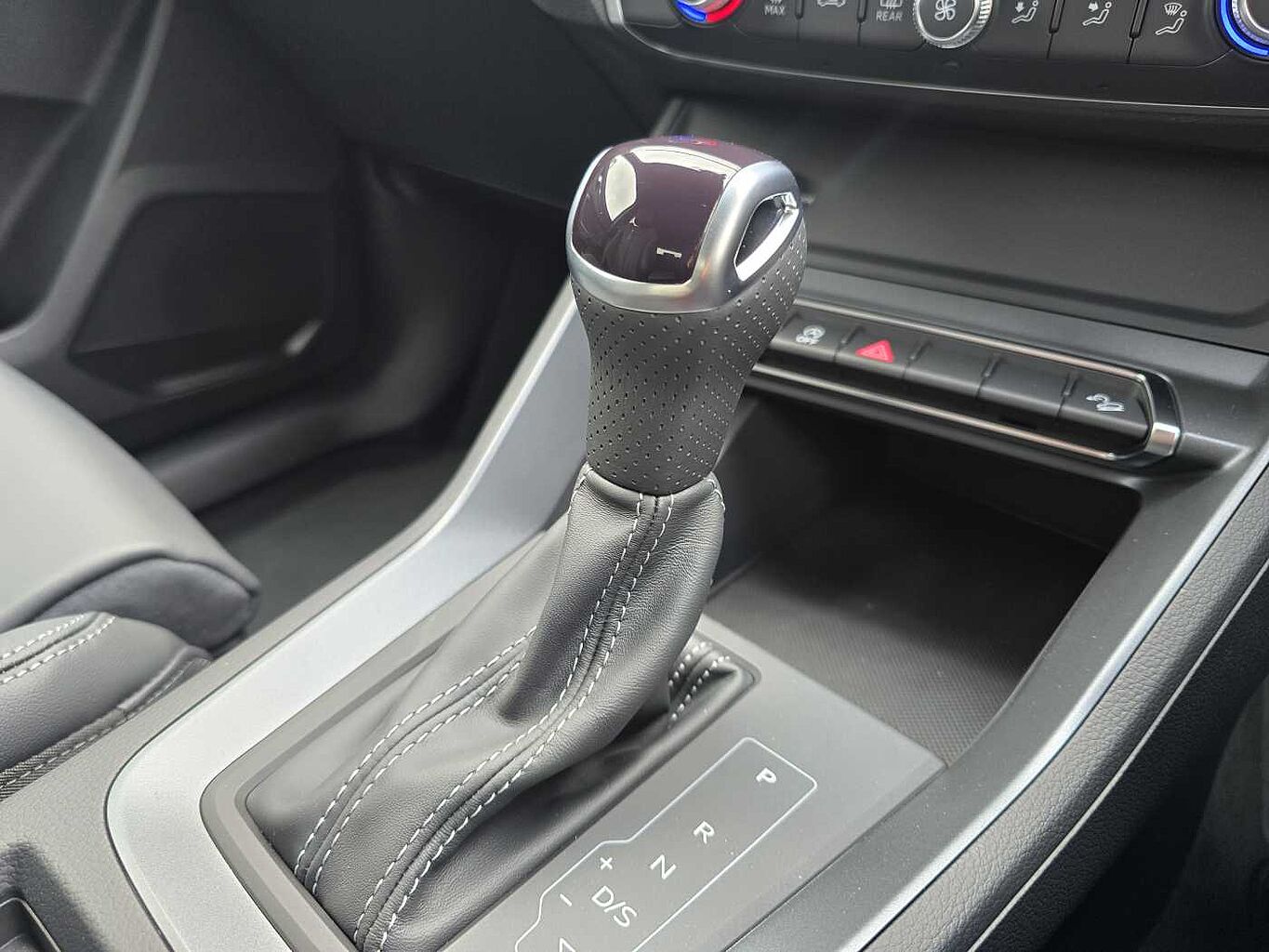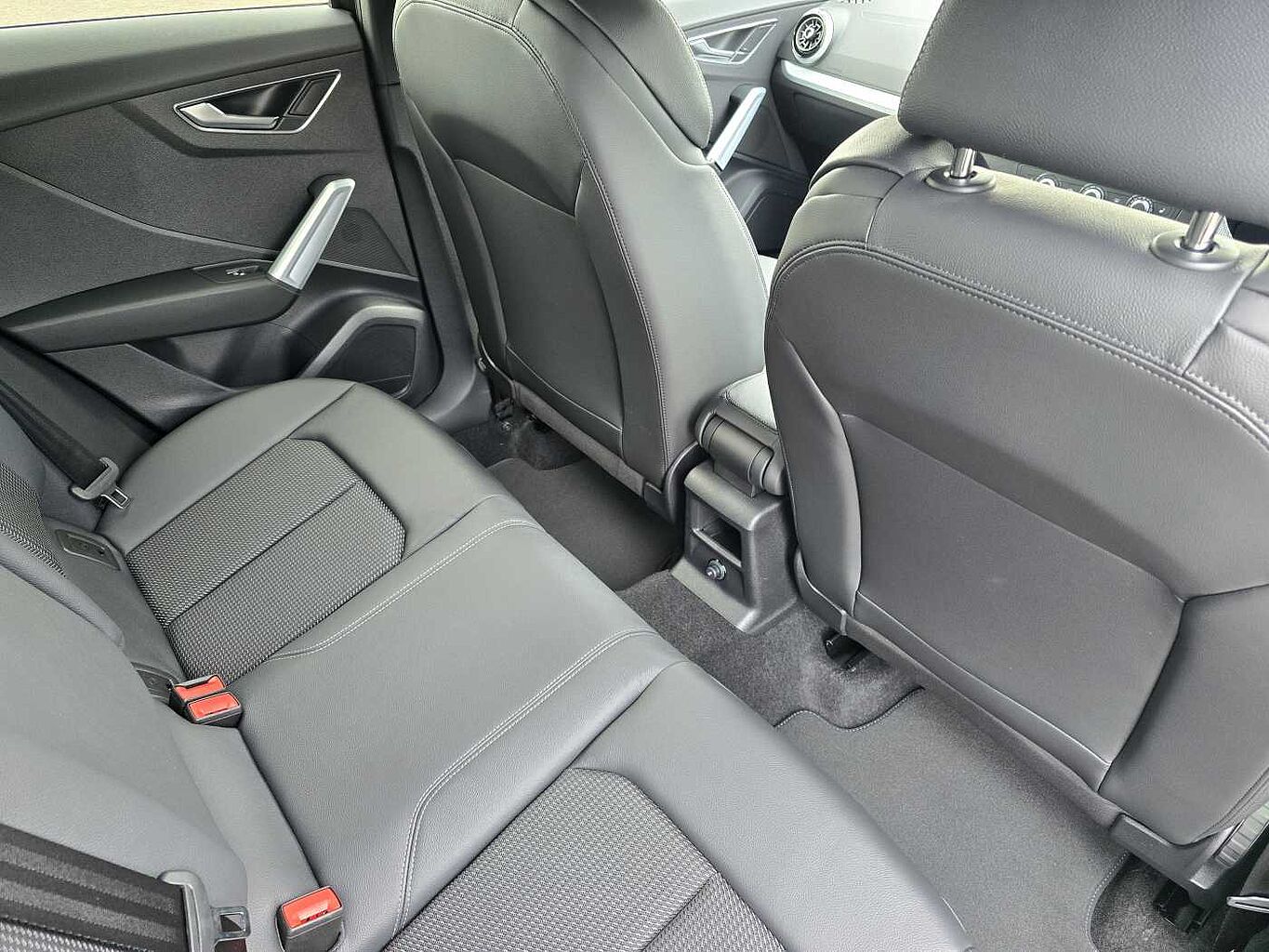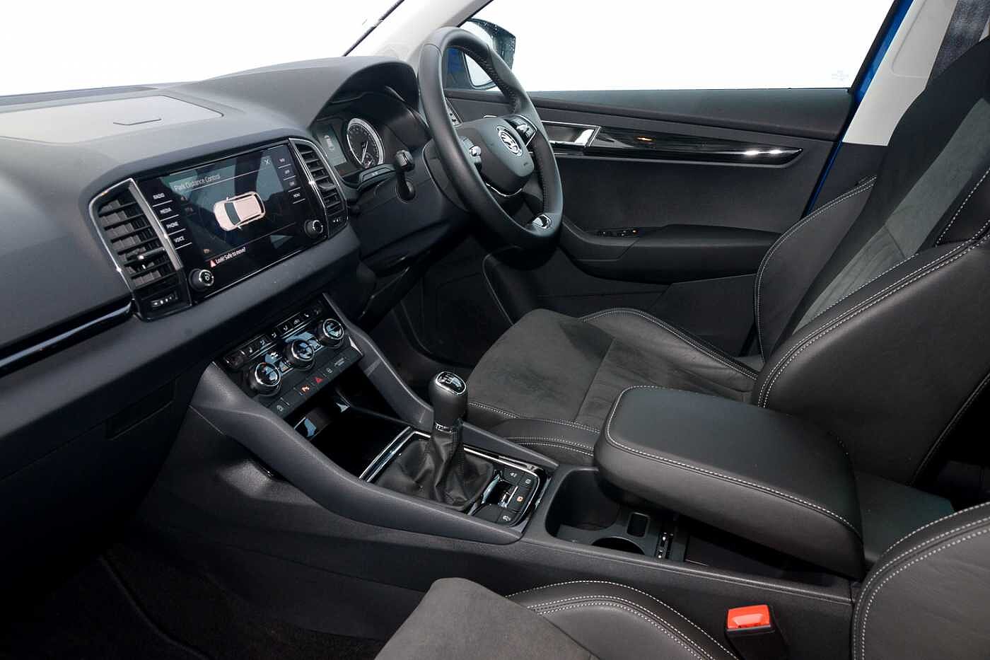 "Front and rear centre armrest in artificial leather with contrasting stitching on armrests and instrument panel",