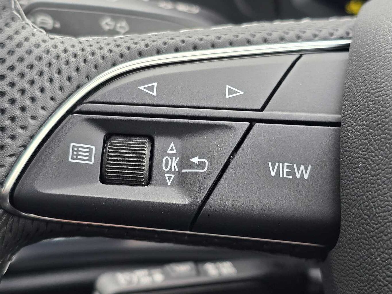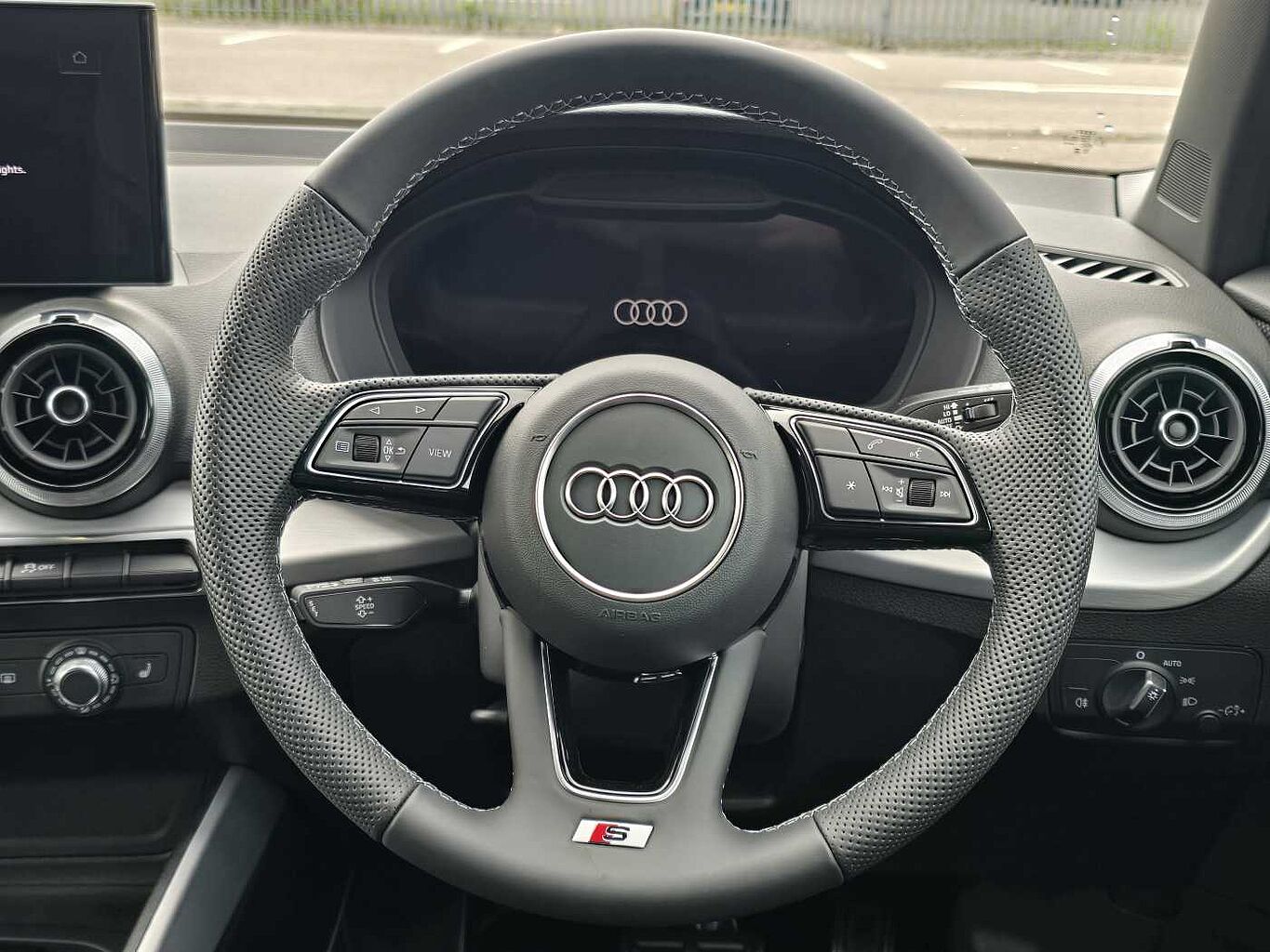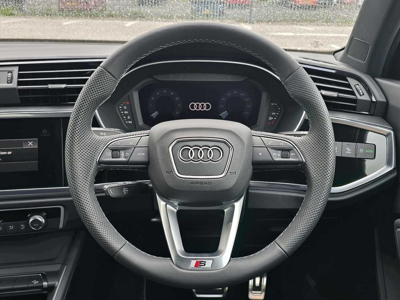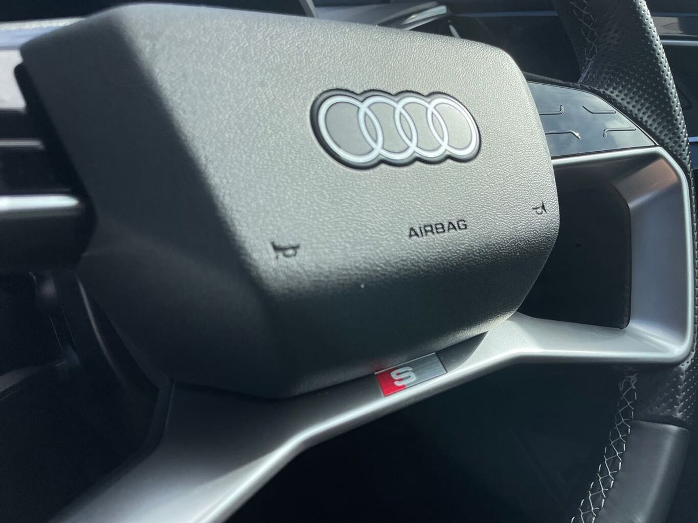 "S badging on the steering wheel",