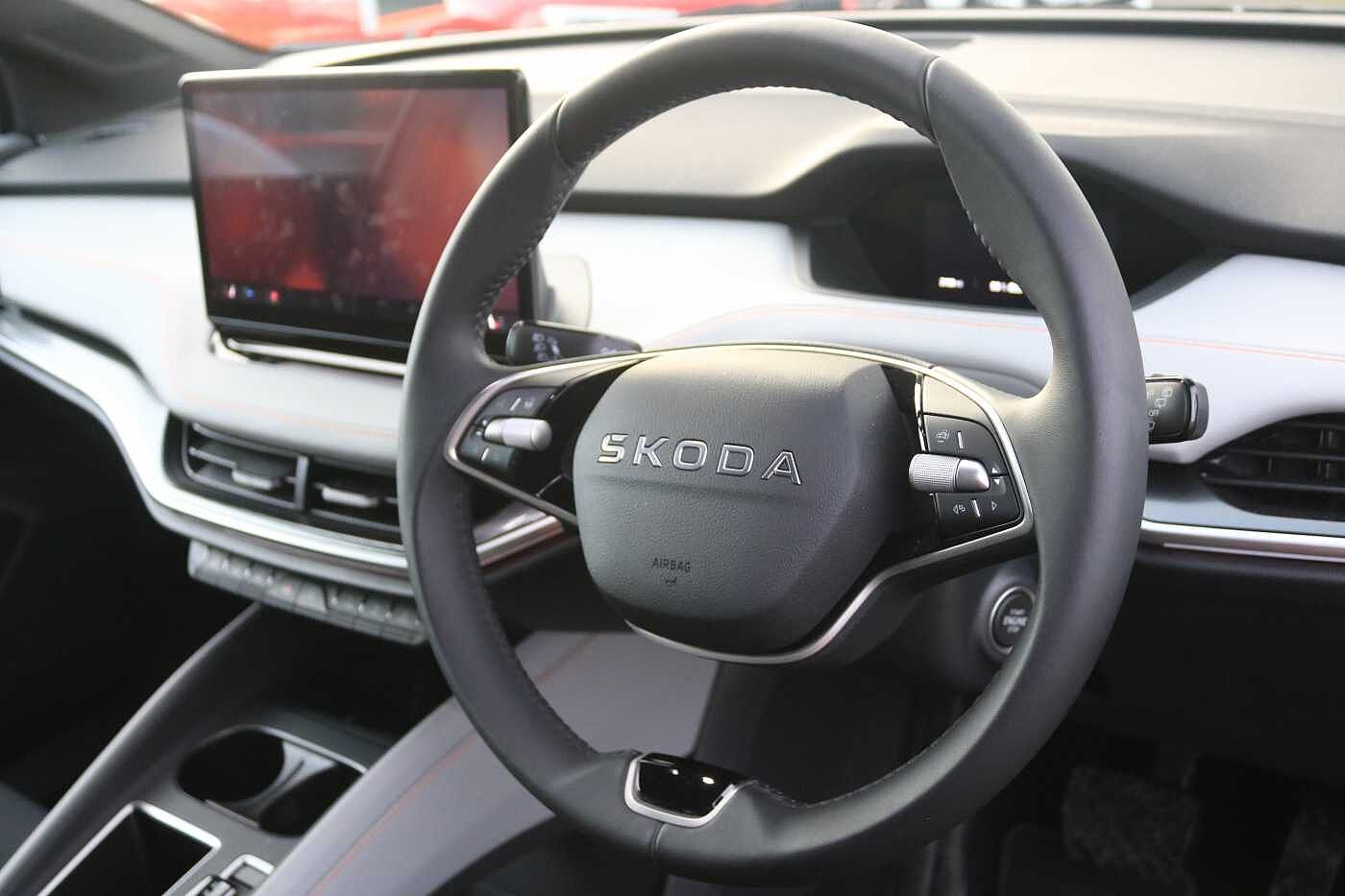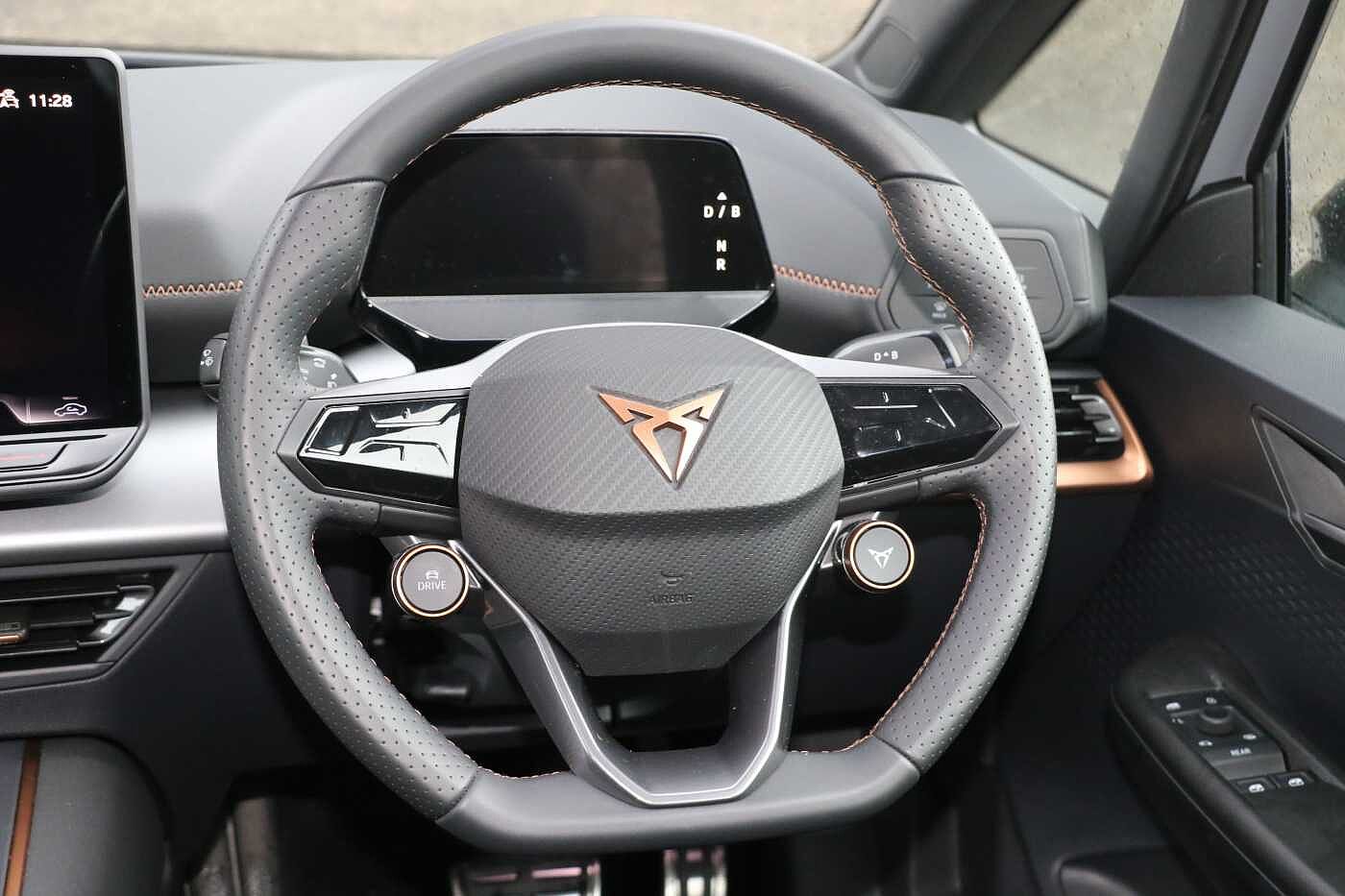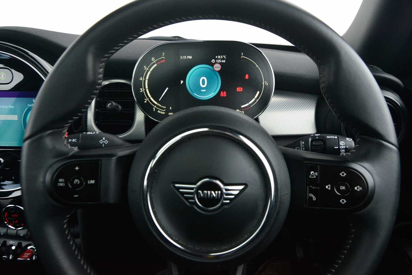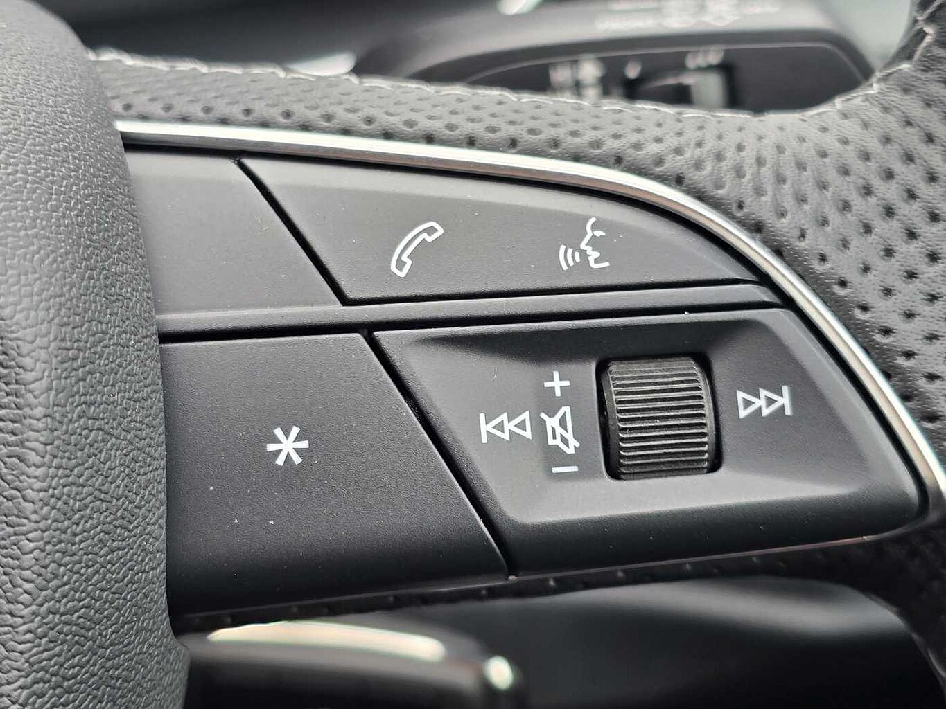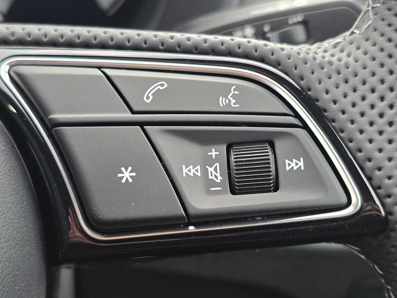 "S badging on the steering wheel",