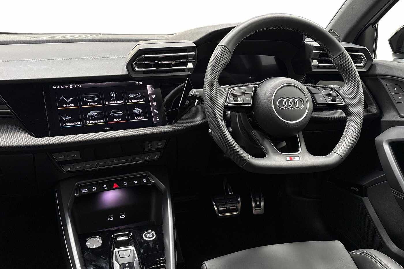 "features": "Adjustable speed limiter, Audi drive select, Audi smartphone interface with app store includes wireless Apple carplay, Android auto and Amazon alexa integration, Audi virtual cockpit plus - 12.3\" full HD resolution dynamic digital instrument cluster, Automatic start/stop system with recuperation, Bluetooth interface, Camera based traffic sign recognition, Collision avoidance assistant, Cruise control, Distraction and Fatigue warning, e-Call (emergency call), Electromechanical power speed sensitive steering, Lane departure warning system, MMI Navigation Plus with high resolution 10.1\" colour touch screen display, Park Assist with parking system Plus, Service indicator, Tailgate, Trip computer, Voice control system with natural language interaction, Sports suspension, Audi Phonebox light with wireless charging, Audi sound system - 10 loudspeakers including centre loudspeaker and subwoofer, DAB Digital radio, USB ports with charging function in the rear, Acoustic glass windscreen, Anthracite grey Audi rings (front and rear), Audi beam uses LEDs to project the Audi logo onto the ground as you exit your A3, Auto dimming frameless rear view mirror, Black accents front and rear bumpers, Black accents in the area of the Audi single frame grille, Black accents window trims strips, Electrically adjustable/heated/folding/auto dimming door mirrors with integrated LED indications + kerb view function for passenger side, Exterior model badging, Front electric windows, Heat insulating glass windscreen, Illuminated door sills with aluminium inserts at the front with S logo, LED 3rd brake light, LED daytime running lights, LED headlights with LED rear lights and dynamic rear indicators, Light and rain sensors, Privacy glass - dark tinted rear window, rear door and side windows, Rear electric windows, Rear side wing doors, Rear wiper, S roof spoiler, 12V socket and storage compartment in front centre console, 3 seat bench in 2nd row, 3 spoke flat bottomed leather multifunction sport steering wheel with gear shift paddles, 3-zone deluxe automatic air conditioning, 4 way electrically adjustable lumbar support for driver and front passenger, 40/20/40 split folding rear seat bench, Black cloth headlining, Front and rear centre armrest in artificial leather, Front and rear centre armrest in artificial leather with contrasting stitching on armrests and instrument panel, Front and rear headrests, Front/rear floor mats, Heated front seats, Height and reach adjustable steering wheel, Manual boot compartment lid, Manually adjustable front seats, Rear cup holders, S badging on the steering wheel, Seat side bolsters, Single front passenger seat, Stainless steel pedals and front footrest in black, Twin leather upholstery with front sports seats S embossed logo, Aluminium interior elements pack - A3 Sportback, Multi-coloured LED interior lighting package - A3 Black Edition, 3x3 point rear seat belts, Driver and front passenger airbag with passenger airbag deactivation, Electronic Stabilisation Control (ESC) including ABS, ASR and EDL, First aid kit with warning triangle and 2 safety vests, Front side airbags with head airbags and interaction airbag, Hill hold assist, Pre-sense front with pedestrian and cyclist detection, Seatbelt monitoring, Tyre pressure loss indicator, Anti theft alarm, Anti-theft wheel bolts, Electronically operated child locks, Immobiliser, Remote central locking with safelock, Inlays in black Impressum woven textile, ",