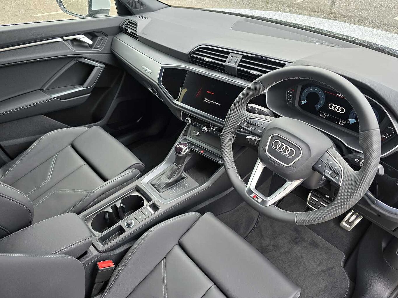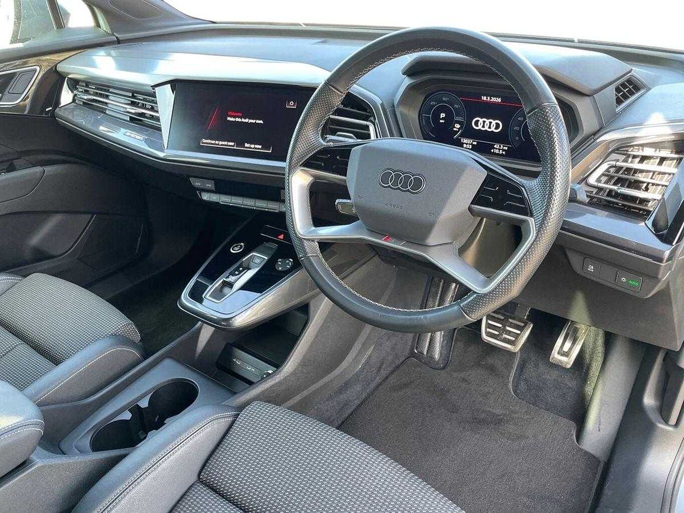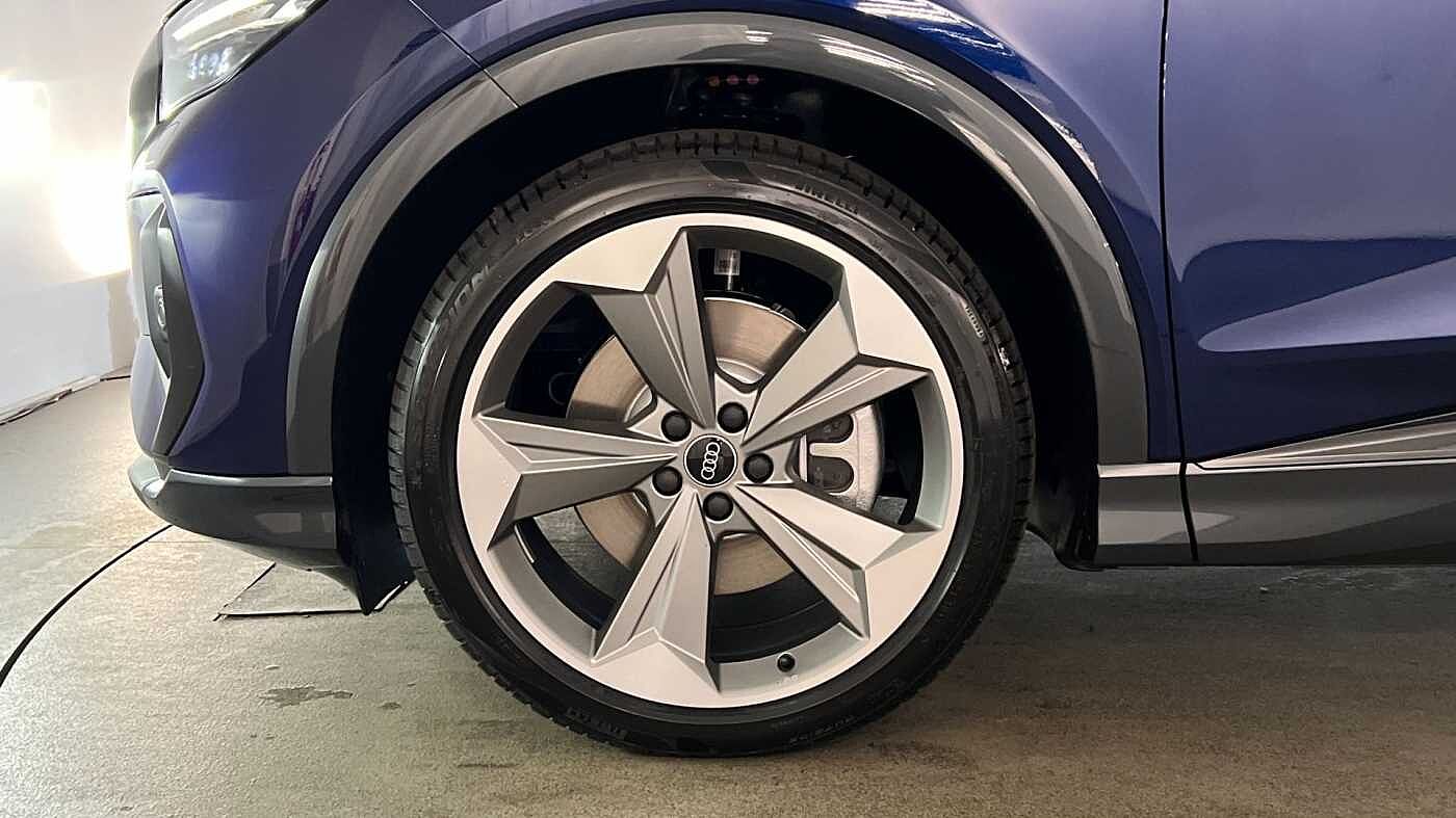 "features": "Adaptive cruise control with speed limiter, Advanced driver attention and drowsiness monitor, Audi application store, Audi connect safety and service (e-call), Audi drive select, Audi side assist with exit warning and rear cross traffic assist, Audi smartphone interface, Audi Virtual Cockpit - 10.25\" display, Bluetooth interface, Camera based traffic sign recognition, Lane departure warning including emergency assist, MMI Navigation Plus with high resolution 11.6 inch touchscreen colour display, Power operated tailgate with sensor controlled release, Progressive steering, Rear view camera, Swerve assist and turn assist, 11KW onboard charger, 175kW DC charging capability, AC and DC charging access point positioned on driver's side rear, Control unit with household plug and charging cable, Mode 2, Type 2 / G (10A), Mode 3 type 2 AC charging cable 22kW, Sport suspension, 2 USB-C ports with charge and data functions, Audi sound system with 8 loudspeakers incl. centre speaker, subwoofer and 6-channel amplifier with total output of 180 watts, DAB Digital radio, Audi rings and model badging in black (with powertrain designation removed), Black roof rails, Contrast bumpers in Manhattan grey, Electrically adjustable/heated/folding/auto dimming door mirrors with integrated LED indications + kerb view function for passenger side, Frameless auto dimming interior rear view mirror, Heat insulating glass windscreen, Heated rear window, LED 3rd brake light, LED daytime running lights, LED Headlights, LED rear lights, Privacy glass - dark-tinted rear window, rear door windows and rear side windows, Projection light in the exterior mirrors, e-tron logo projected from the underside of the exterior mirror onto the ground, Rear side wing doors, Rear wiper, S Line badges on the front wings, S line exterior styling, Single frame grille with a structured, closed surface within an octagonal shape, 3 seat bench in 2nd row, 3 zone automatic air conditioning, 4 way electric lumbar support for driver and front passenger, 40/20/40 split folding rear seat bench, Accent surfaces in gloss black - centre console control panel, switch panel and trim on front doors in gloss black, Black carpets, Black cloth headlining, Comfort auxiliary air conditioning, Door armrests in leatherette, Flat top and bottomed twin-spoke leather multifunction sport steering wheel with shift paddles for recuperation, Front centre armrest, Front door sill trims with aluminium inlay, illuminated with S logo, Front sport seats with integrated head reastrains, Front/rear floor mats, Heated front seats, Pedals in stainless steel, Rear centre armrest with cupholders, Rear head restraints, Single front passenger seat, Ambient lighting plus pack - Q4 E-tron, Black styling pack plus - Q4 E-tron, Non smoking pack - Q4 E-tron, 3x3 point rear seatbelts, Acoustic vehicle alerting system, Audi pre sense basic and rear, Convenience key with safelock, Driver and front passenger airbag with passenger airbag deactivation, Electric child locks, First aid kit with warning triangle and vests, Front side airbags with head airbag system and front interaction airbag, i - Size child seat mounting on the front passenger side and i - Size and top tether on the outer rear seats, Pre-sense front with pedestrian and cyclist detection, Rear seat occupant reminder for child presence detection, Seat belt monitoring, Tyre pressure loss indicator, Anti theft alarm, Anti-theft wheel bolts, Keyless Go, Aluminium look interior elements, Black dashboard, Vehicle tool kit, ",