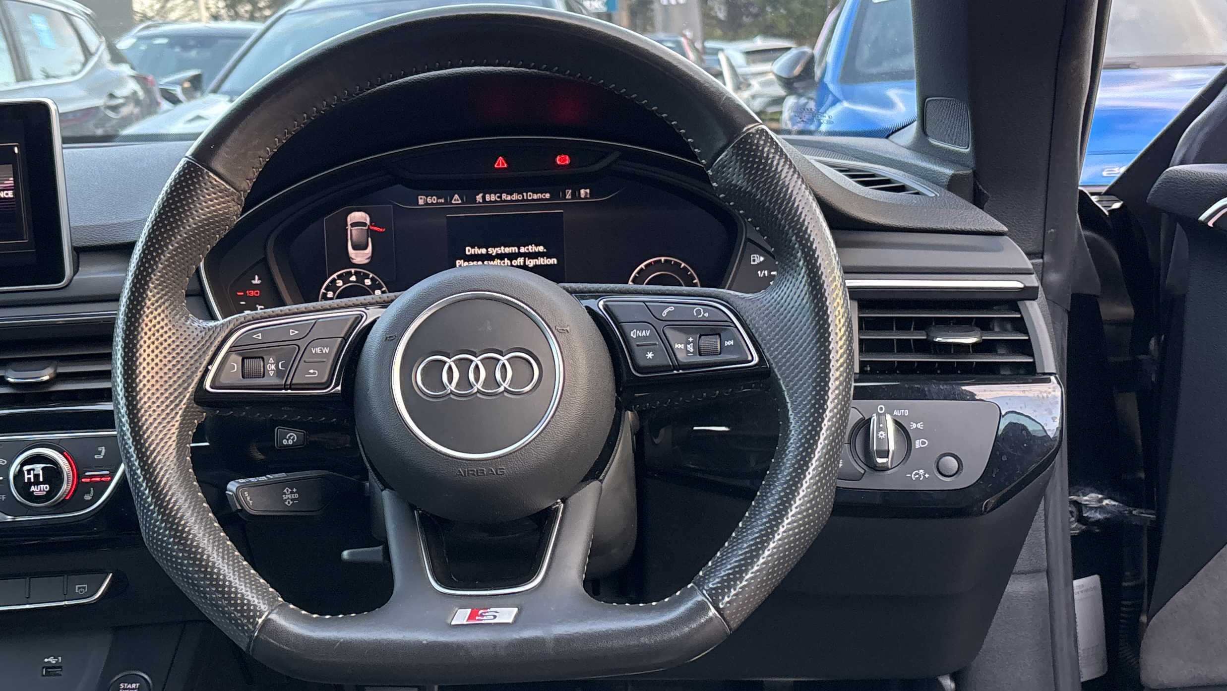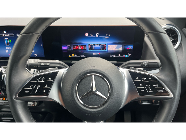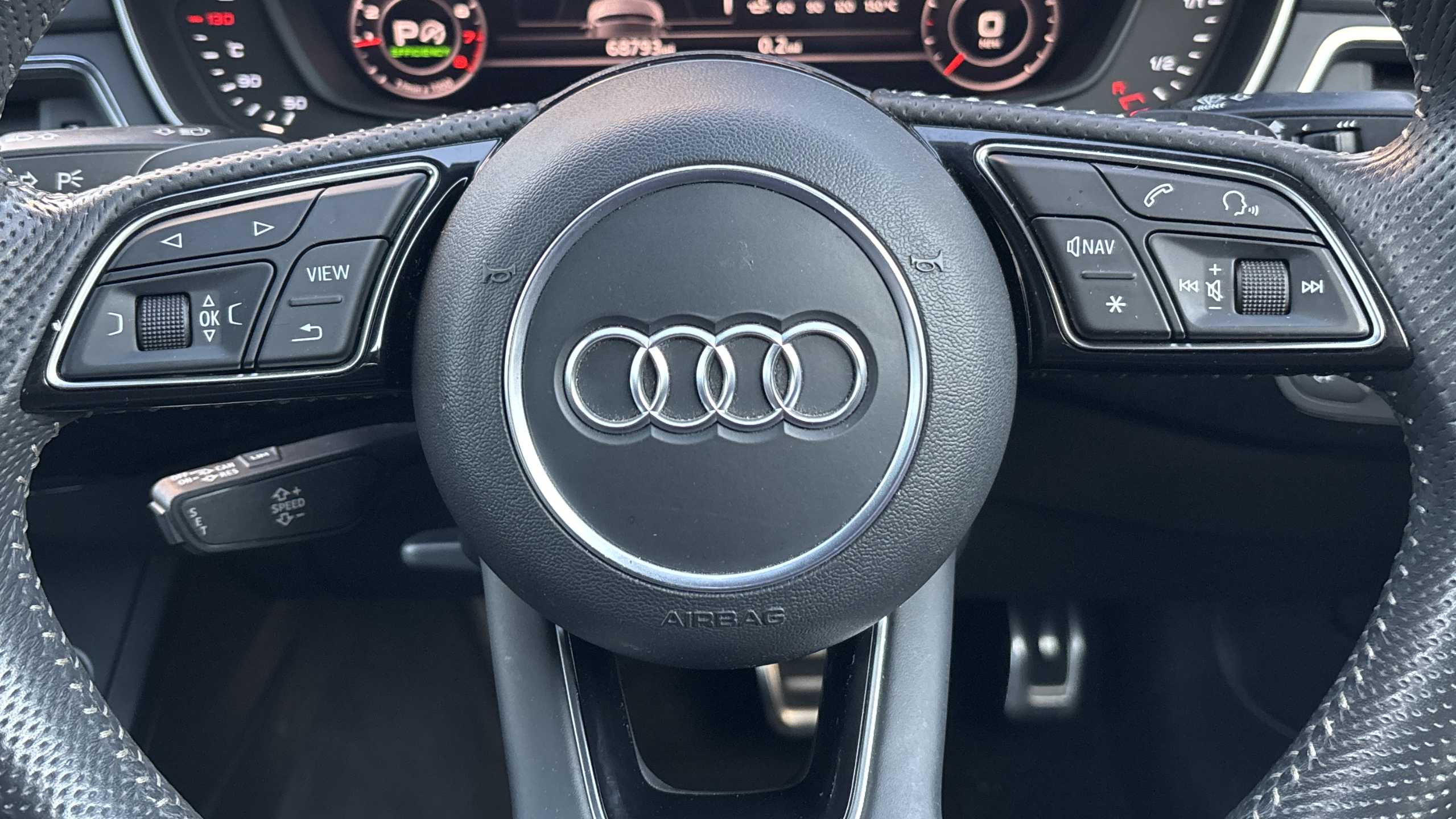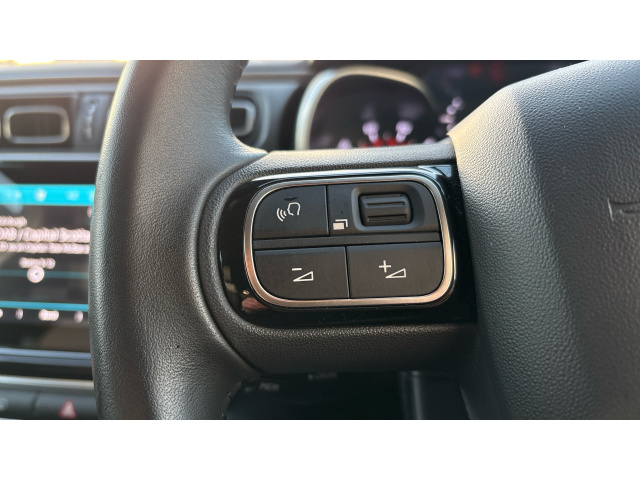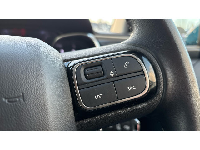 "Sport leather steering wheel with speed limiter and audio/communication controls",
