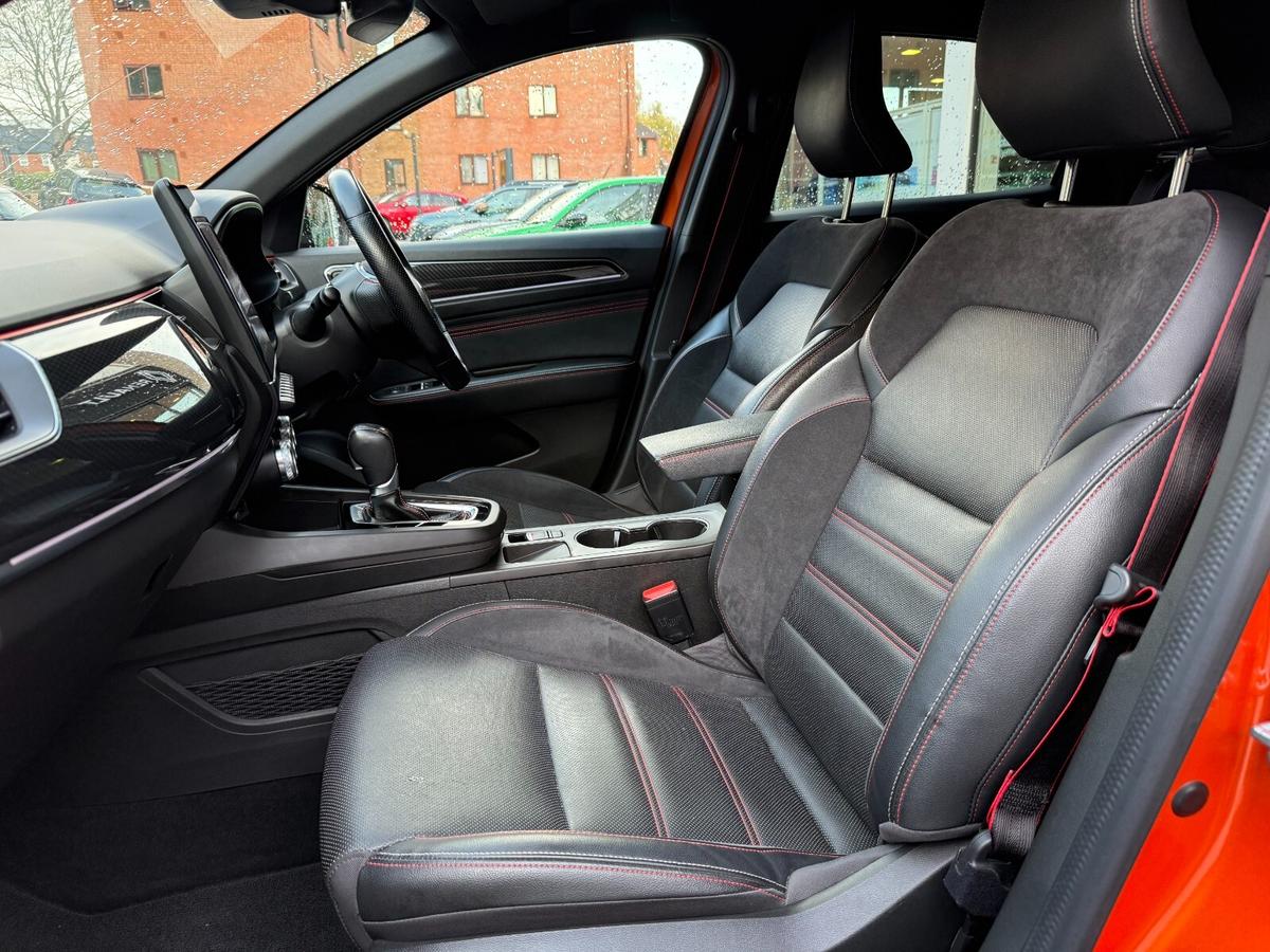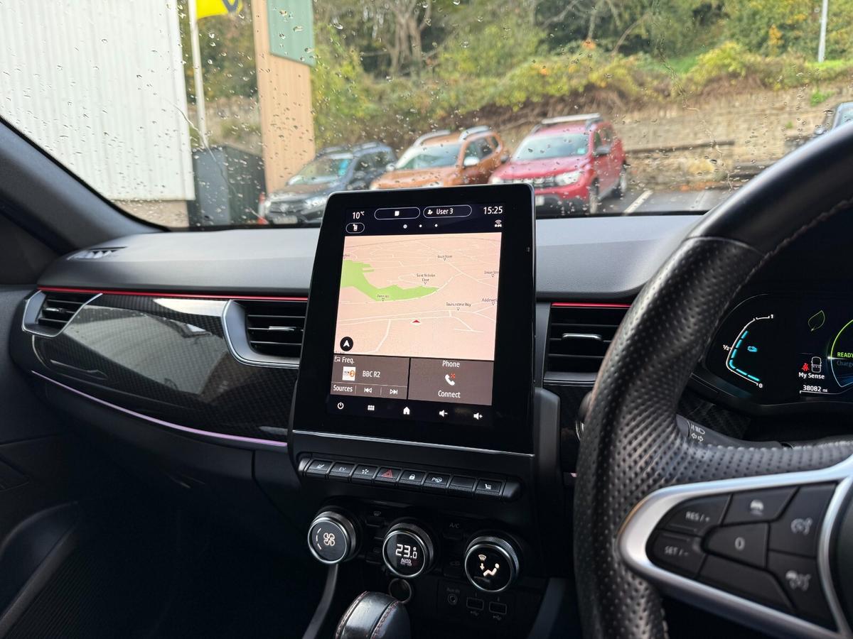 "features": "7\" TFT Driver information display, Adaptive cruise control and speed limiter, Blind spot warning, Bluetooth system, EASY LINK 9.3\" portrait touchscreen with navigation, Google search and traffic information, eCall emergency call system, Eco mode, EV button to activate pure mode, Front and rear parking sensors, Gear change indicator, Lane departure warning, Lane keep assist, Multi-sense - 3 driving modes and 8 ambient lighting, Rear cross traffic alert, Rear view camera, Renault automatic emergency assist, Smartphone integration compatible with Apple CarPlay and Android Auto, Traffic sign recognition with over speed prevention, Trip computer, Variable assistance electric power steering, Wireless phone charger, DAB radio, USB port, Auto dimming rear view mirror, Automatic headlights, Automatic high / low beam, Automatic windscreen wipers with rain sensor, Black side door protection with gun metal insert, Body coloured bumpers, C-shaped LED front signature lighting, Chrome decopart on wing (fender molding) with R.S. Line badge, Double chromed exhaust tailpipes elements, Extra tinted rear windows and tailgate, Frameless rear view mirror, Front and rear electric windows, Front bumper with F1 blade and honeycomb front grille, Front driver window with one touch facility and anti-pinch function, Front grille with chrome on upper part, Full LED headlights, Glossy black door mirror and lower window lining, Gun Metal front and rear skid plates, Heated rear window, R.S. Line badges on front wing and hatch door, Rear windscreen wiper, Shiny black shark fin antenna, Side mirrors adjustable electrically, electrically foldable, with defrosting and temperature sensor, automatically foldable at vehicle closure, 60:40 split and fixed base rear seats, Aluminium pedals, Automatic climate control with combined filter, humidity sensor and AQS, Black interior roof lining, Carbon style dashboard, Central console with storage, Driver's seat height adjustment, Electrically adjustable front seats, Front and rear head restraints, Height and reach adjustable steering wheel, ISOFIX child seat fixing points on rear outermost seats, Leather steering wheel, LED front and rear roof lights, Passenger seat height adjuster, R.S. line black suede-leather upholstery with red/grey stiching, R.S. Line perforated leather steering wheel with red/black harmony and R.S. Line badge, Rear air vents, Red inserts on air vents, Parking Pack - Hands-free parking & flank protection - Arkana, Winter pack - Arkana, 3x3 point rear seat belts, ABS+EBA, Active emergency braking system, B Brake Mode - One pedal driving with increased regenerative braking, Distance warning alert, Driver airbag, Driver and passenger front and side airbag deactivation, Driver and passenger side airbags, Driver height adjustable seat belt, Electronic parking brake with auto hold, ESC (Electronic Stability Control), Front and rear no seatbelt warning sound, Front curtain airbags, Front head airbags, Hill start assist, Passenger airbag, Tyre pressure warning light, Anti drill door locks and locking fuel cap, Central door locking, Deadlocking system, Hands free keycard with Keyless access and start, RAID (Renault Anti-Intruder Device) automatic door locking, Rear side wing door and window child locking function (front driver door control panel), Superlocking, Thatcham alarm, 18\" Silverstone diamond alloy wheels with red inserts, ",