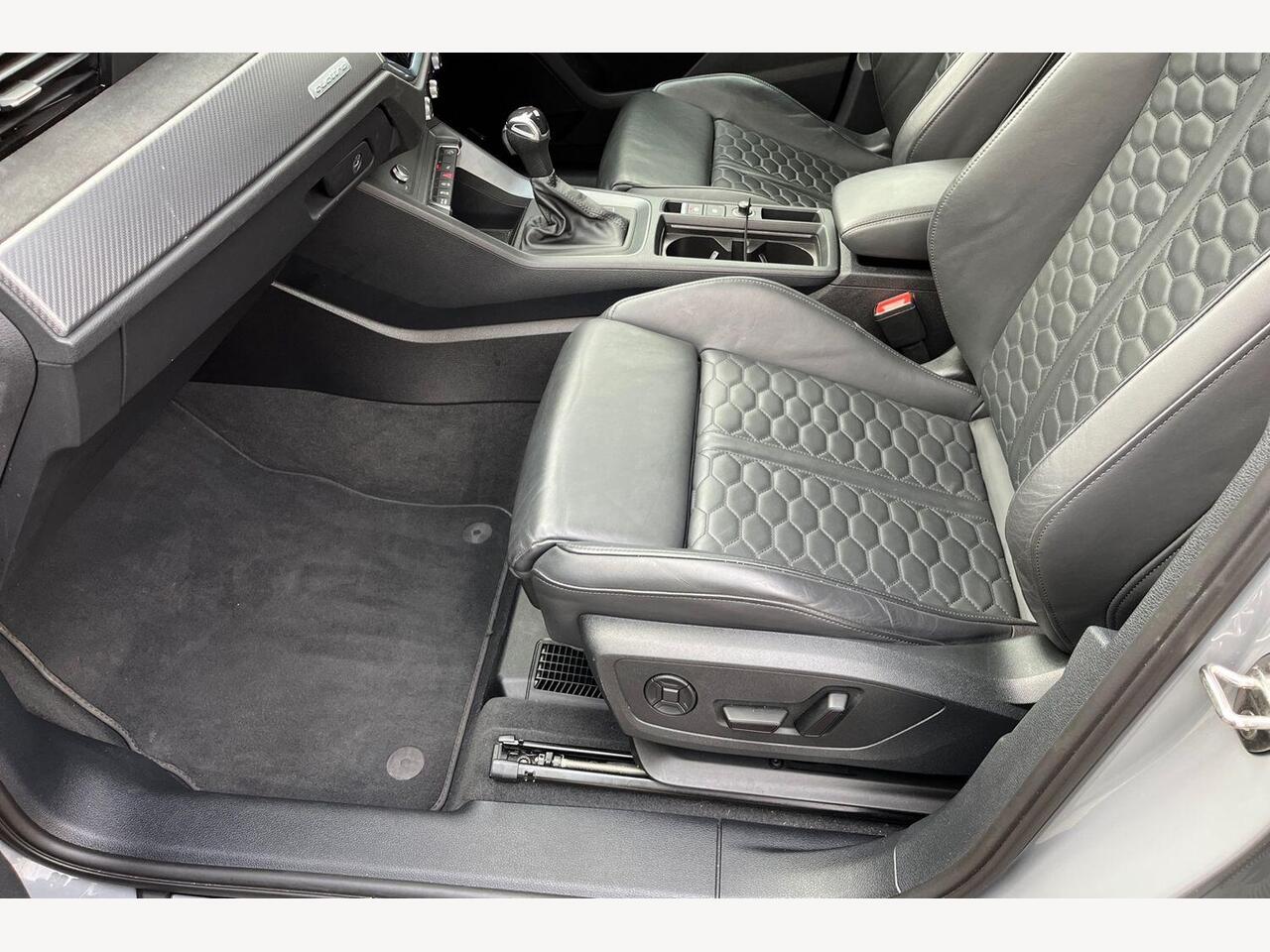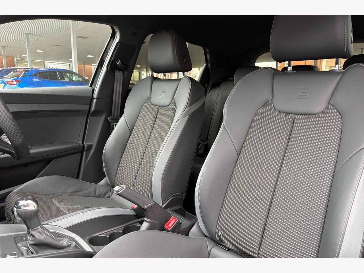 "Twin leather upholstery with front sports seats S embossed logo"