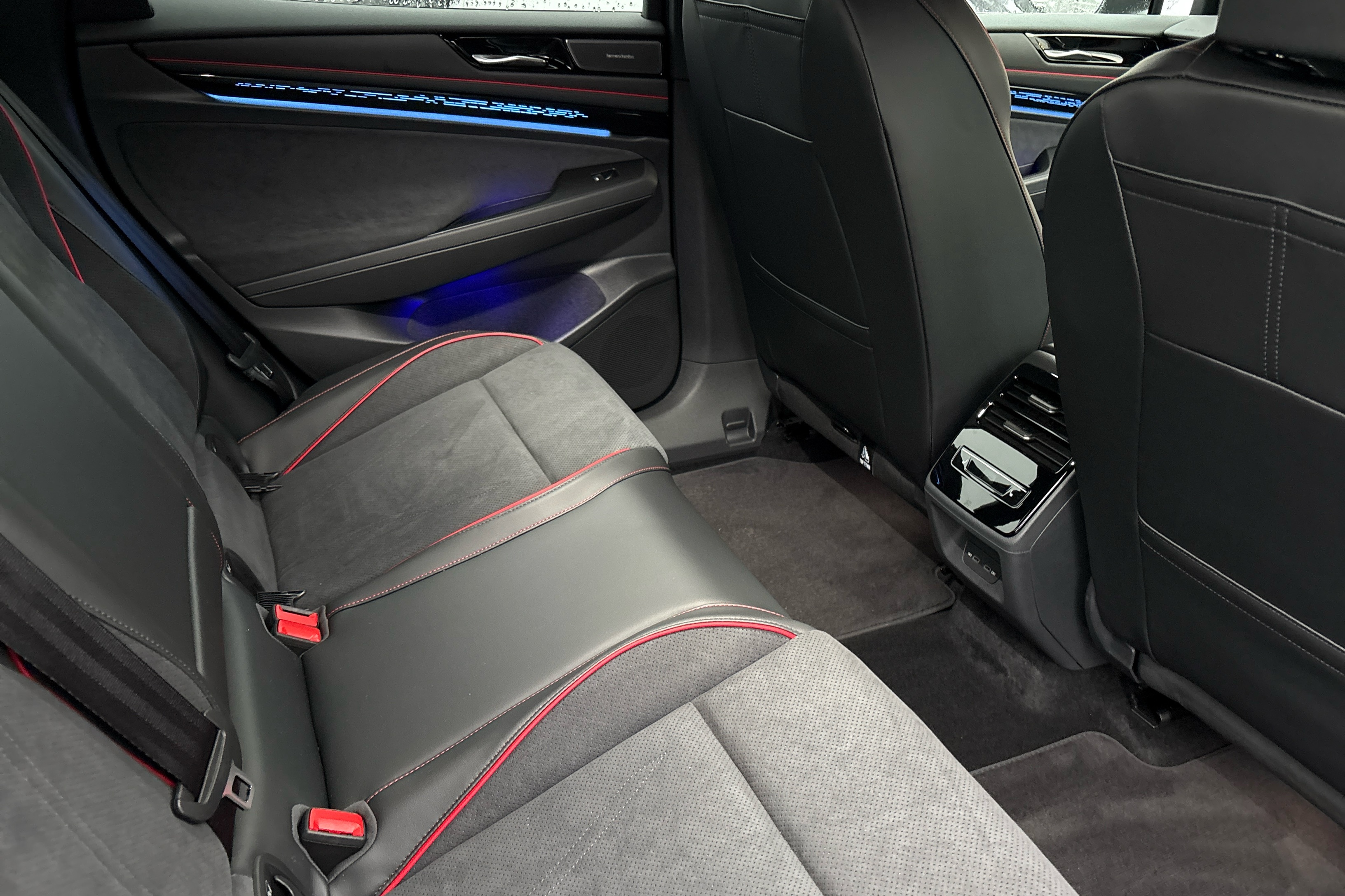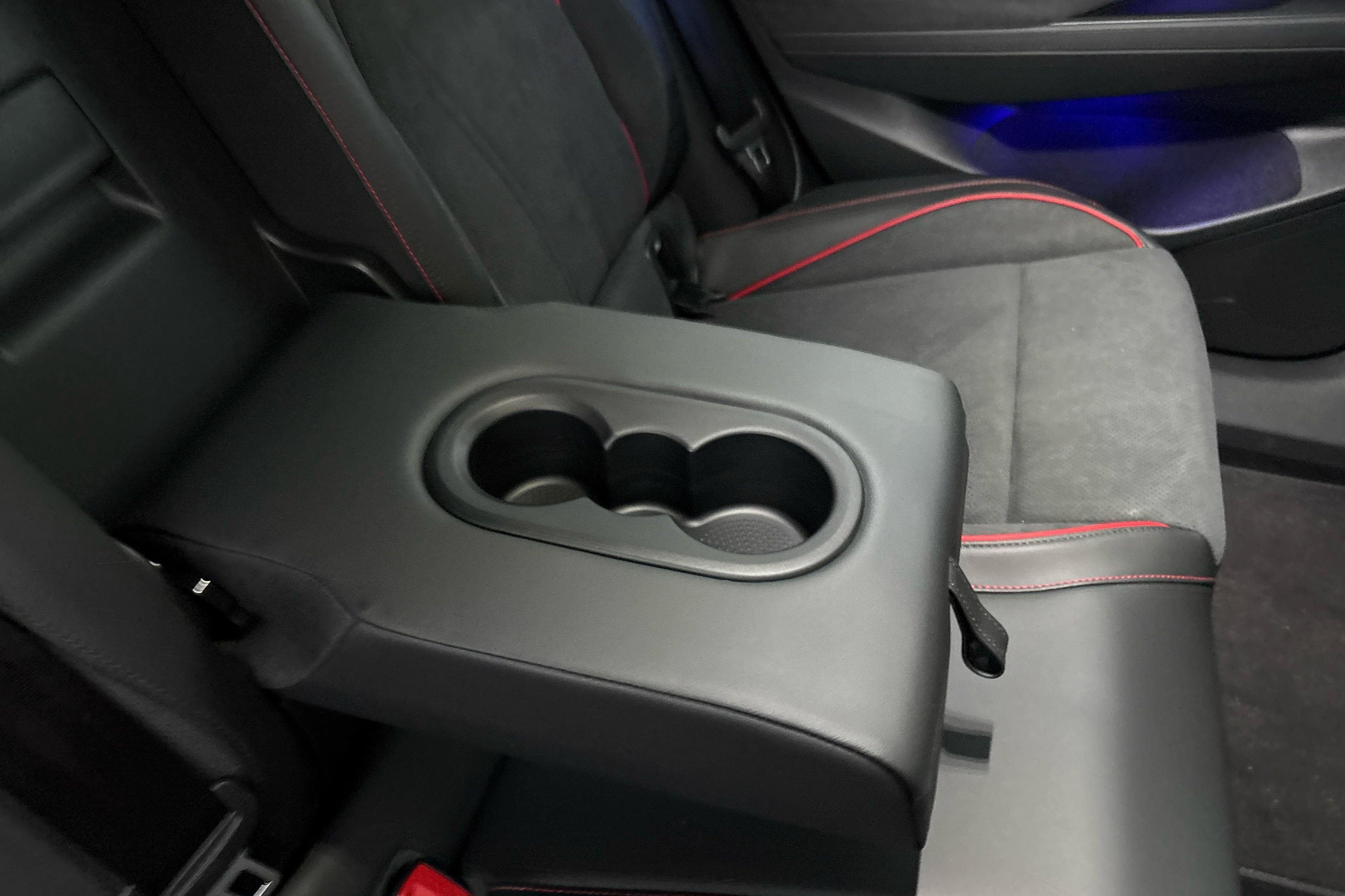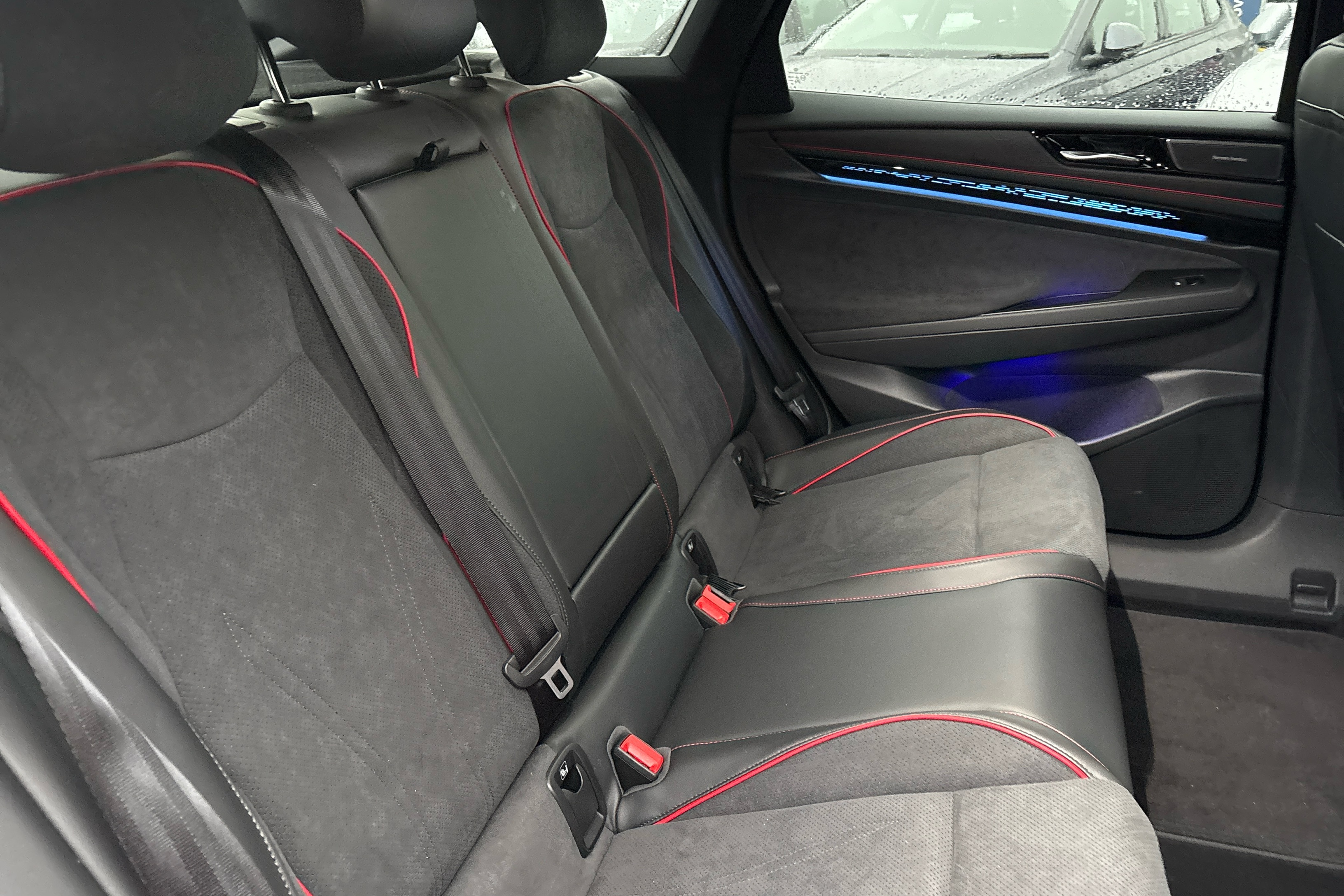 "Red decorative strip between rear LED lights",