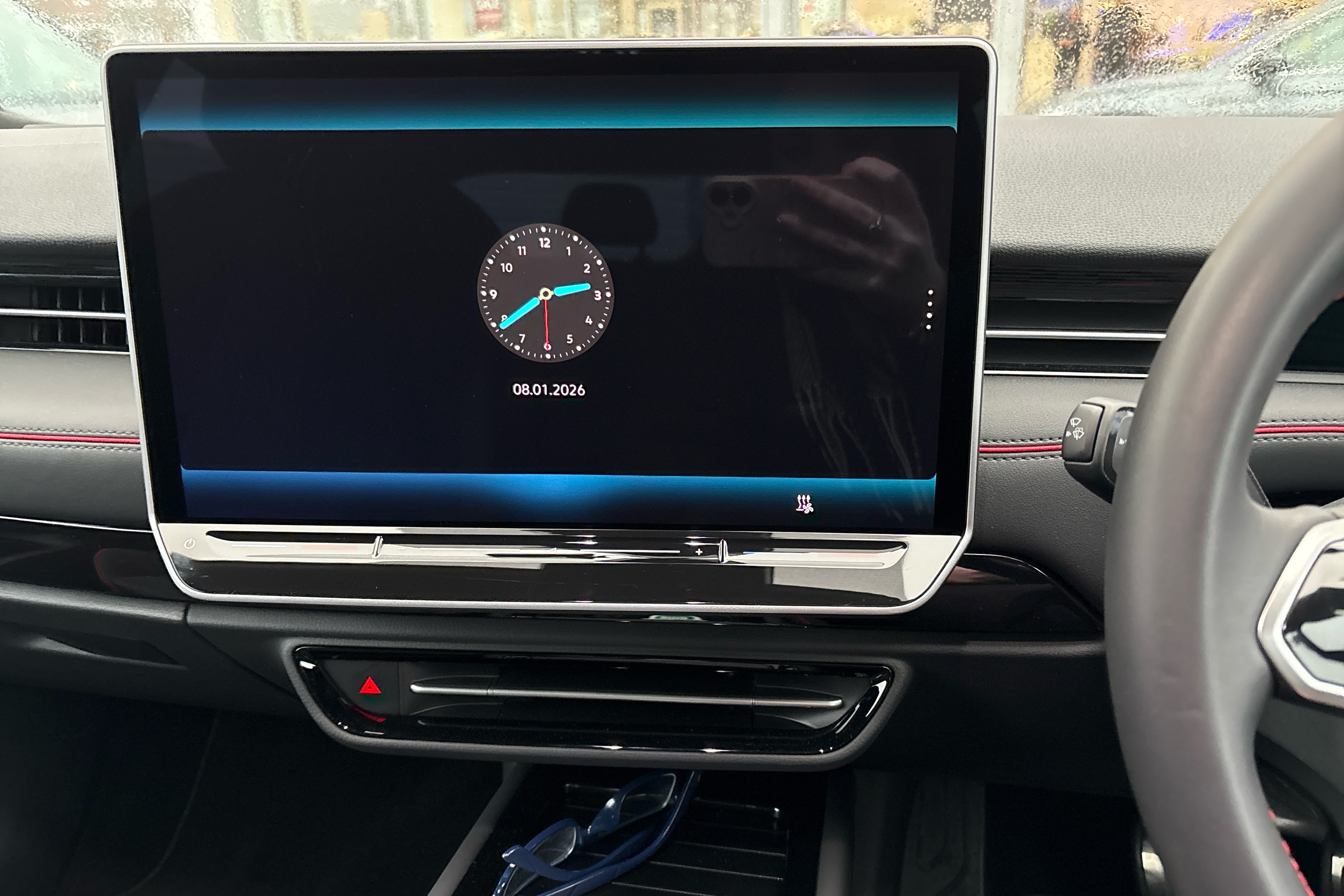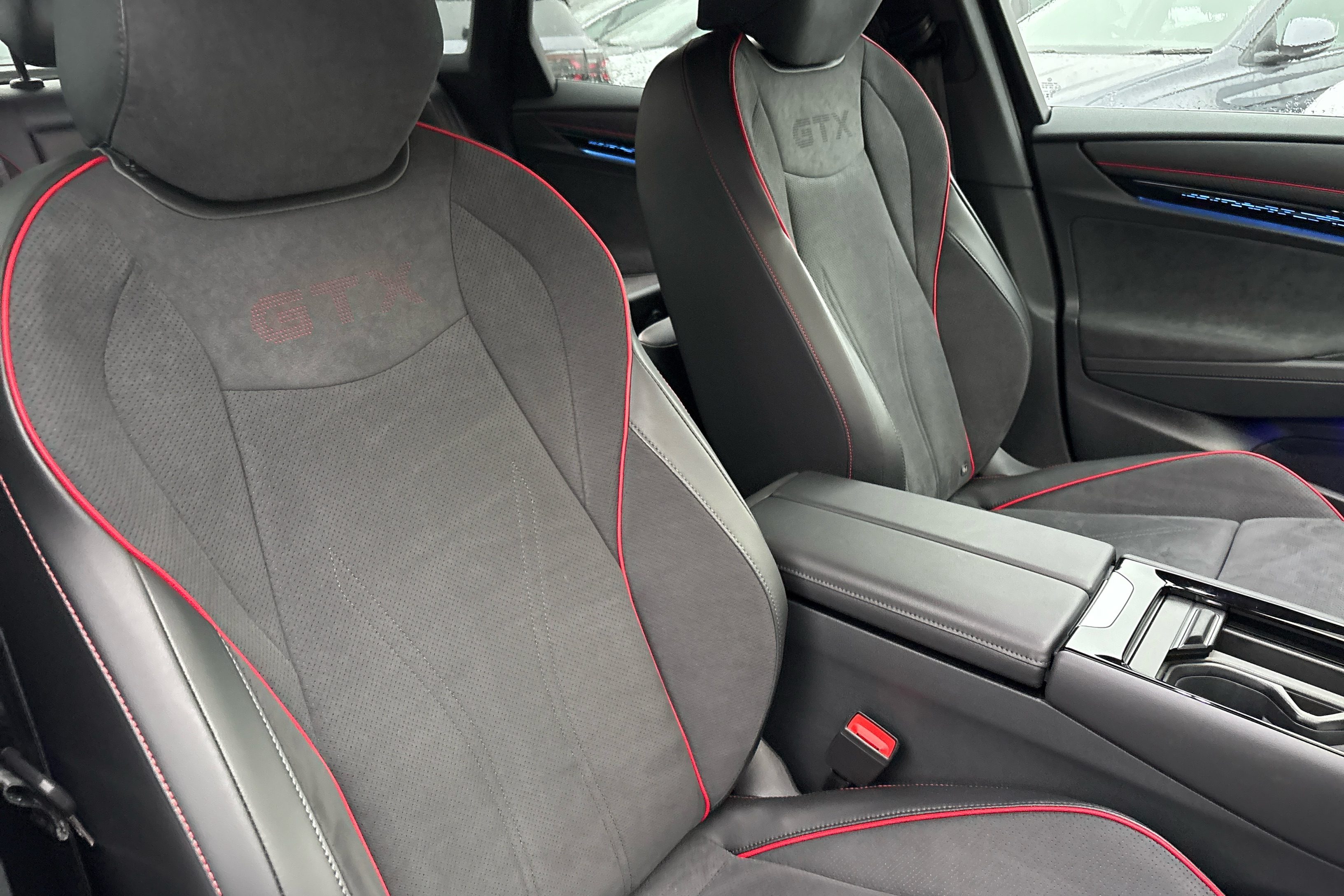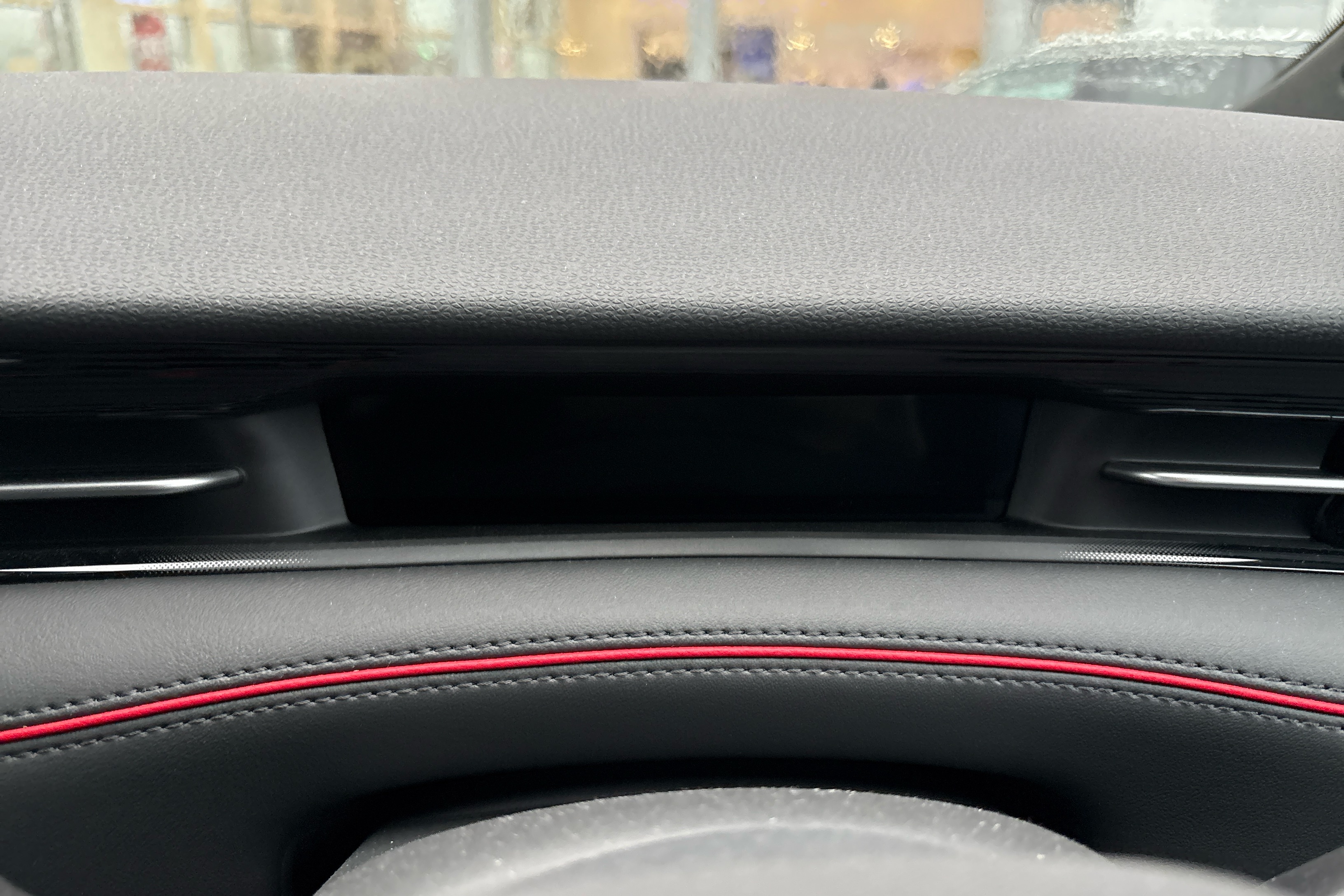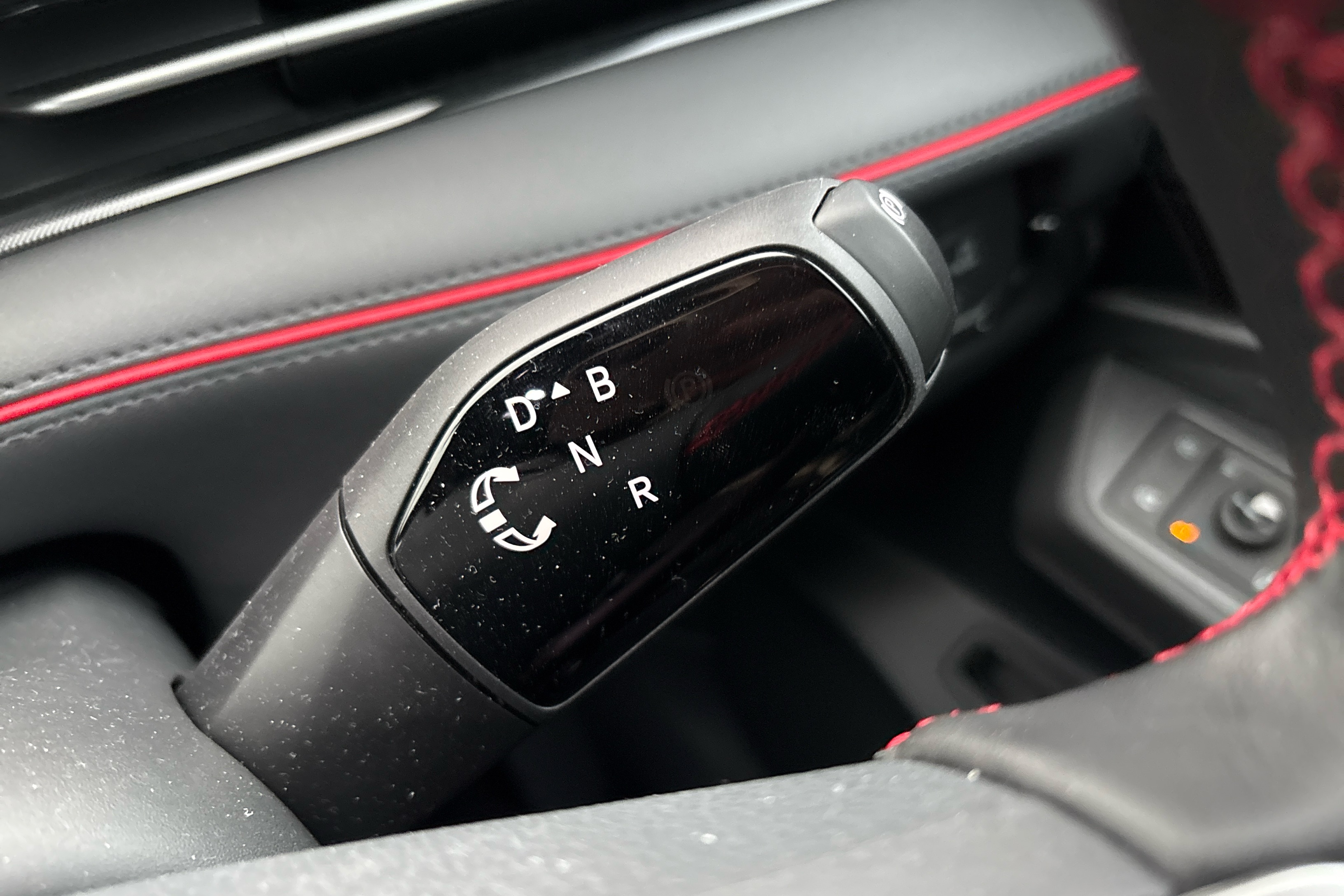 "Red decorative strip between rear LED lights",