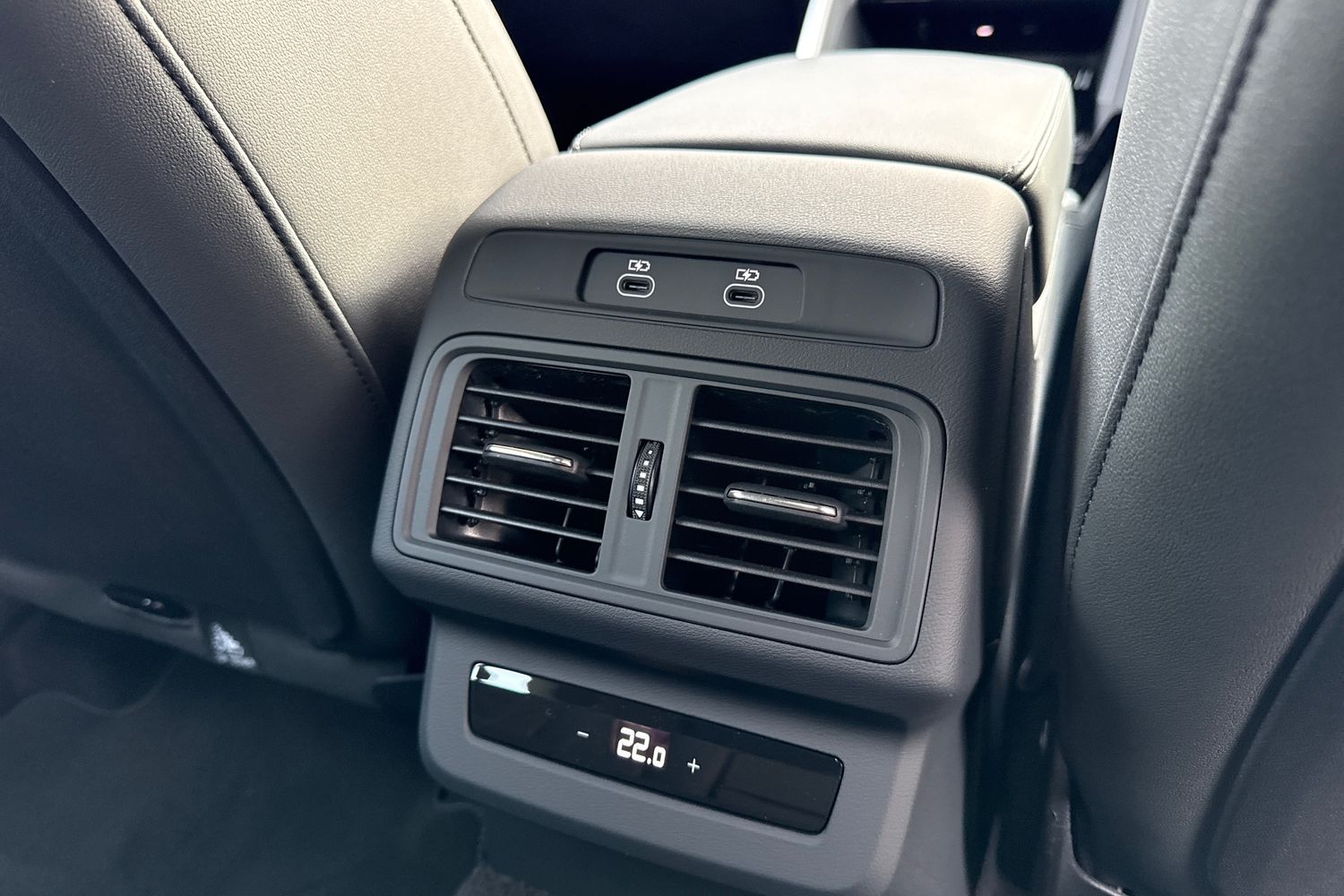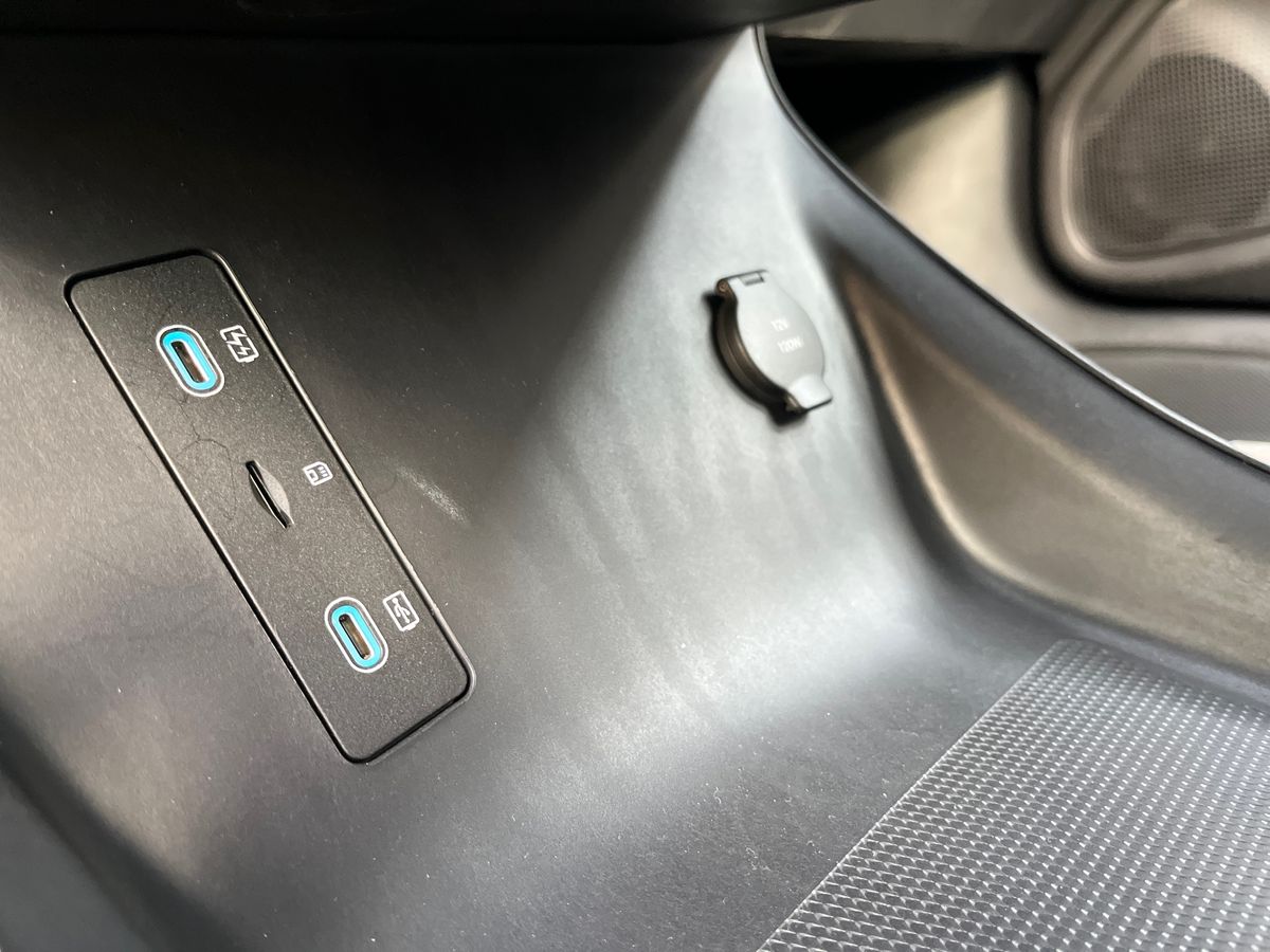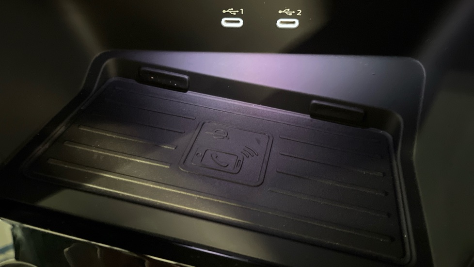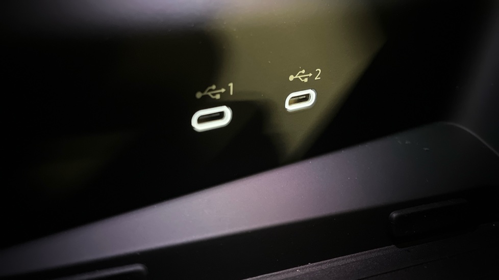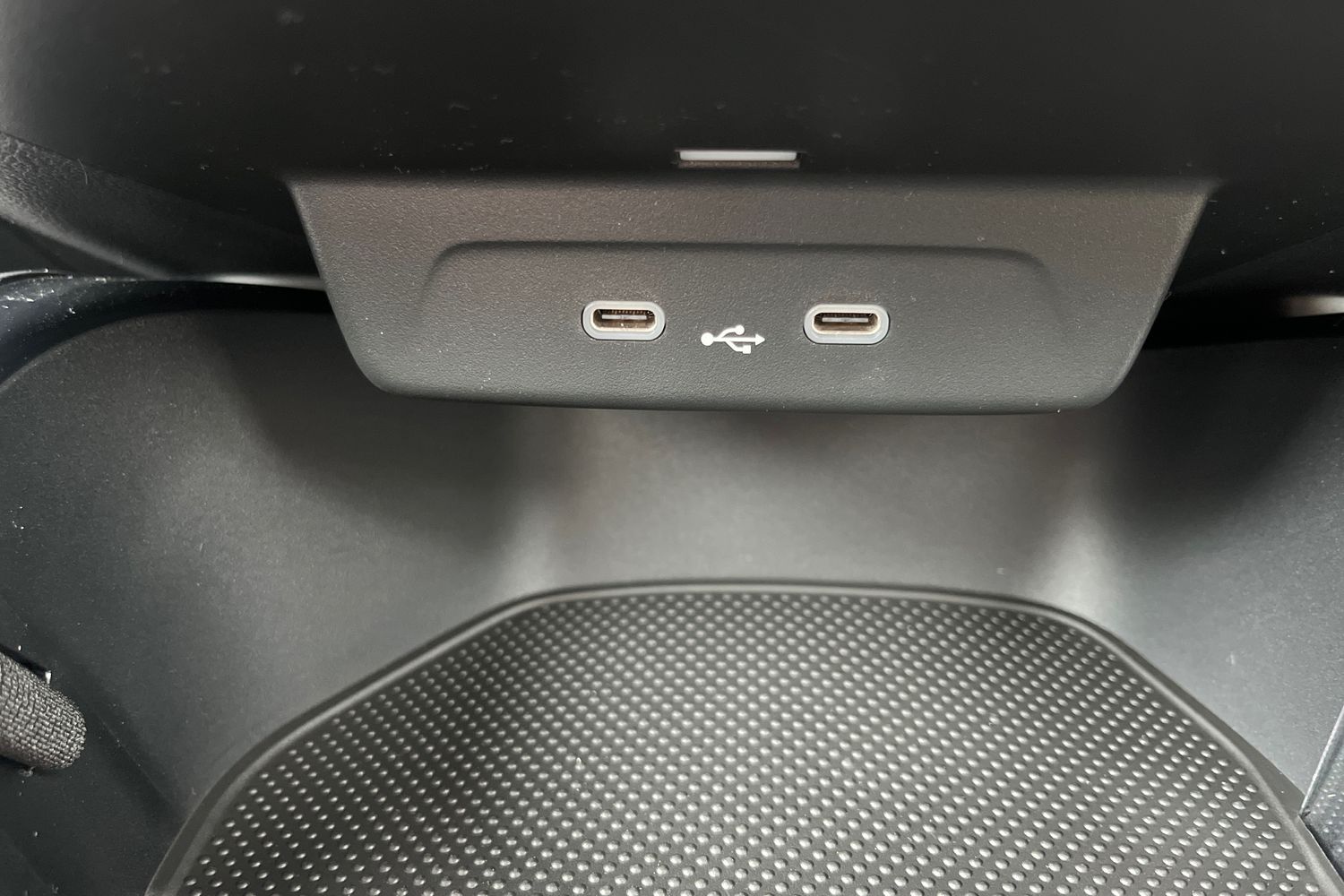 "USB C port by rear view mirror for charging only (15W)"