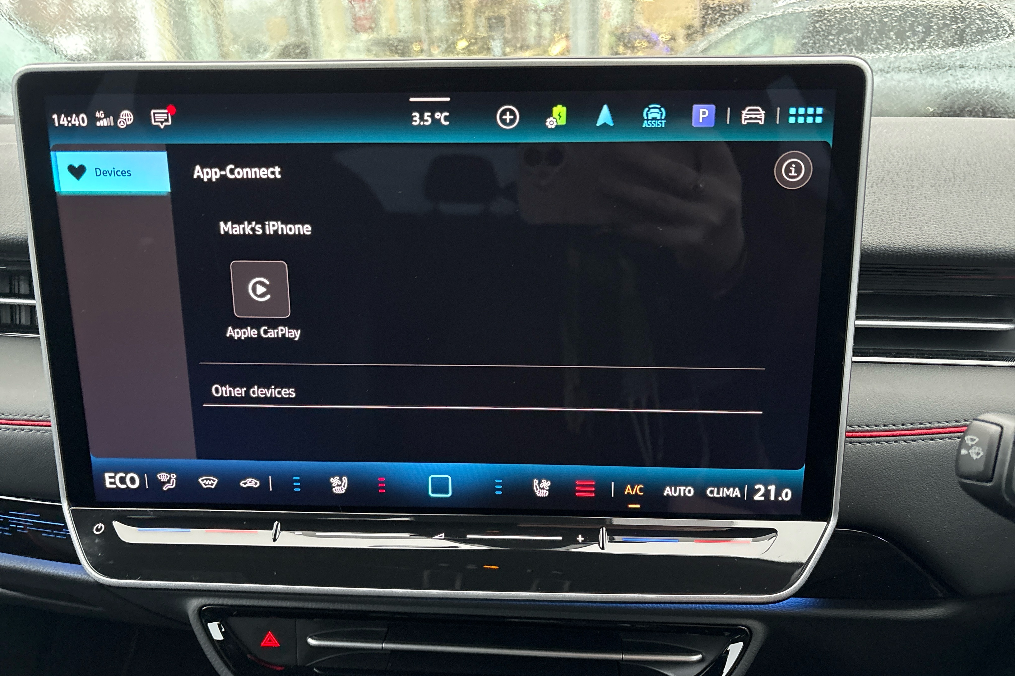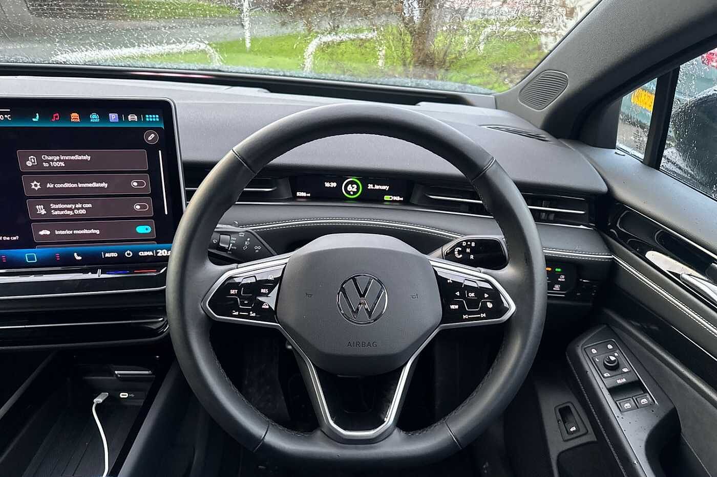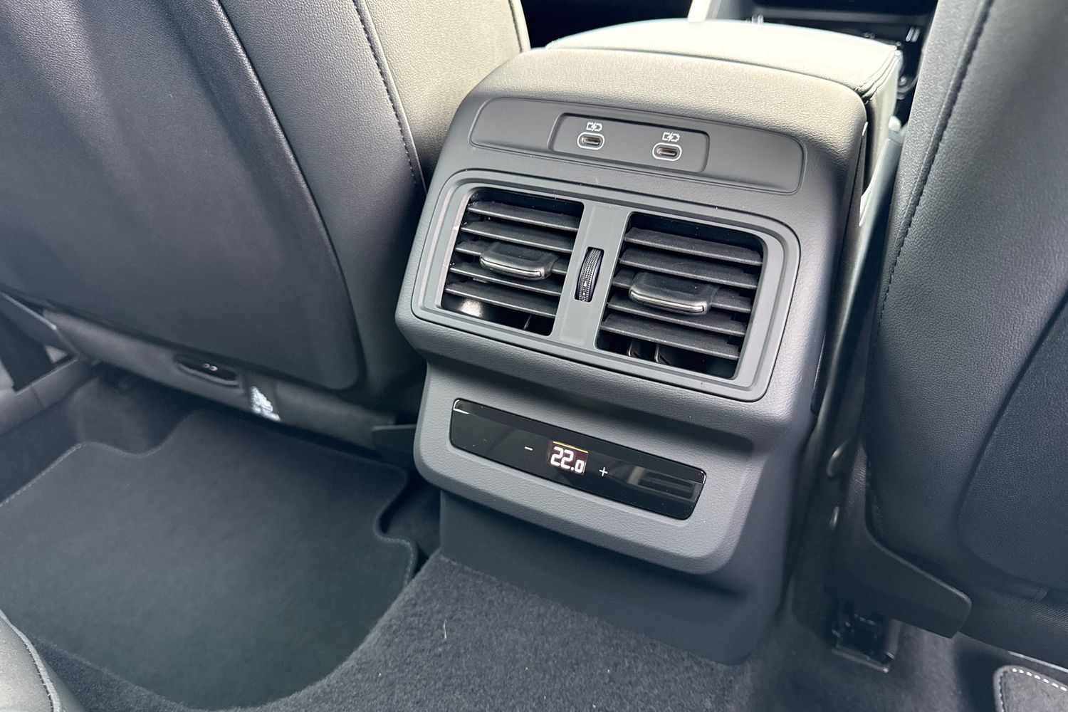 "USB C port by rear view mirror for charging only (15W)"