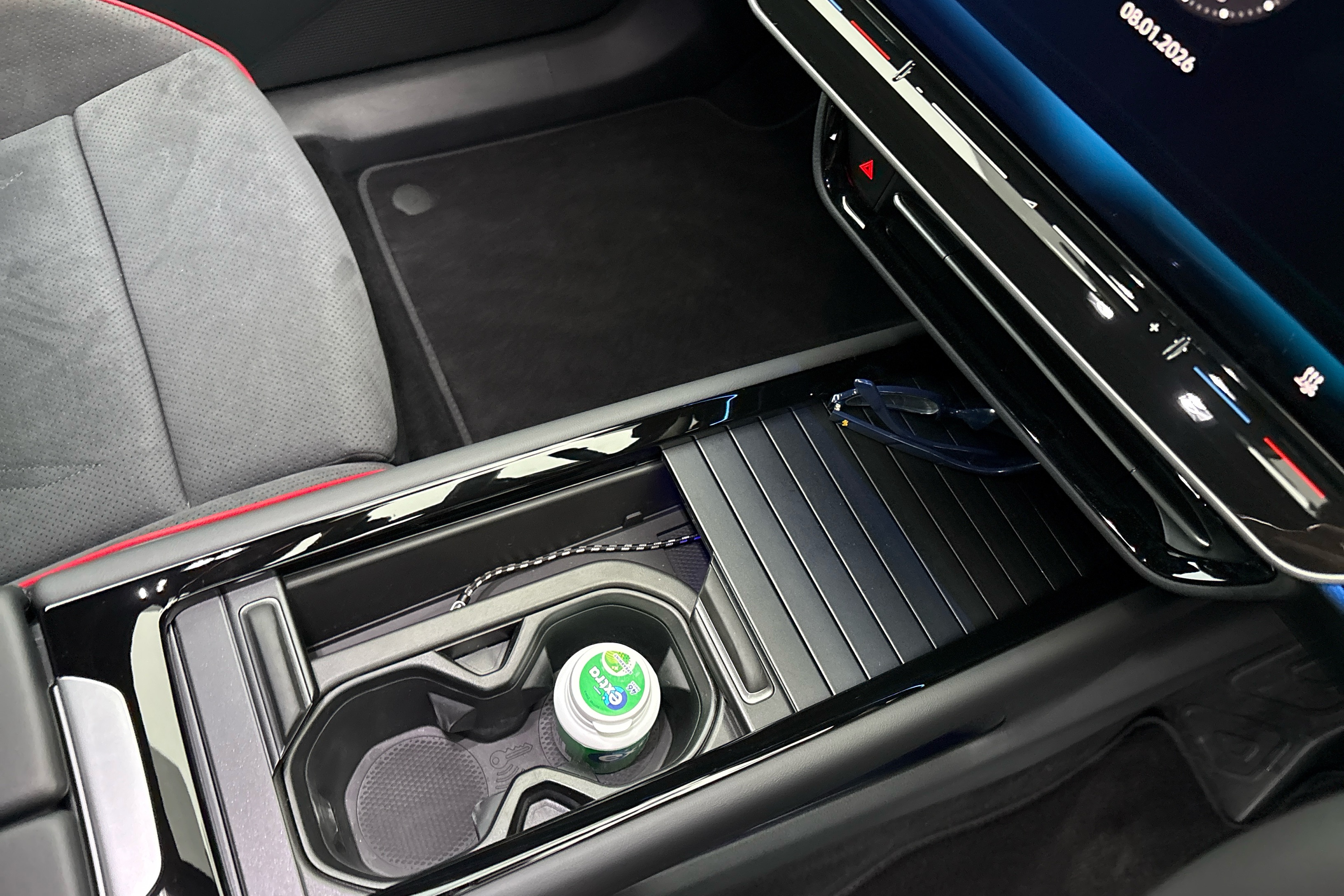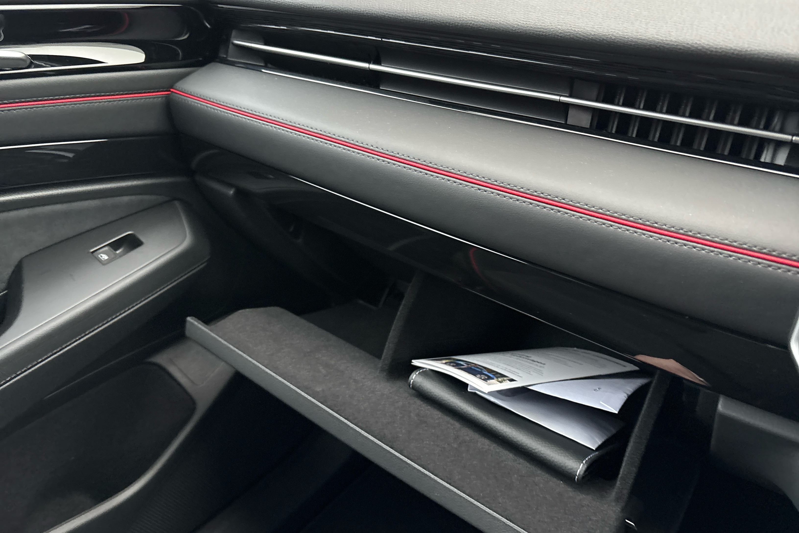 "Upper and lower glovebox with card holder and coin compartment",