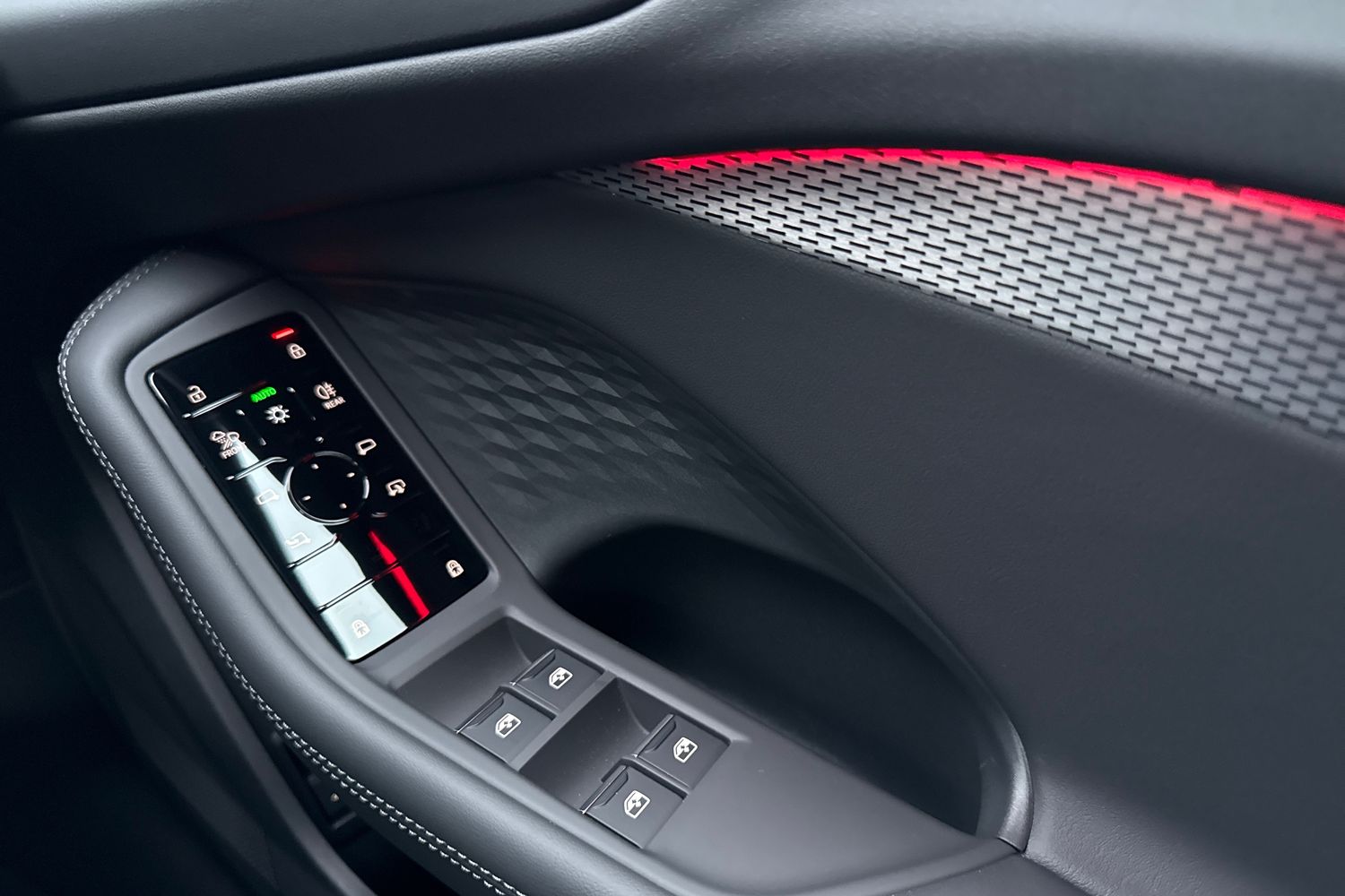 "Window control switches with black trim",