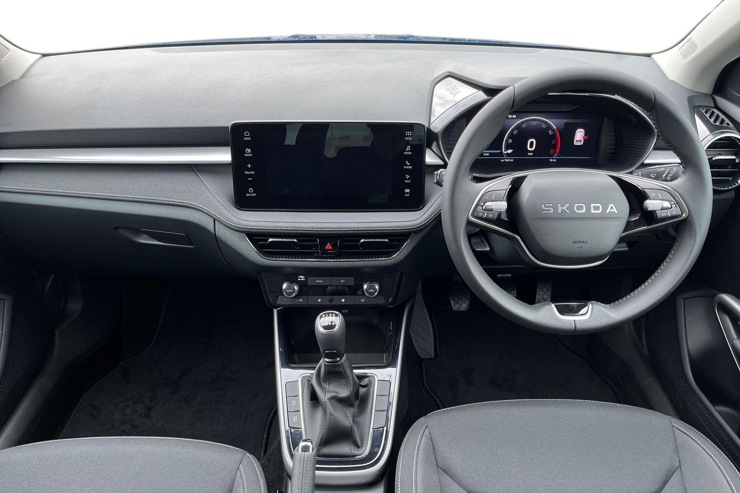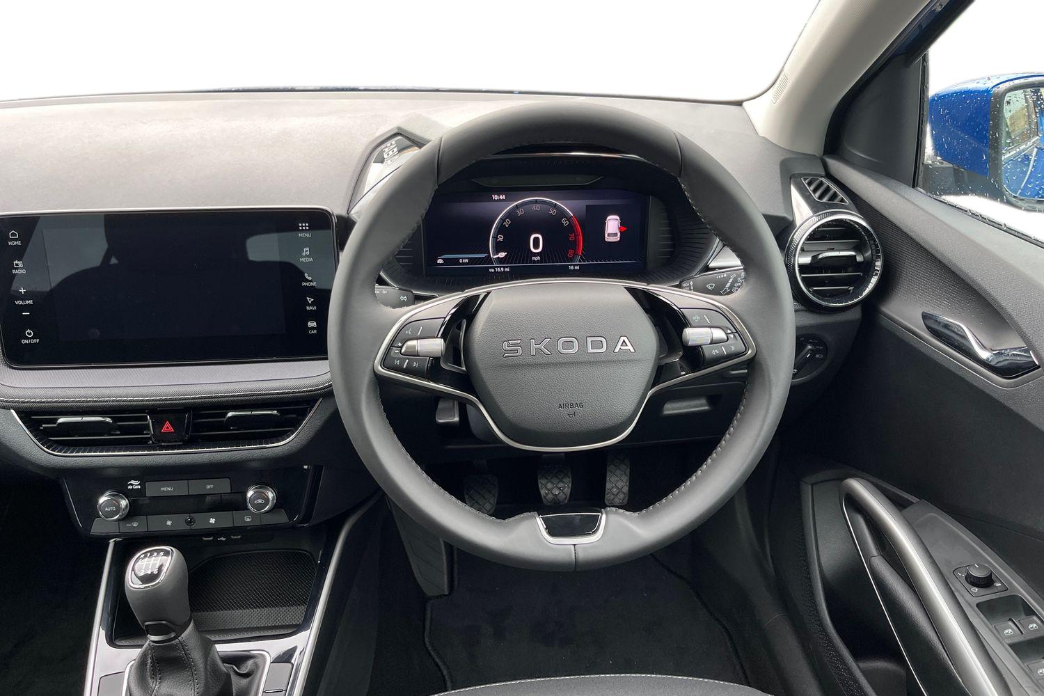 "features": "Advanced driver attention and drowsiness monitor, Bluetooth connection, Driver alert system, Electromechanical power steering, Exterior temperature gauge, Service interval indicator, Traffic sign recognition, Virtual cockpit with 10.25\" colour display, Wireless SmartLink for Apple CarPlay and Android Auto, 6 Speakers (4 in front and 2 in rear), 9.2\" colour display skoda navigation system with voice control and web radio, Auxiliary socket for external MP3 player, DAB digital radio reception, Auto dimming rear view mirror, Body colour door mirrors, Body coloured bumpers, Chrome window surround, Door mirror integrated indicators, Front and rear electric windows, Front window wiper intermittent control, Headlight range control - Automatic, Ice scraper in fuel cap, LED 3rd brake light, LED daytime running lights with coming and leaving home feature, LED rear lights, Privacy glass, Rear LED fog light, Rear side wing doors, Rear window wiper with washing nozzles, Roof mounted spoiler, SKODA tailgate lettering in chrome, Unique dark chrome design logo on alloy wheels, 2 LED reading lights in front and rear, 3 rear headrests, Backrest split and folding, Central console with fixed cup holder and storage box, Chrome handbrake release button, Comfort seats, Door sills with fabia badging, Dual zone air conditioning with climatronic electronic control, Fabric upholstery, Front centre armrest, Gearshift knob/handle in leather, Grain satin black interior door handles, Hand brake lever handle in leather, Height adjustable front headrests, Height adjustable front seats, Height adjustable steering wheel, ISOFIX and TopTether anchorage points to the outer rear seats, ISOFIX and TopTether on the front passenger seat, Luggage compartment lighting, Manually adjustable lumbar support in front seats, Pollen filter, Rear seat bench unsplit, Single front passenger seat, Skoda lettering on steering wheel, Storm grey headlining, Sun visors with mirror and airbag label on passenger side, Textile floor mats, Ticket holder, Umbrella in drivers door, Ambient lighting pack - Fabia Hatchback, 3-point height adjustable front seats belts with pretensioner and force limiter, Automatic warning lights in case of crash, Driver and passengers airbag with switch off function, e-Call+, ESC including ABS, MSR, ASR, EDS, HBA and XDS, Front and rear seat belt warning, FRONT ASSIST (AEB City and AEB Inter Urban), Front side airbags, Head airbags, One tone horn, Pedestrian protection, Three rear 3-points safety seat belts with pretensioner and force limiter including stop function for outer rear seat belts, Tyre pressure monitoring system, Anti-theft alarm system including immobiliser, interior monitoring, backup horn, and towing protection, Central locking with radio remote control, interior controls, SAFE function and 2 foldable keys, Chrome edged air vents, Grain satin black central console cover, Metallic grey upper decorative trim, Satin black door and side trim panel in front, Textile microsuede grey lower decorative trim with art grey stitching, Anti-theft wheel bolts protection, Super-low rolling resistance tyres, ",