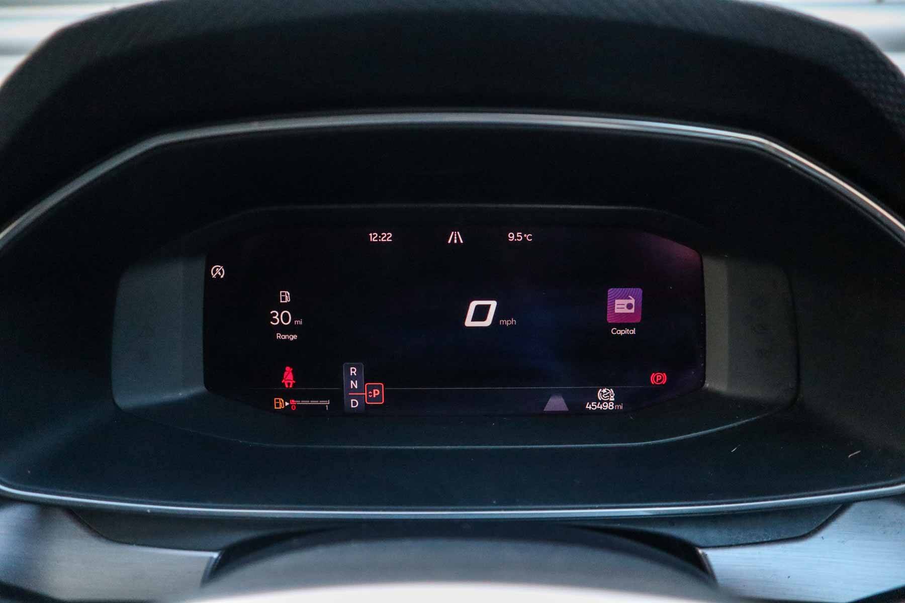"RPM, trip computer, outside temp gauge, instrument light brightness, low fuel warning light, lights on reminder, gearshift indicator",