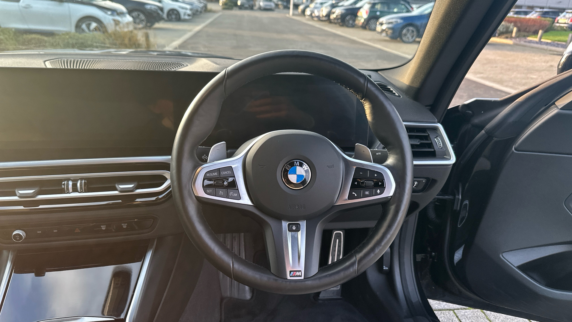 "3 spoke M Sport multifunction flat bottom leather steering wheel",