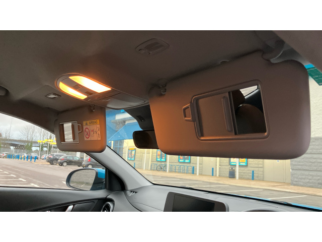 "Sunvisors with illuminated vanity mirrors and ticket pocket",