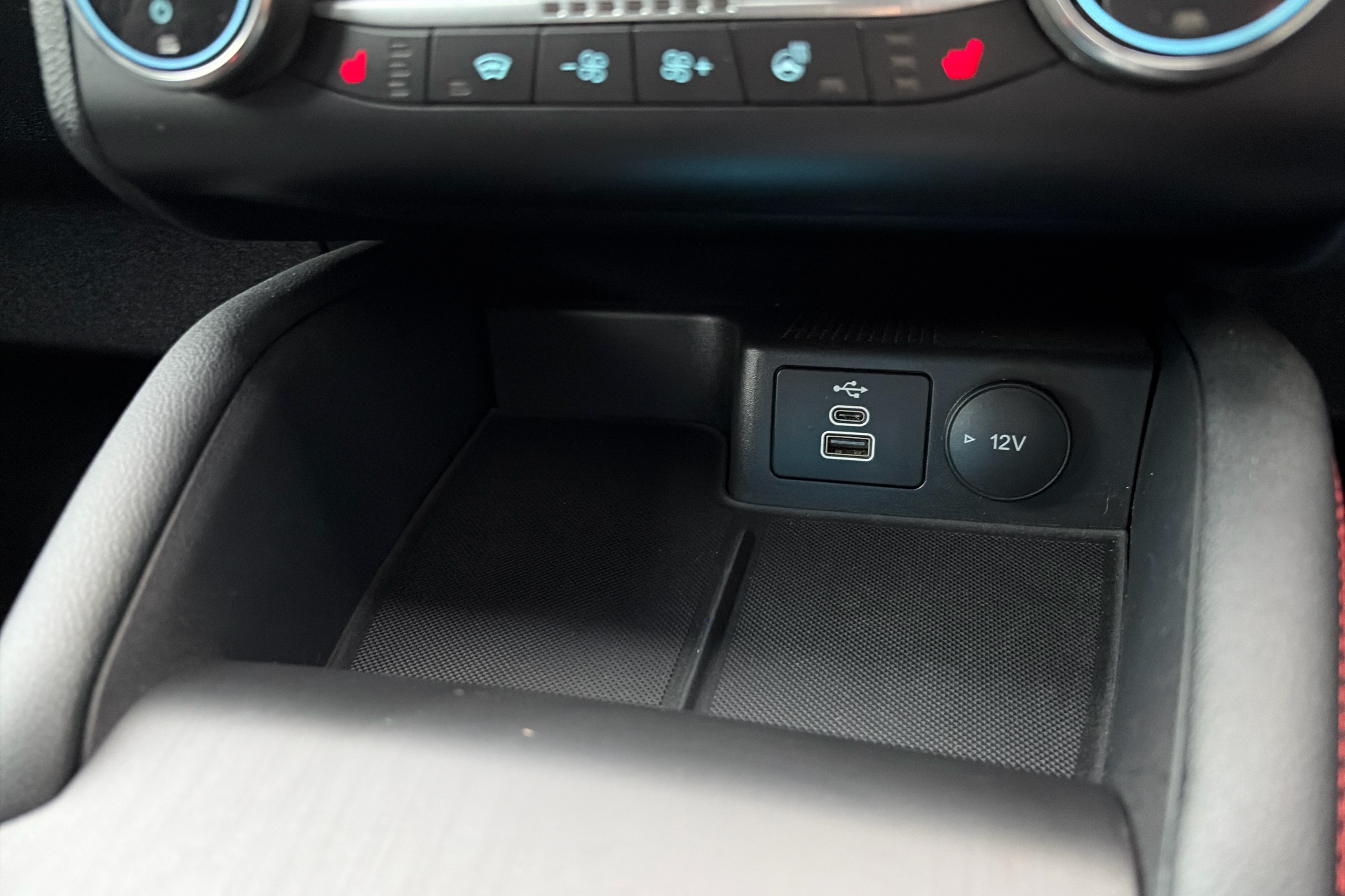"12V power socket in front storage compartment",