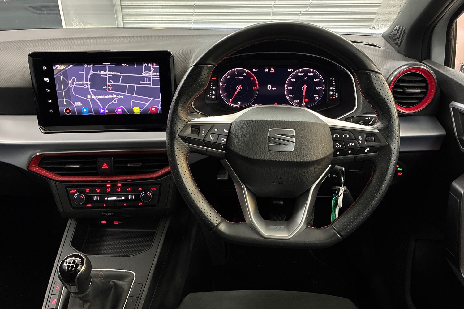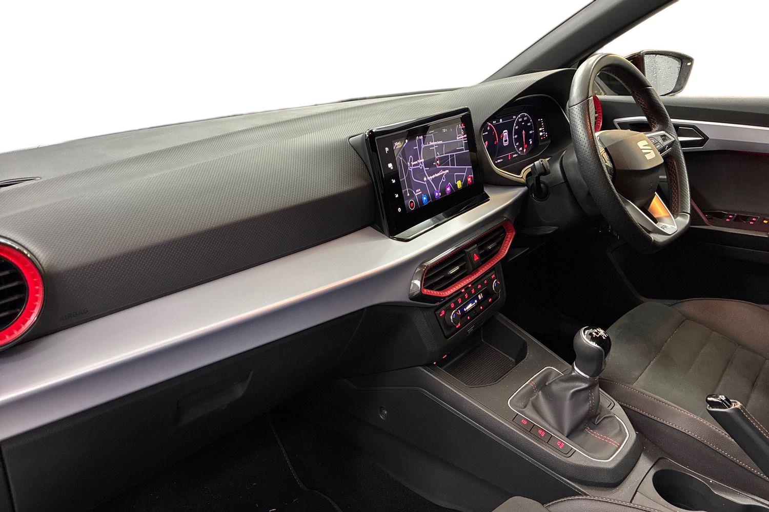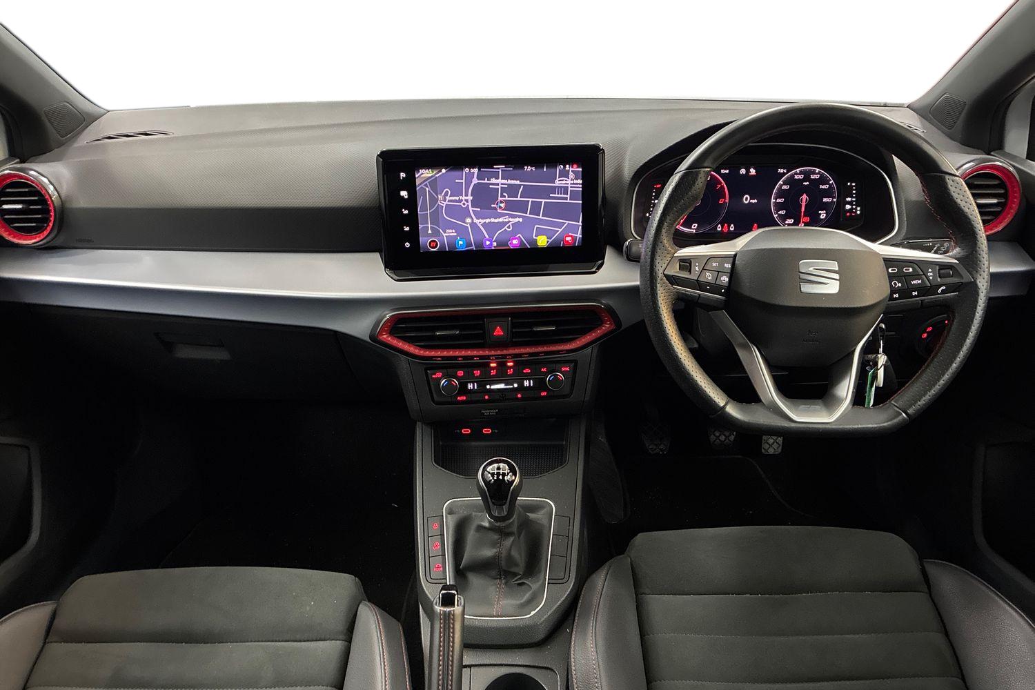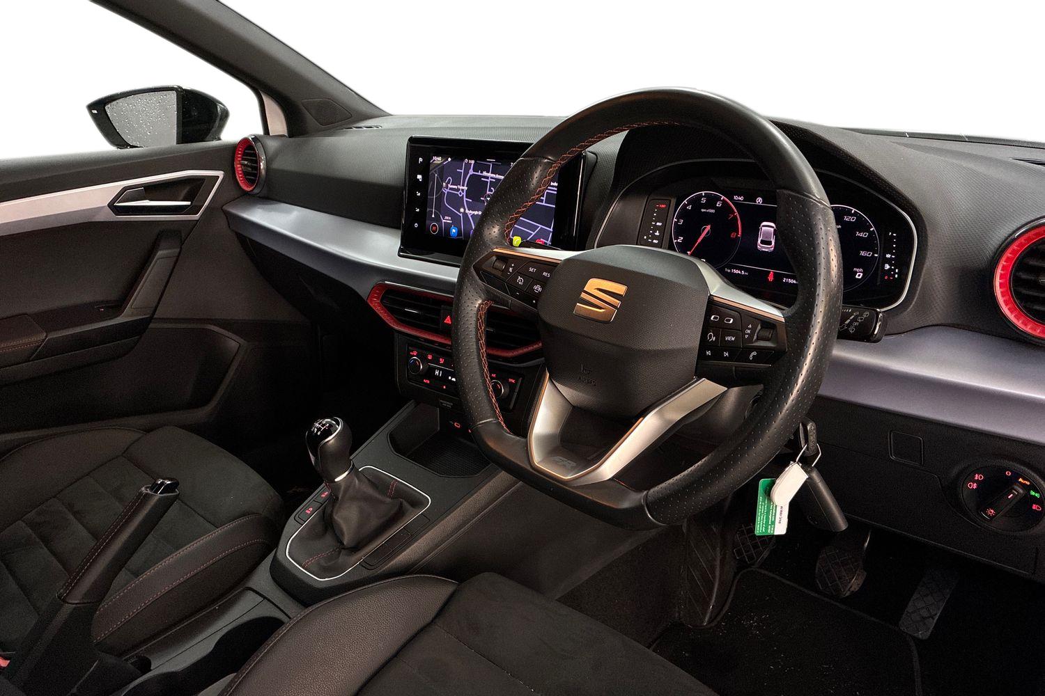 "features": "'Lights On' Reminder warning buzzer, 10\" Digital cockpit, 9.2\" touchscreen navigation system with type C USB socket, Voice control and DAB/AM/FM radio, Auto start and stop system, Bluetooth audio streaming with handsfree system, Digital clock, E-call, Full link smartphone integration with mirror link, wireless apple carplay, Google android auto + USB Type C cable for apple and android devices, Lane assist, Low fuel warning light, Outside temperature gauge, Power Steering, Seat connect with safety, service, remote and online, SEAT drive profiles and ECO function, SEAT logo boot release, Speed limiter, Trip computer, Sports suspension, Auxiliary input socket, Radio/MP3 player, SD card slot, Steering wheel mounted controls, Anti theft roof antenna, Auto dimming rear view mirror, Automatic rain sensing wipers, Black door mirrors, Body colour bumpers, Body colour door handles, Brilliant black window surrounds, Dark tinted rear windows, Electric adjustable/heated/folding door mirrors, Electric front windows, Electric headlight adjustment, Electric rear windows, Front/rear fog lights, FULL LED automatic headlights with dynamic headlight range control, coming and leaving home, LED daytime running lights, LED tail lights, Rear roof spoiler with FR twin exhausts, Rear side wing doors, Rear wiper, Third brake light, 3 seat bench in 2nd row, 60/40 split folding rear seat, Ambient interior lighting, Chrome detailing and black headlining, Comfort seats, Dual zone climate control with combination filter, Front courtesy lights, Front cupholders x 2, Front reading lights, Gear shift indicator, Glovebox, Height adjustable front and rear headrests (five), Height adjustable front seats, Height/reach adjust steering wheel, Illuminated air vent surrounds, Illuminated boot, Instrument lighting with brightness control, Isofix, Leather multifunction flat bottomed sports steering wheel, Microsuede cloth upholstery, Passenger sunvisor, Single front passenger seat, Storage pockets on back of front seats, Sunvisors with mirror and driver side card holder, 3 point seatbelts on all 3 rear seats, ABS, Active front headrests, Child locks on rear doors, Electronic stability control, Energy recovery system, Front assist forward collision warning and autonomous emergency braking, Front driver and passenger side airbags with curtain airbag and front passenger airbag deactivation, Hill hold control, Multi-Collision braking, Seat belt reminder for front and rear seats, Tiredness recognition system, Tyre pressure monitoring system, Electronic engine immobiliser, Locking wheel bolts, Perimeter alarm and interior monitoring with backup horn and tow away protection, Remote central locking + deadlocks, 18\" Performance machined alloy wheels in black and grey, ",